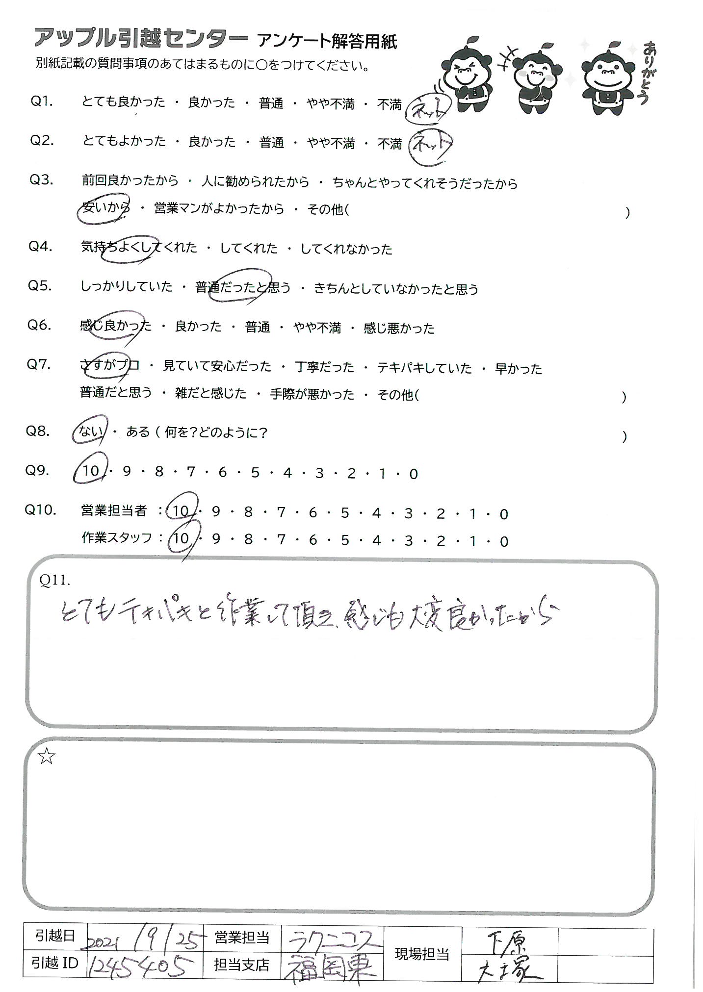引越し日:2021年09月25日 エリア:福岡県福岡市博多区