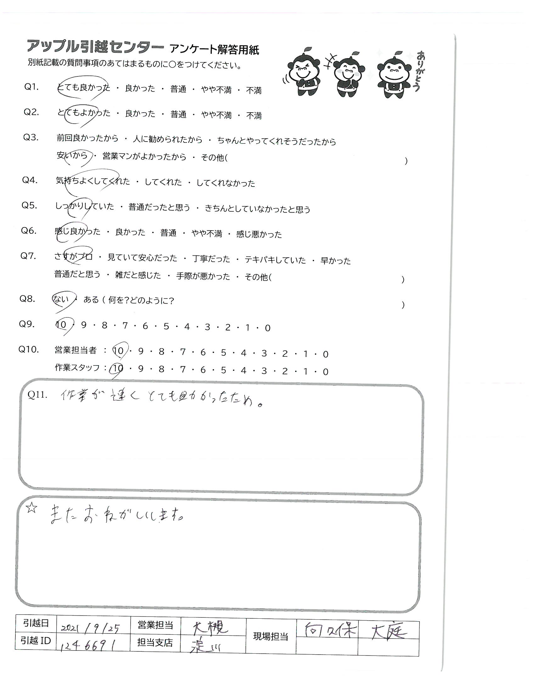 引越し日:2021年09月25日 エリア:神奈川県座間市