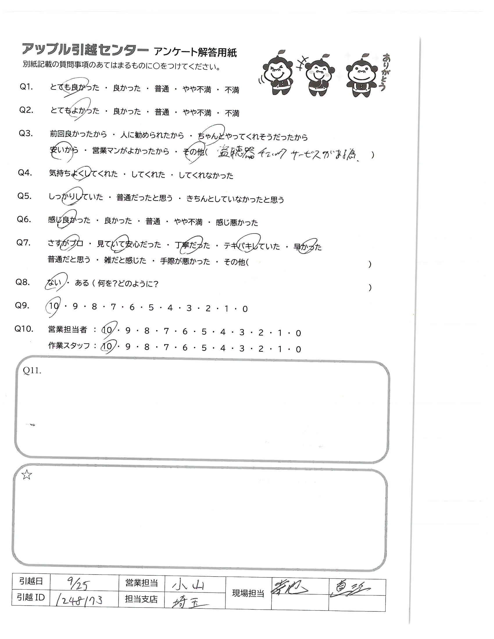 引越し日:2021年09月25日 エリア:埼玉県川口市
