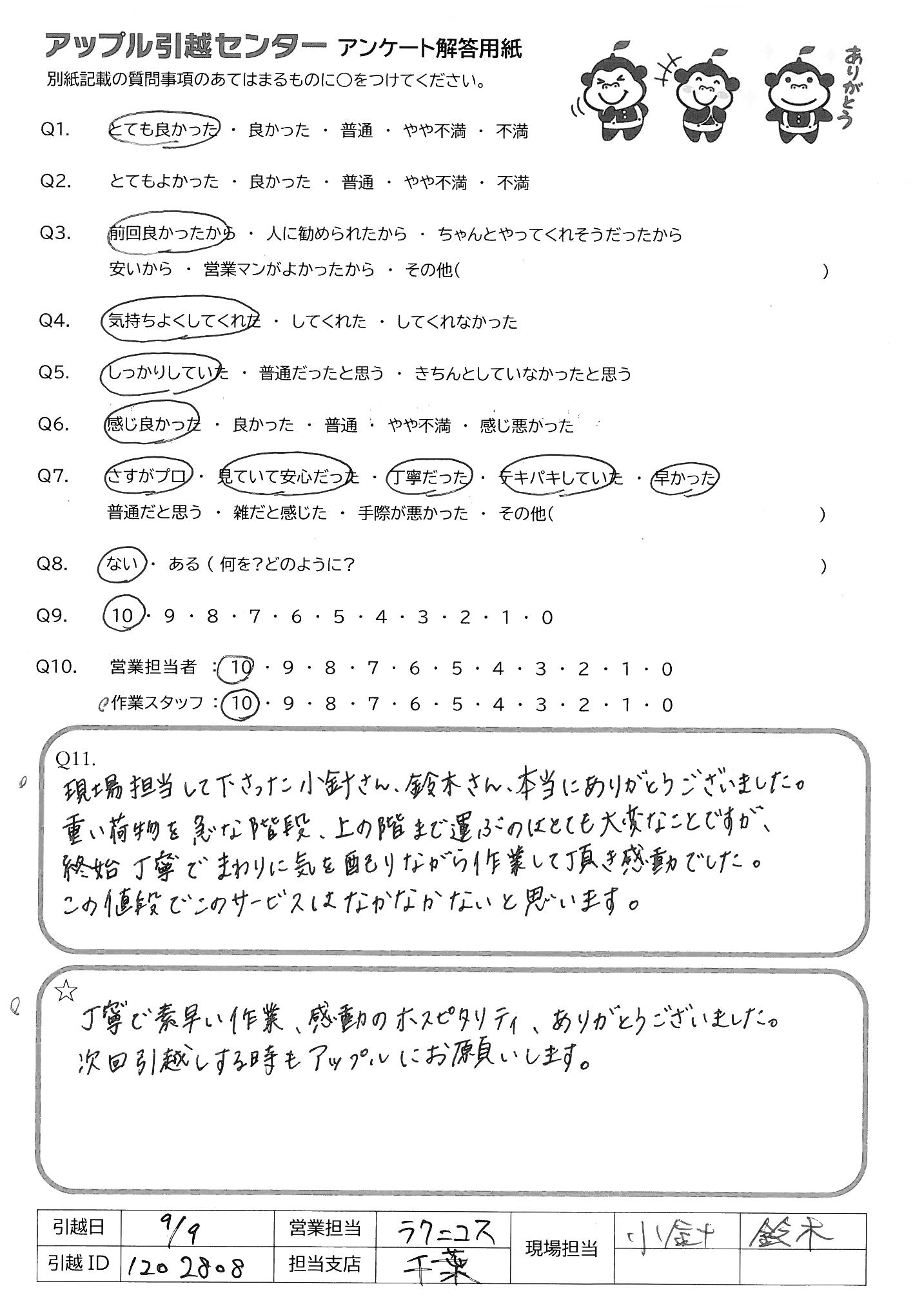 引越し日:2021年09月09日 エリア:千葉県千葉市若葉区