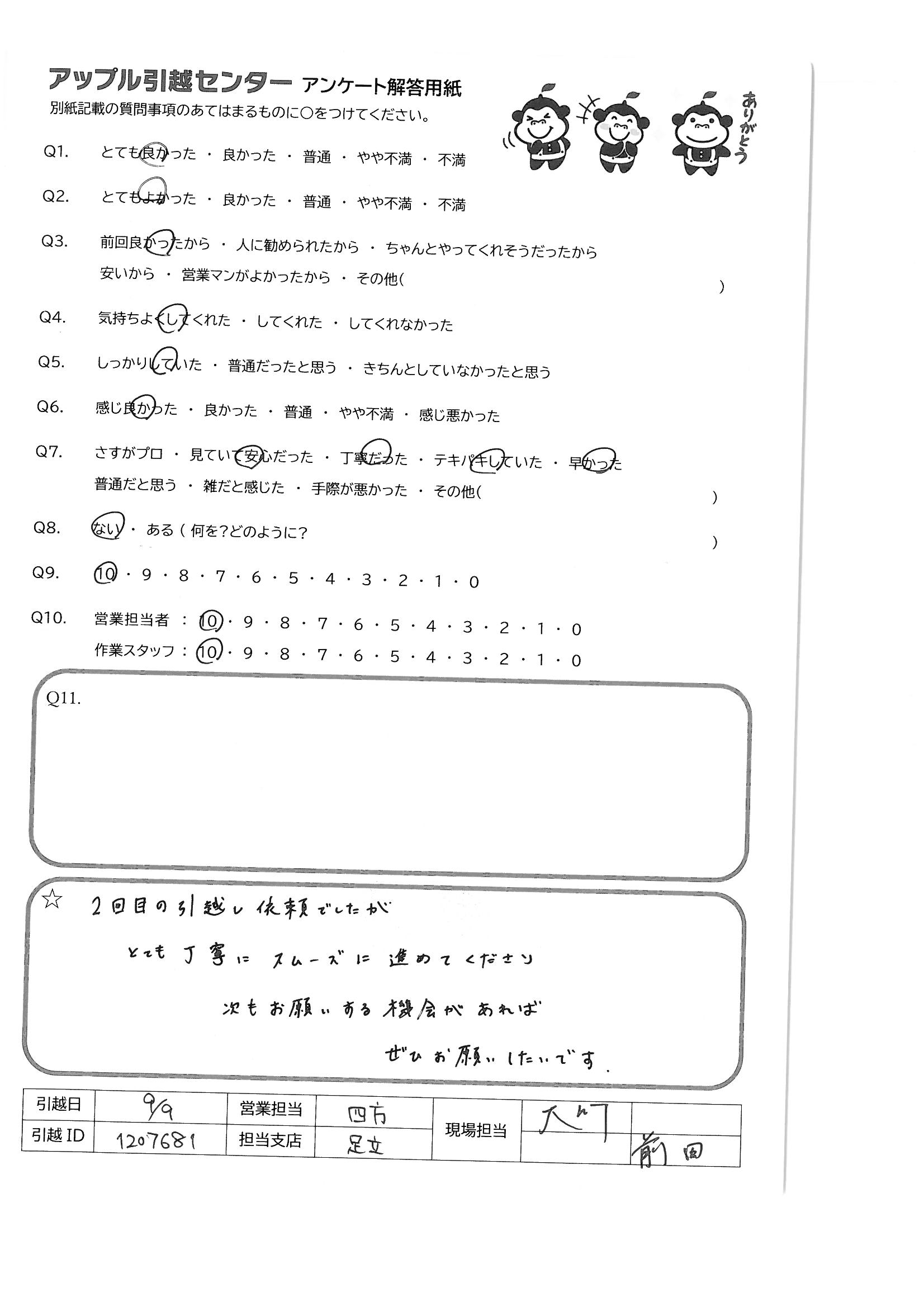 引越し日:2021年09月09日 エリア:東京都北区