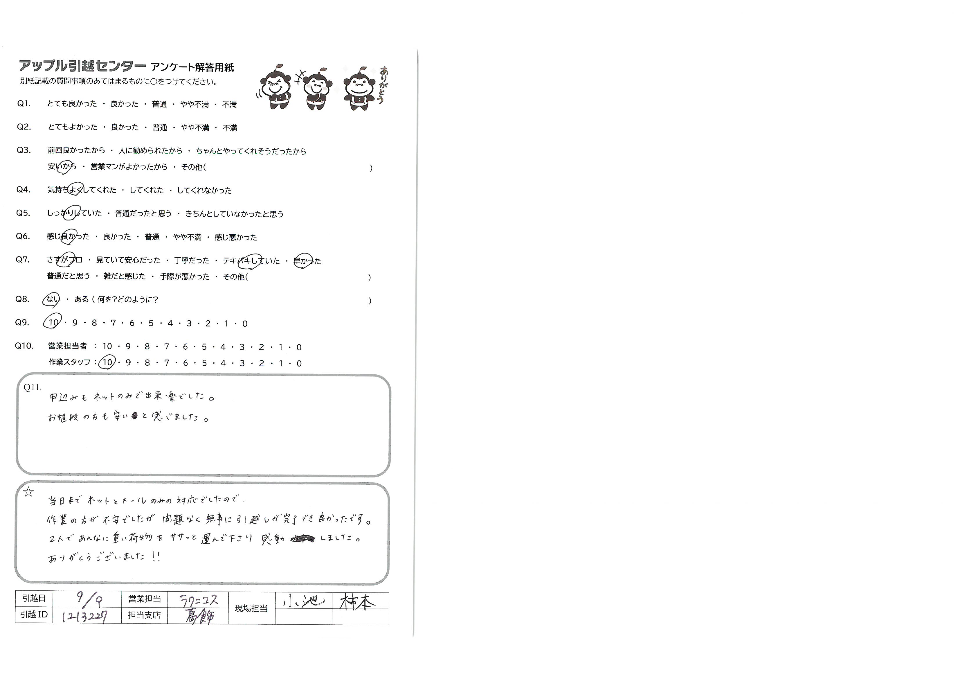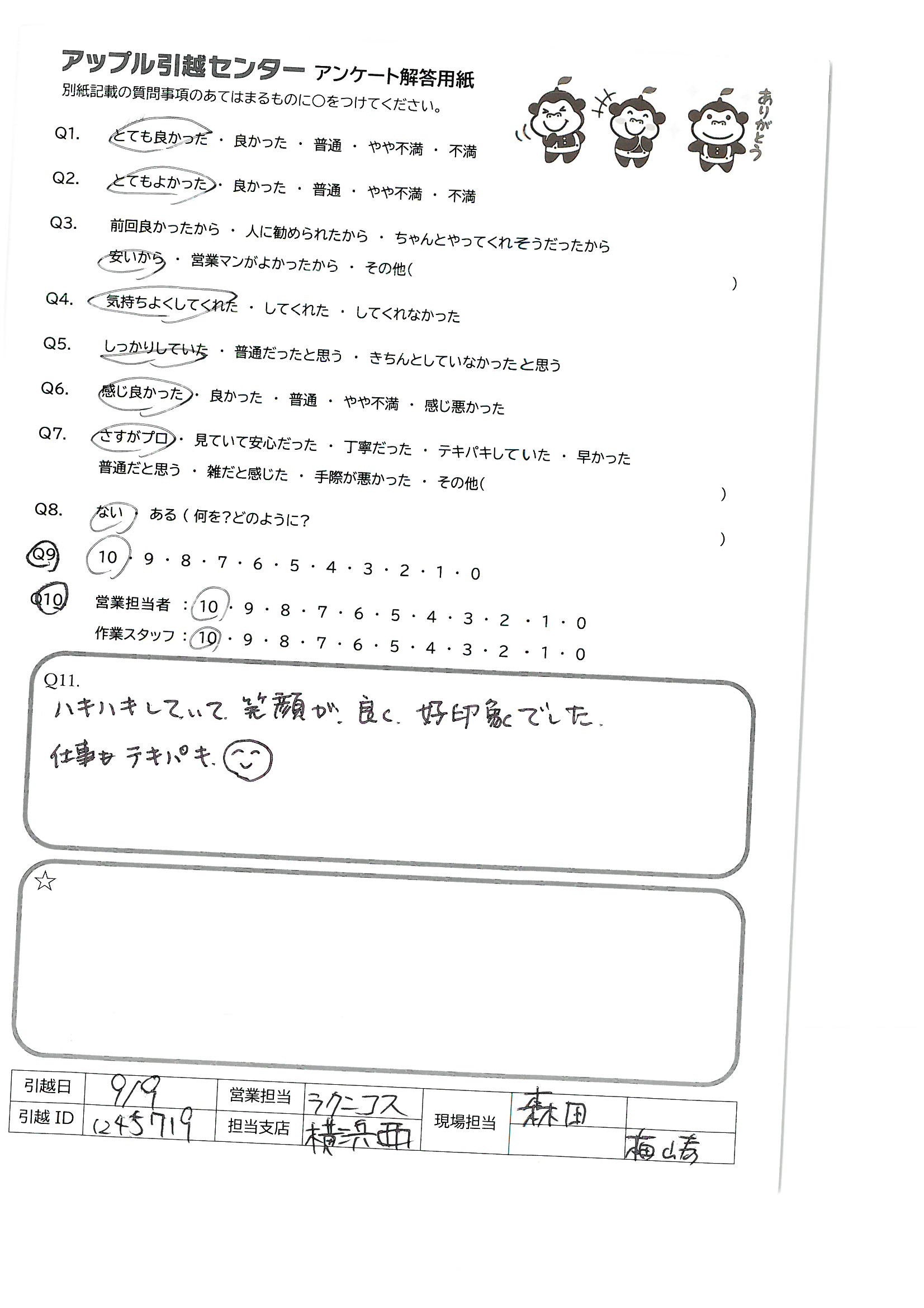 A.気持ちよくテキパキ作業していただけて、次回引っ越すときも是非お願いしたいと思いました!!
