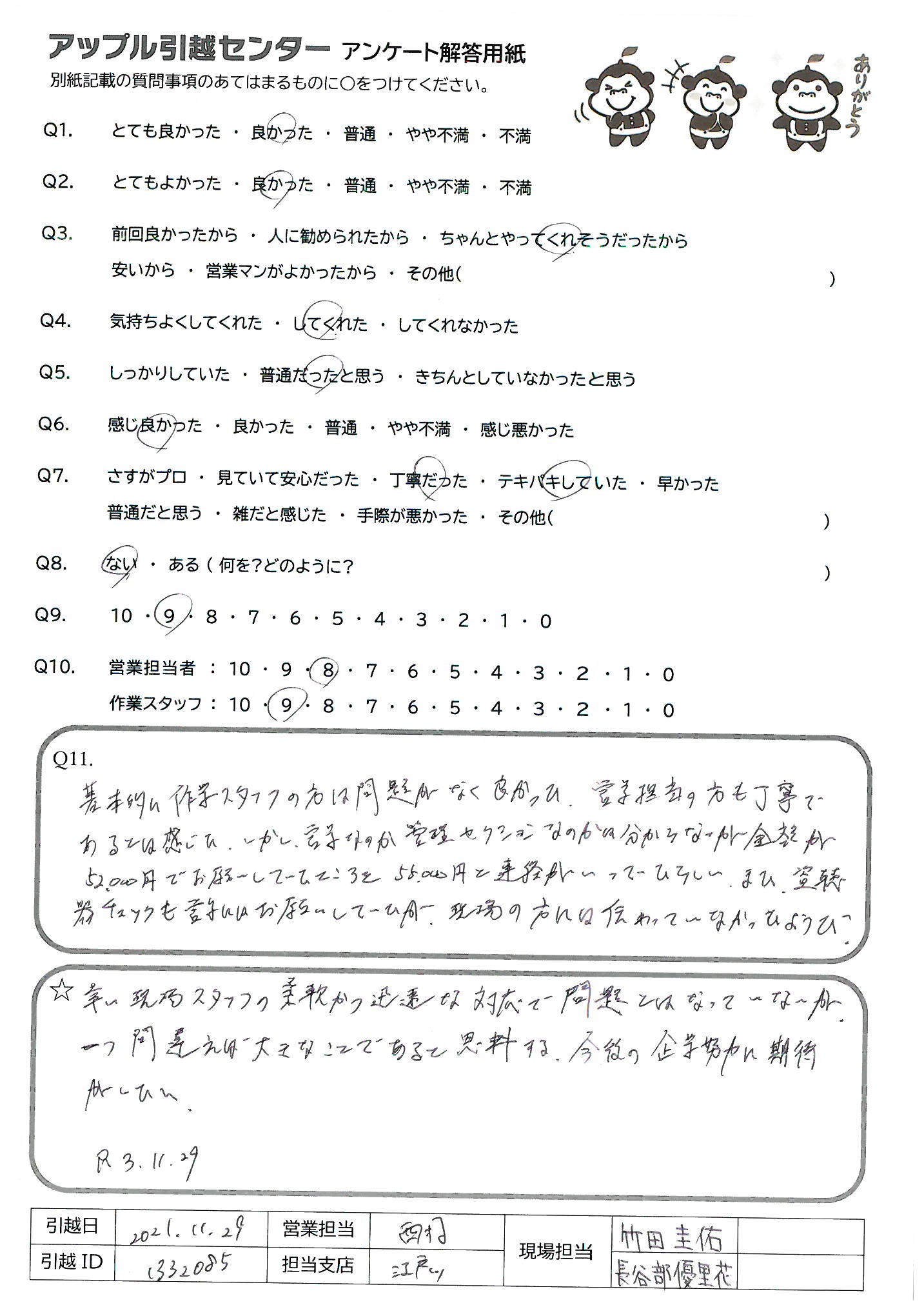 引越し日:2021年11月29日 エリア:東京都江東区