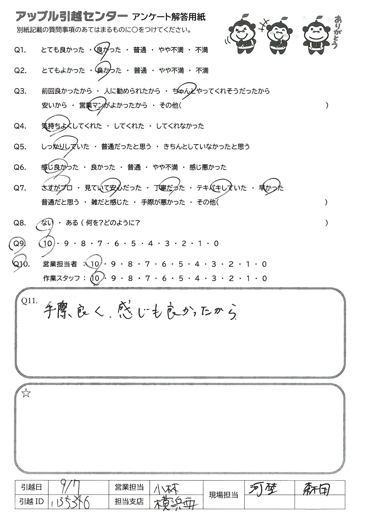 A.知り合いが引越しをする時は必ず紹介します!!! 白田さん、小岸さんありがとうございました。