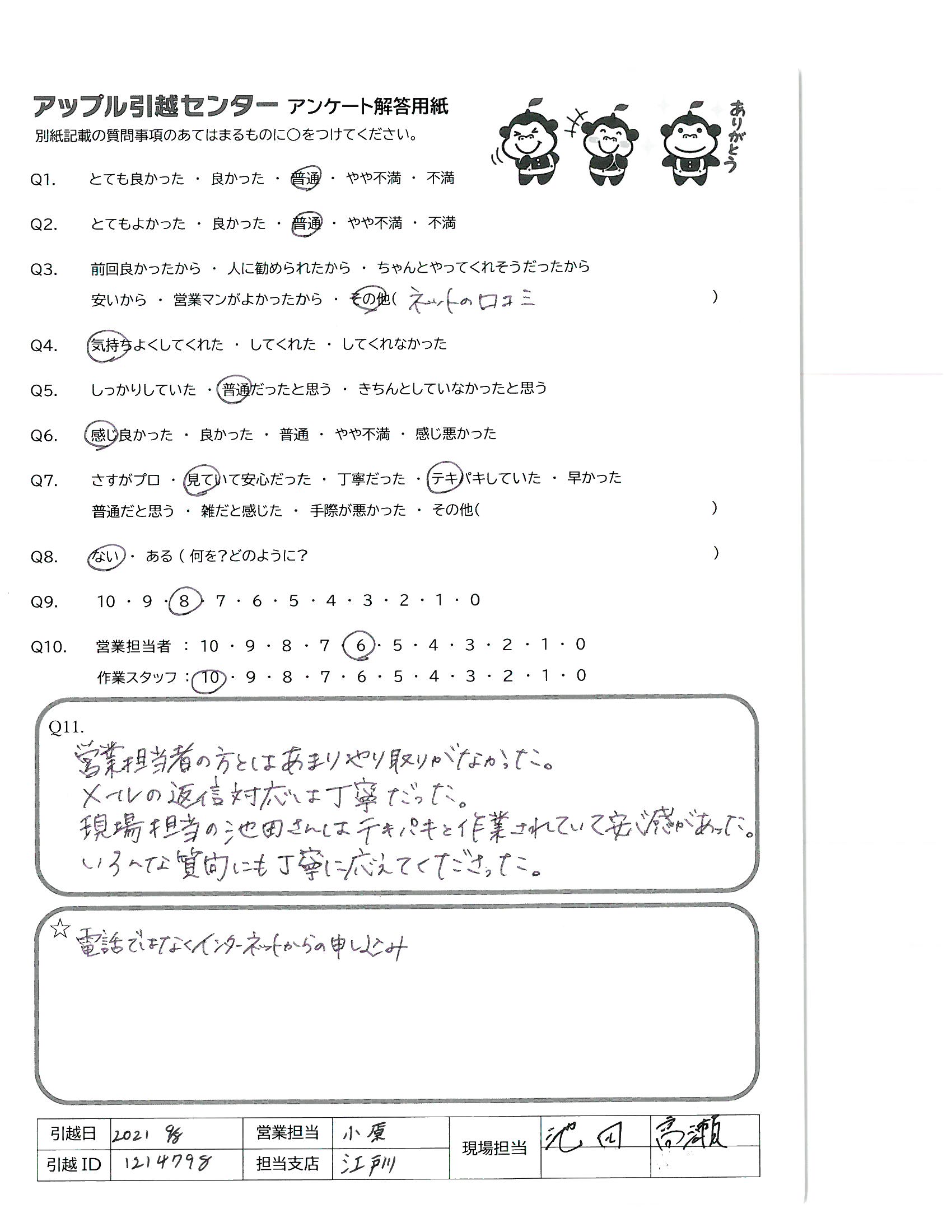 引越し日:2021年09月07日 エリア:千葉県市川市