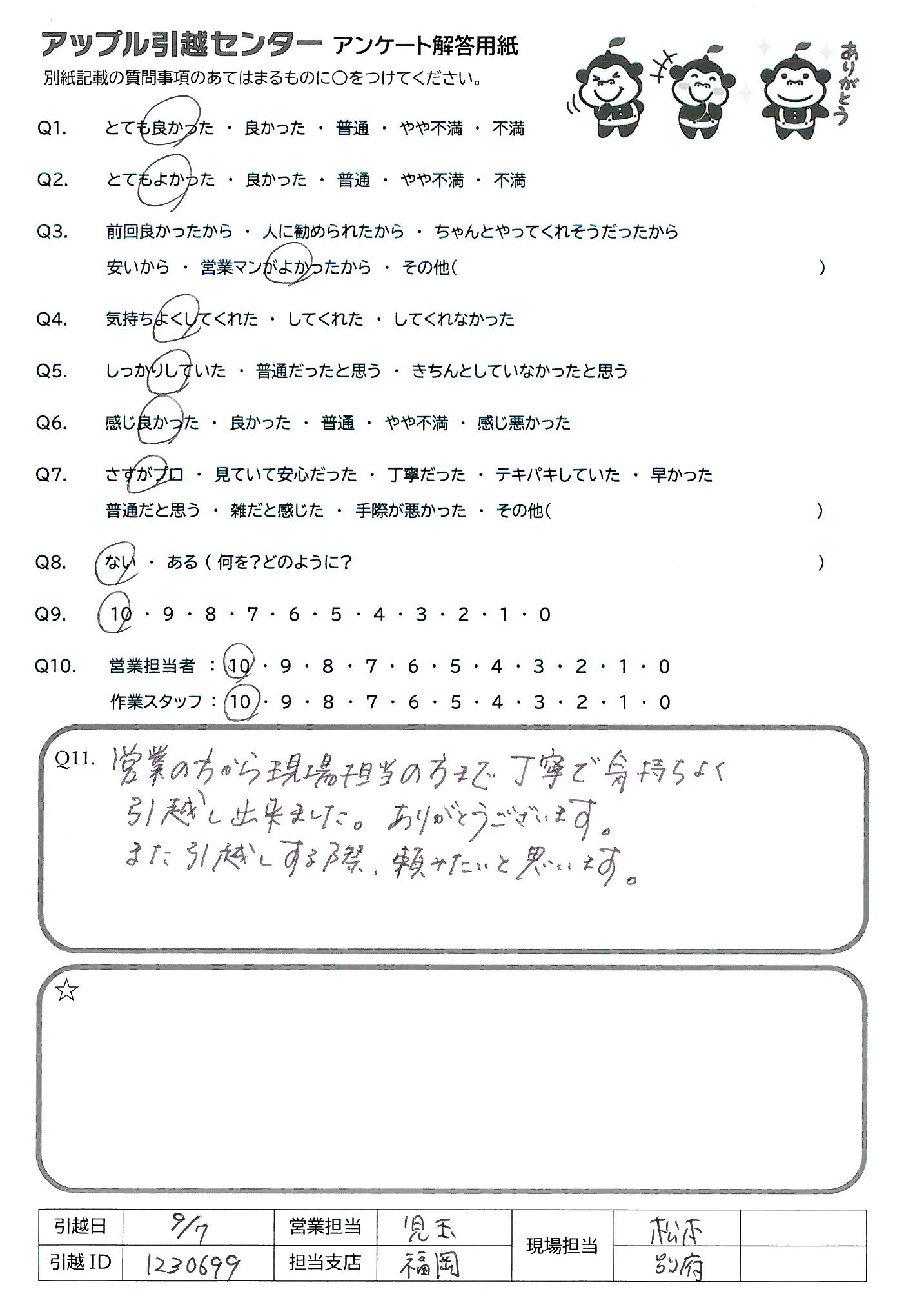 引越し日:2021年09月07日 エリア:福岡県福岡市博多区
