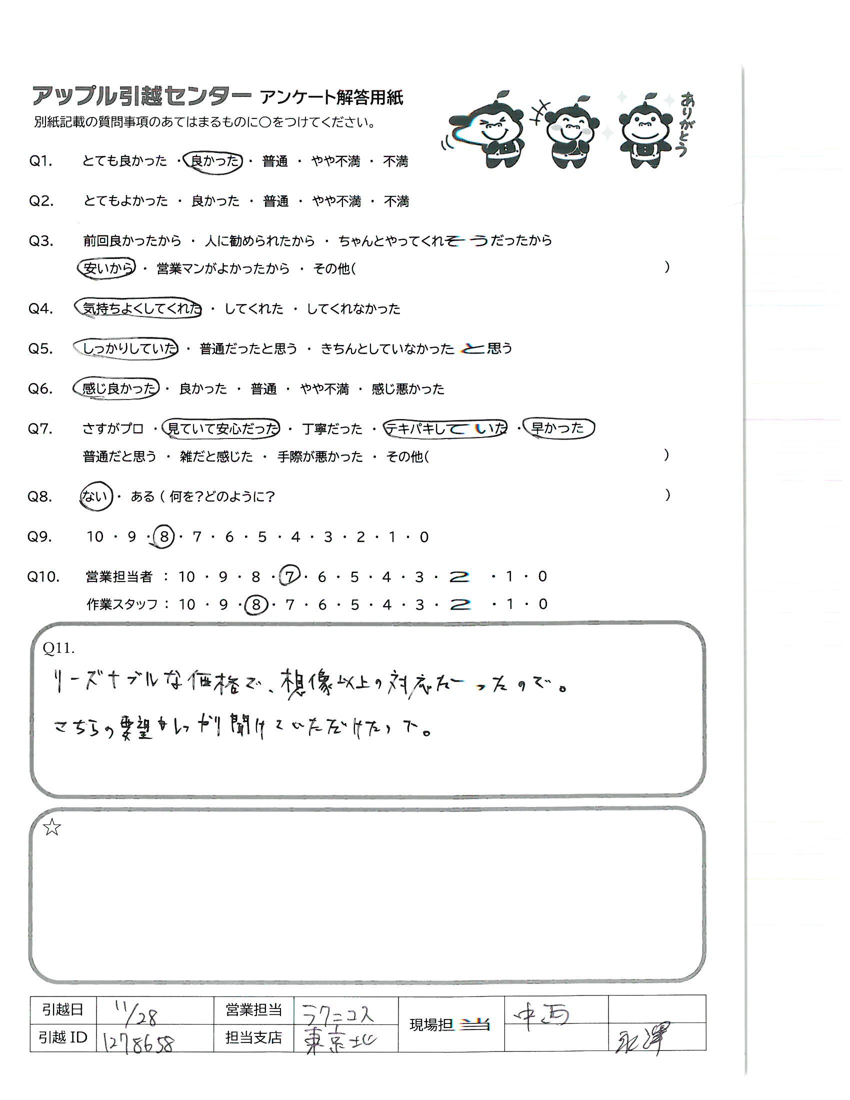 引越し日:2021年11月28日 エリア:東京都江東区