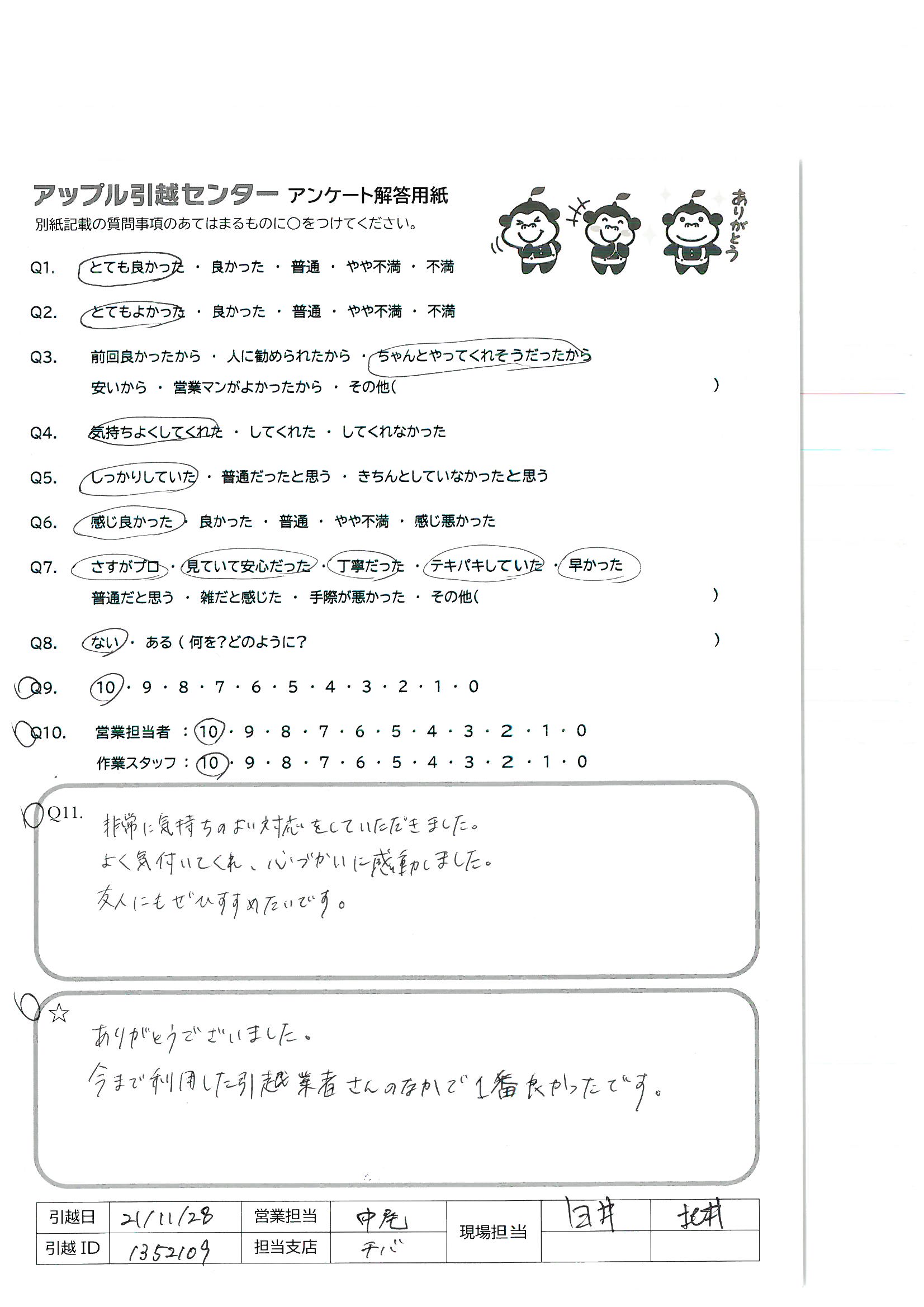 引越し日:2021年11月28日 エリア:千葉県千葉市花見川区