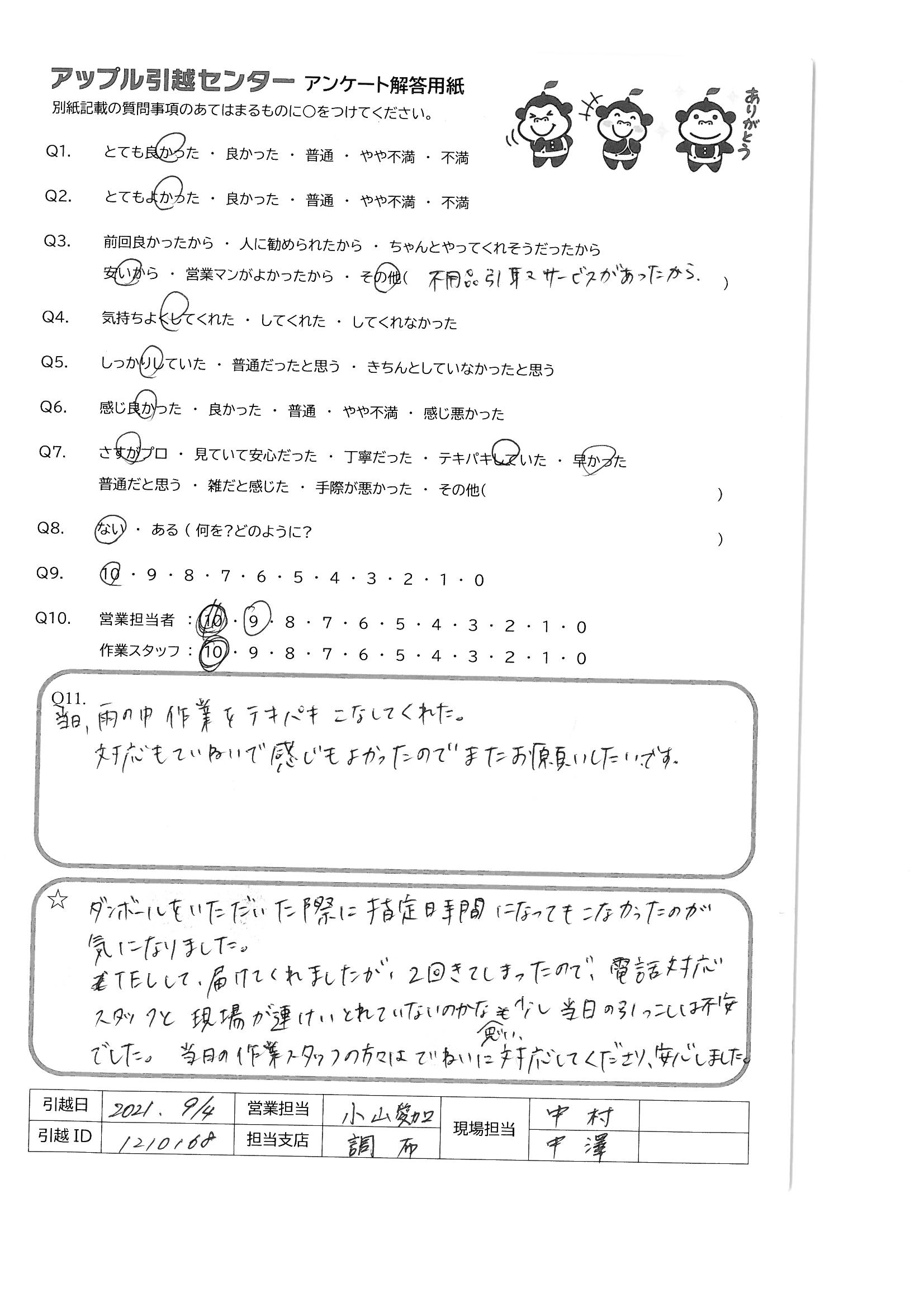 引越し日:2021年09月03日 エリア:東京都江東区
