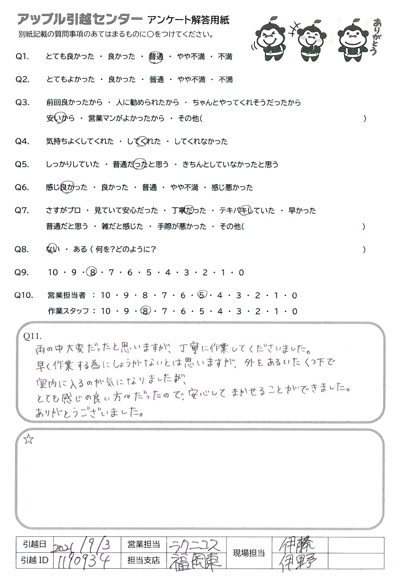 引越し日:2021年09月03日 エリア:福岡県福岡市博多区