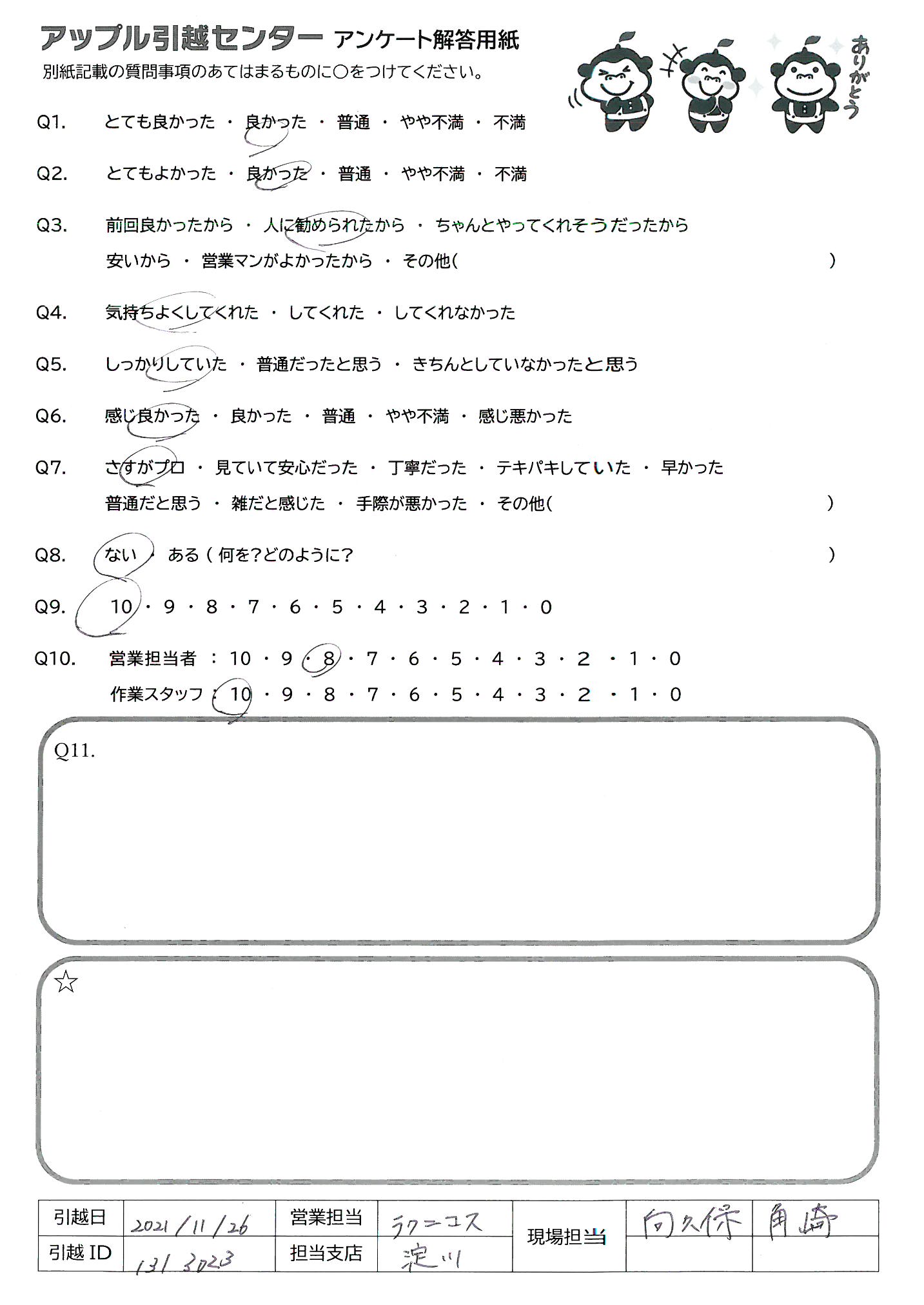 引越し日:2021年11月26日 エリア:熊本県熊本市北区