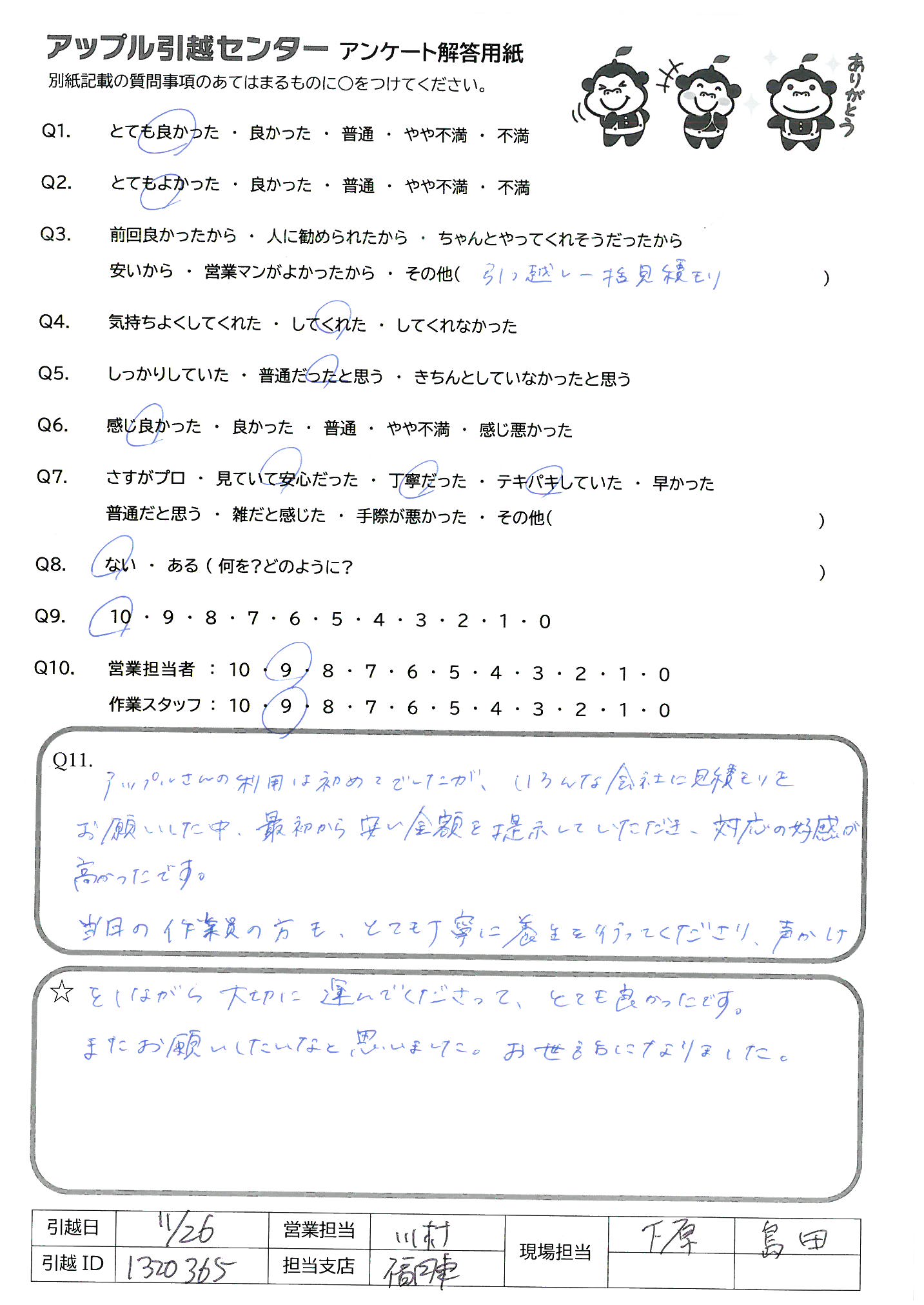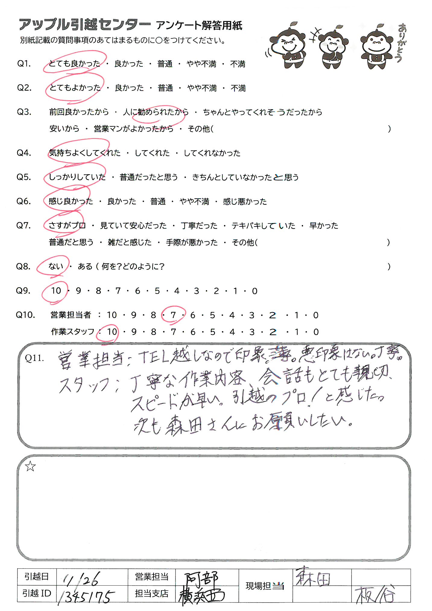 アップル引越センターでは、面映いお褒めの言葉も、胸に突き刺さるお叱りのコメントも、