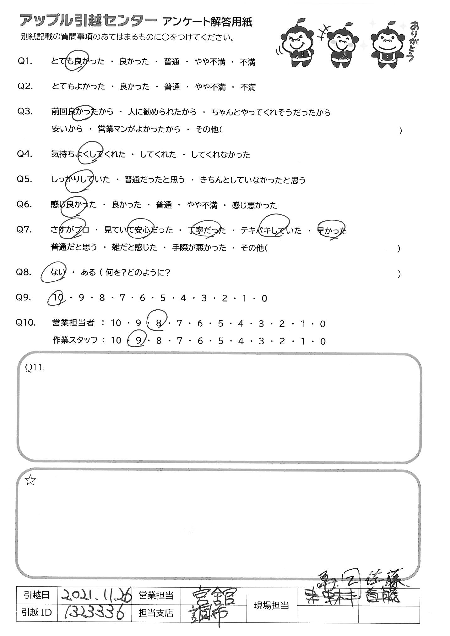引越し日:2021年11月26日 エリア:福岡県福岡市南区