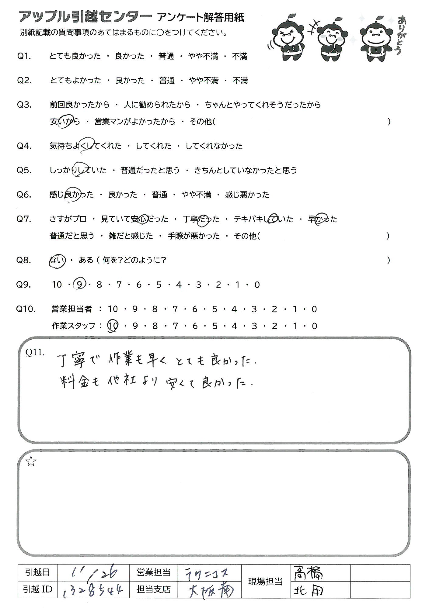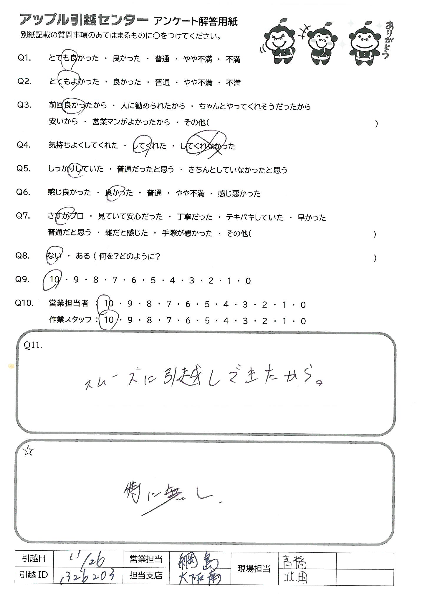 引越し日:2021年11月26日 エリア:大阪府大阪市北区