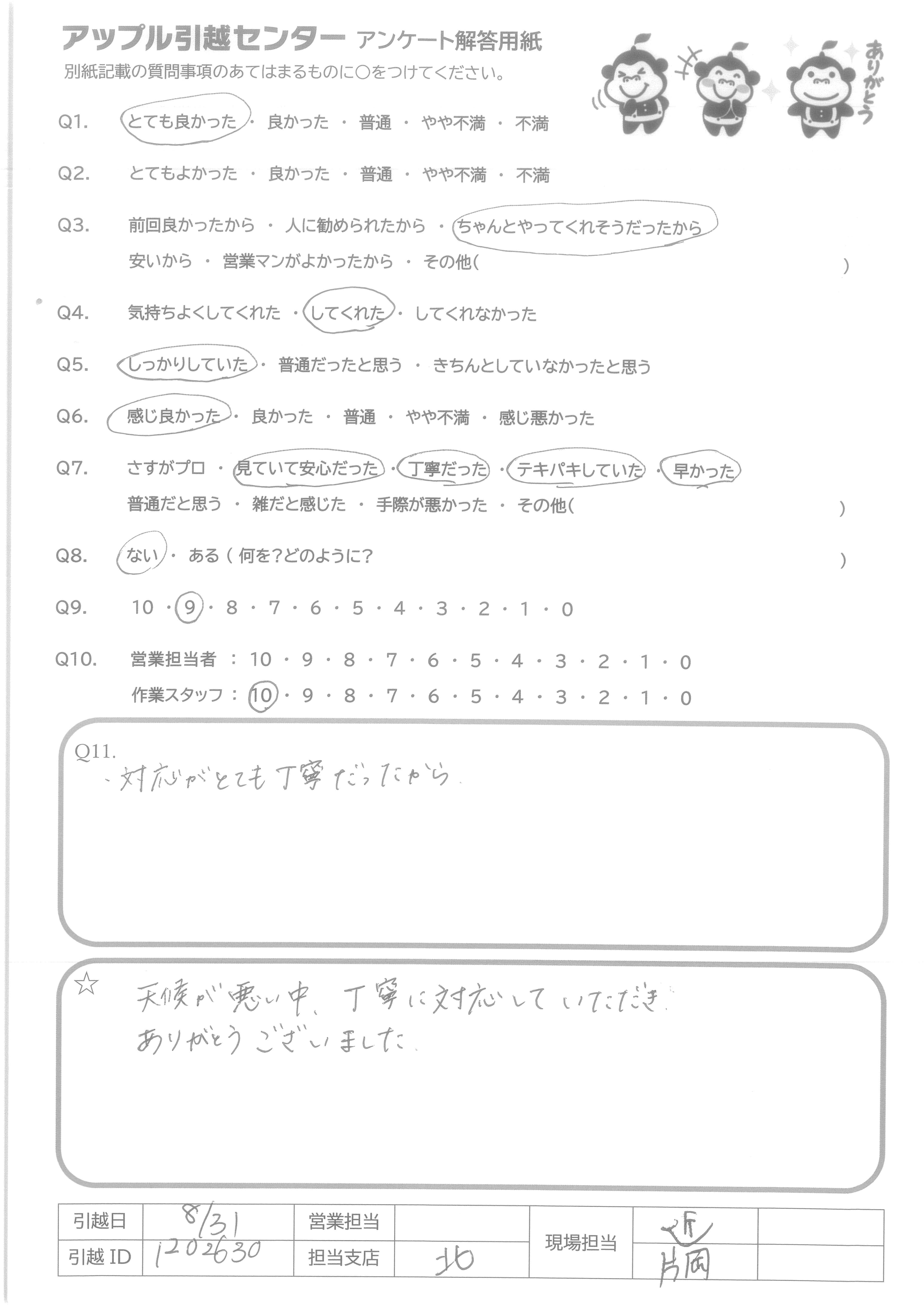 A.私の妻が当日立ち会いましたが、対応が丁寧で気持ち良く対応を行って頂いたと聞きました!