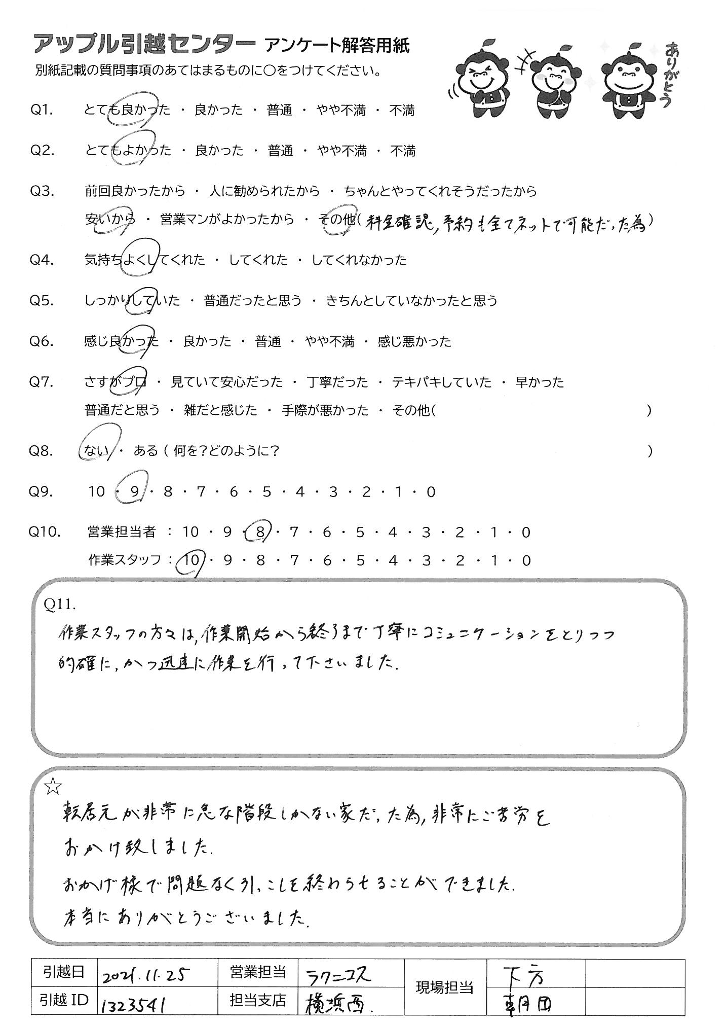 引越し日:2021年11月25日 エリア:神奈川県横浜市中区