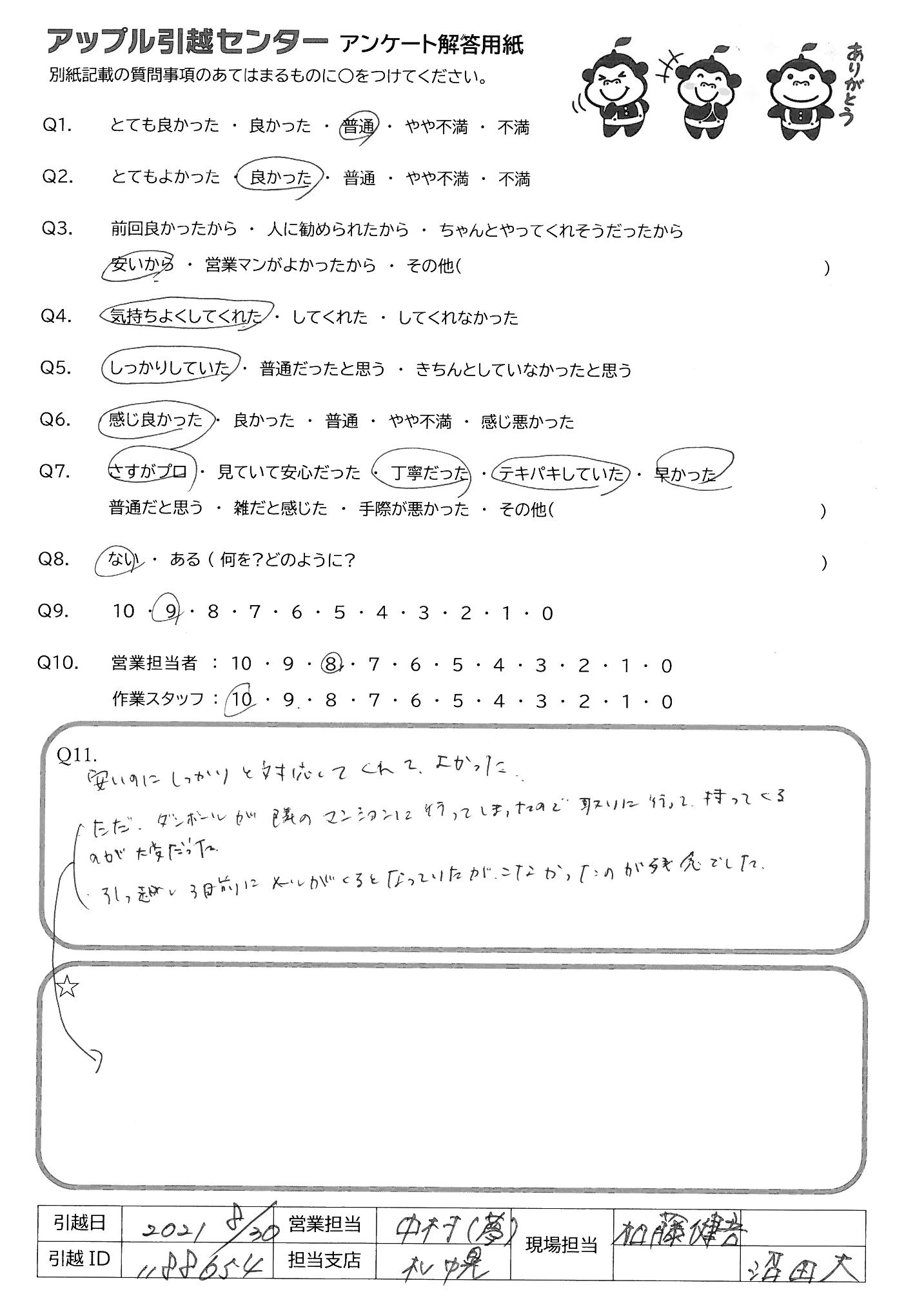 引越し日:2021年08月30日 エリア:神奈川県横浜市港北区