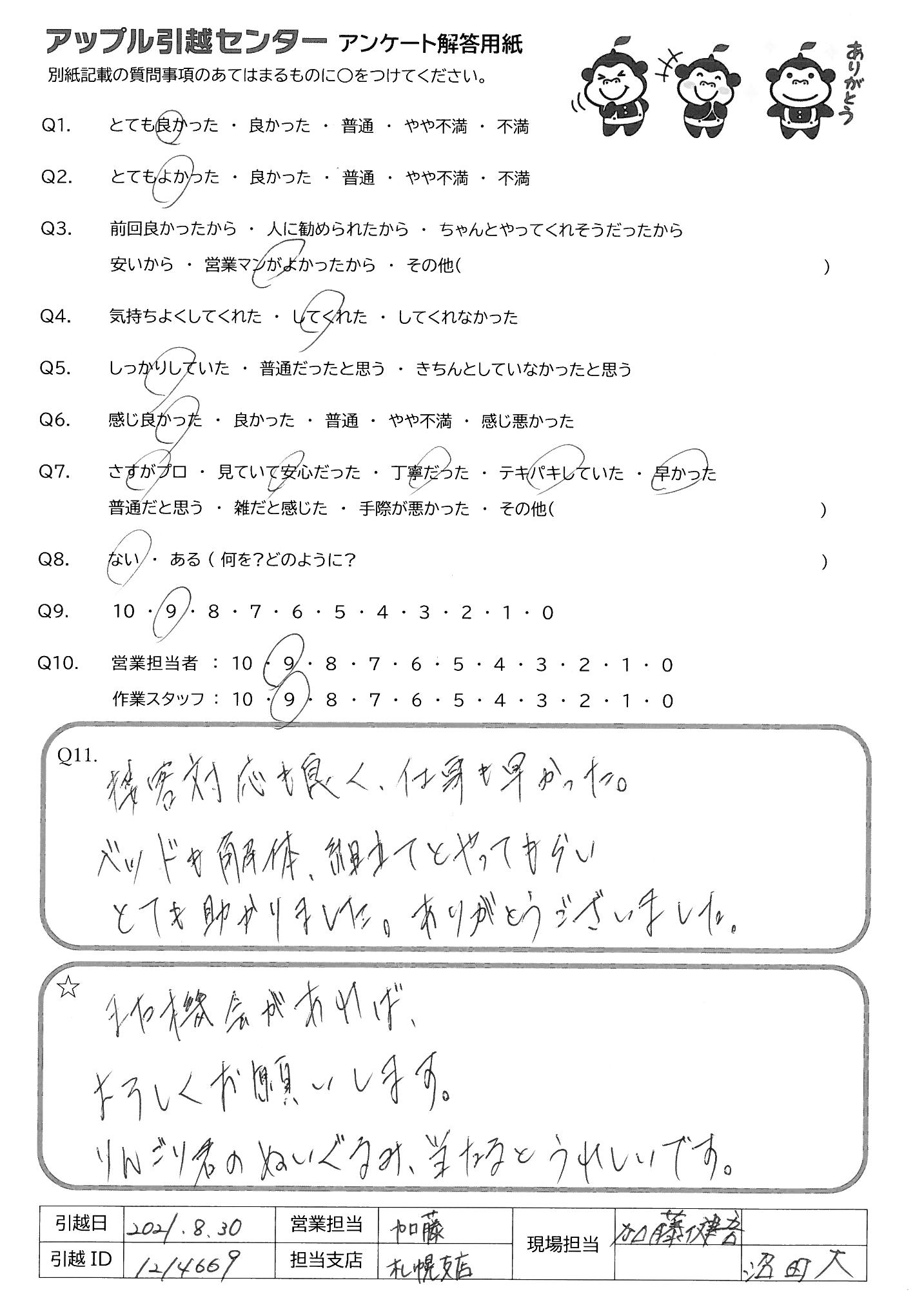 引越し日:2021年08月30日 エリア:北海道札幌市東区