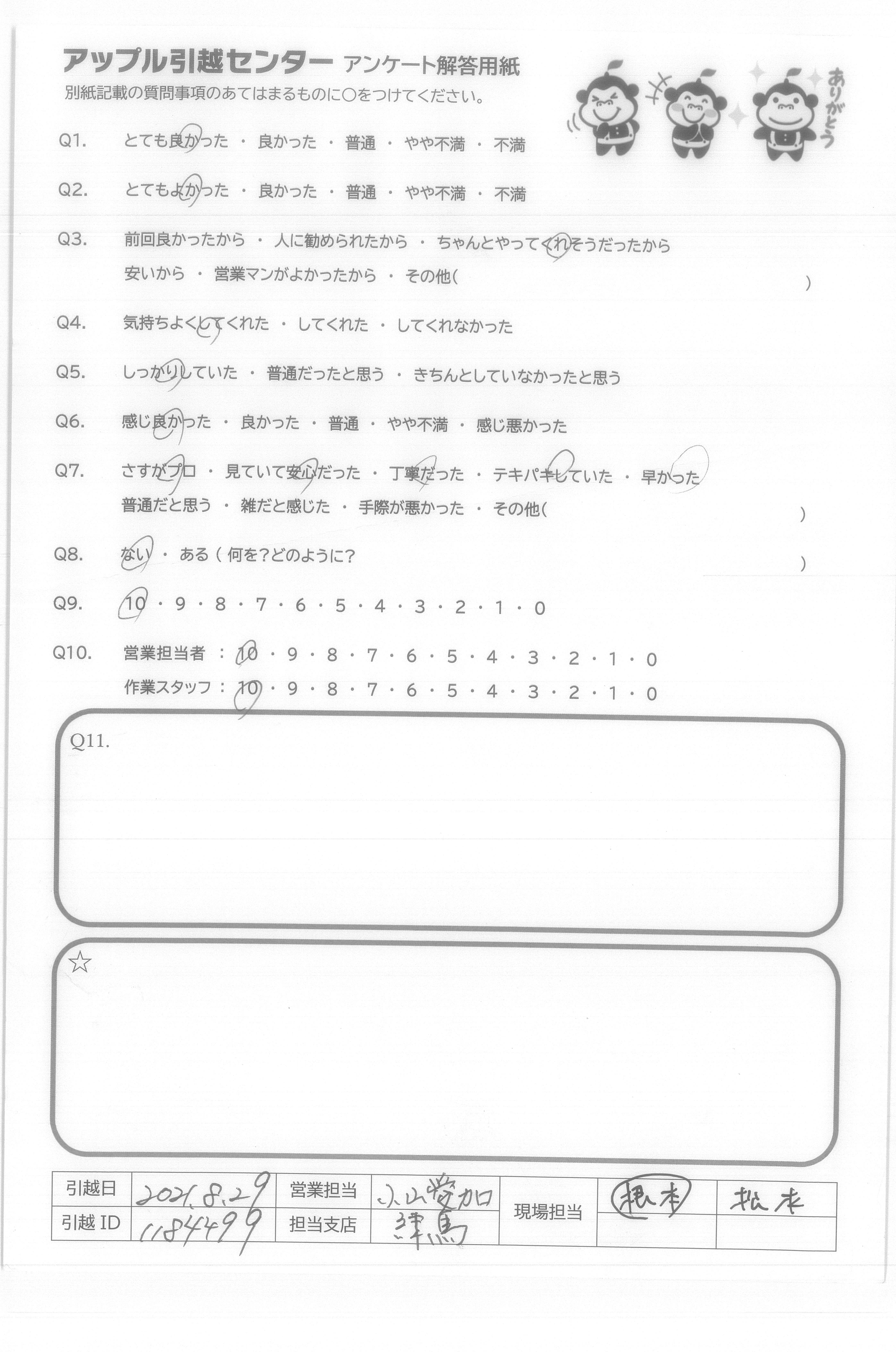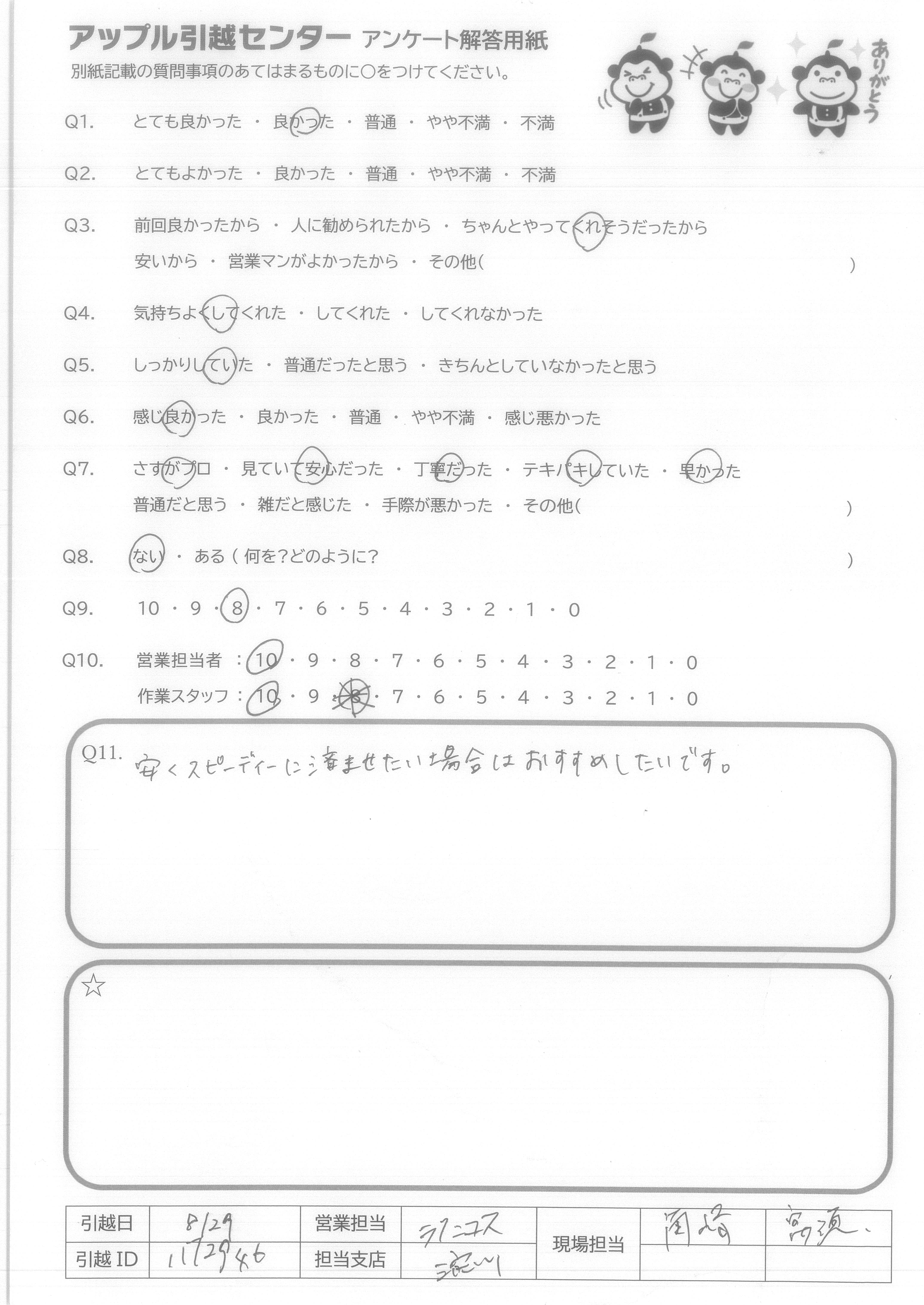 引越し日:2021年08月29日 エリア:東京都江東区
