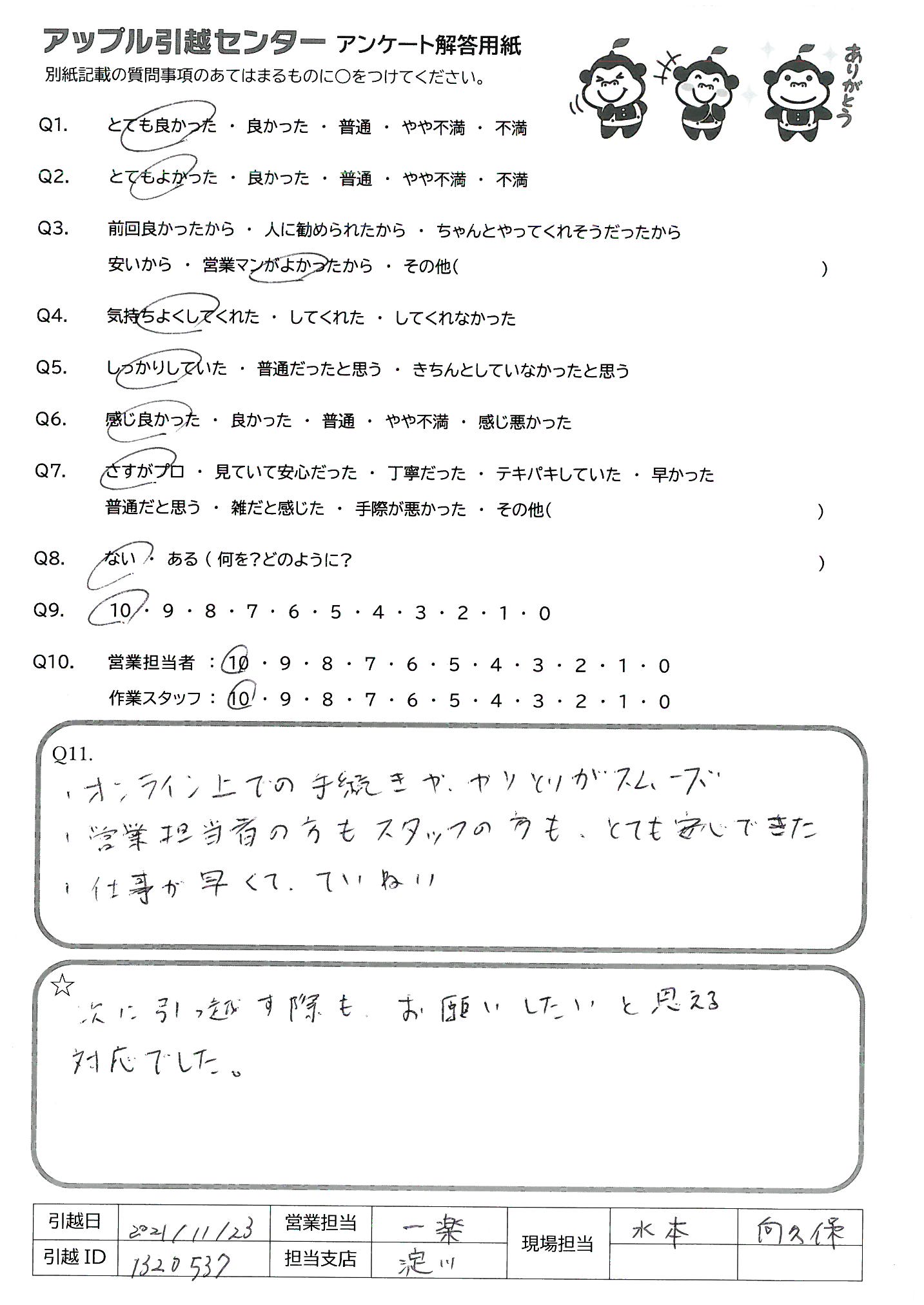 A.次に引っ越す際もお願いしたいと思える対応でした。