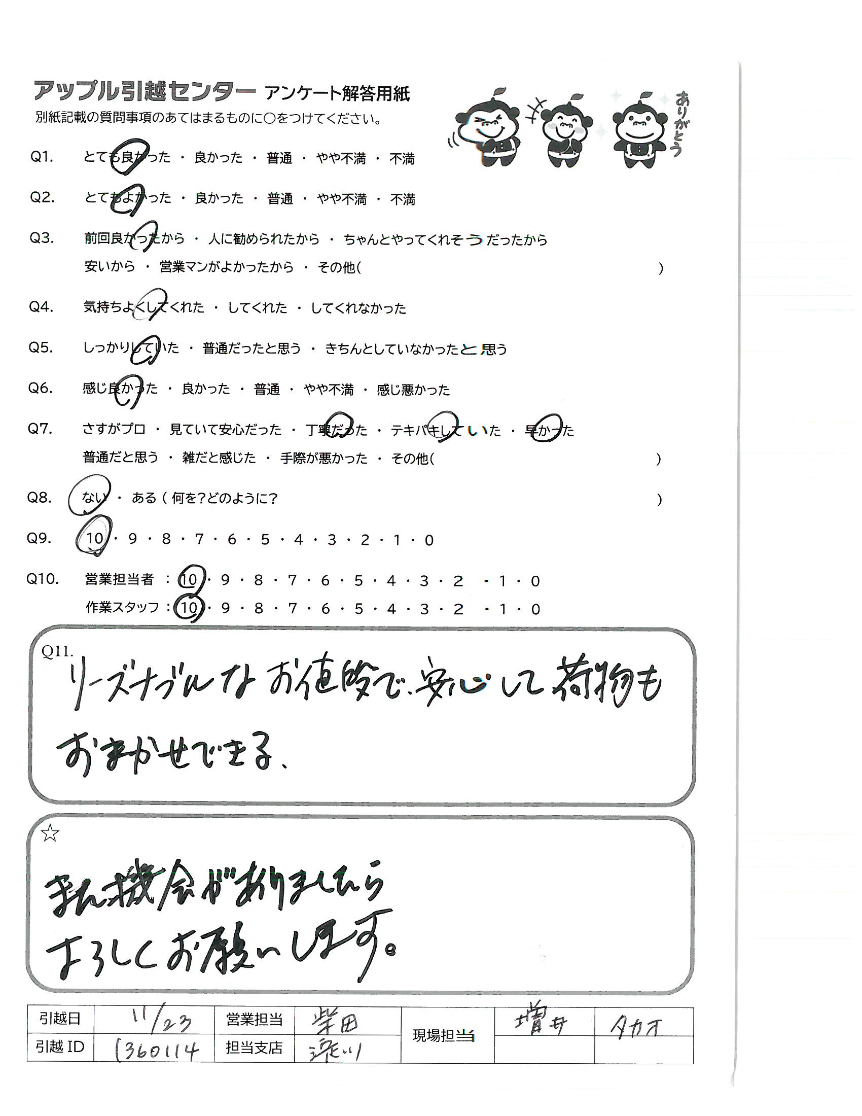 A.この度はありがとうございました。 また引っ越す機会がありましたらぜひ利用したいです。