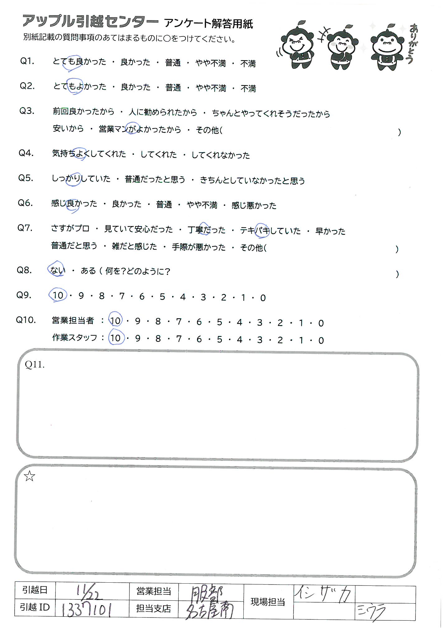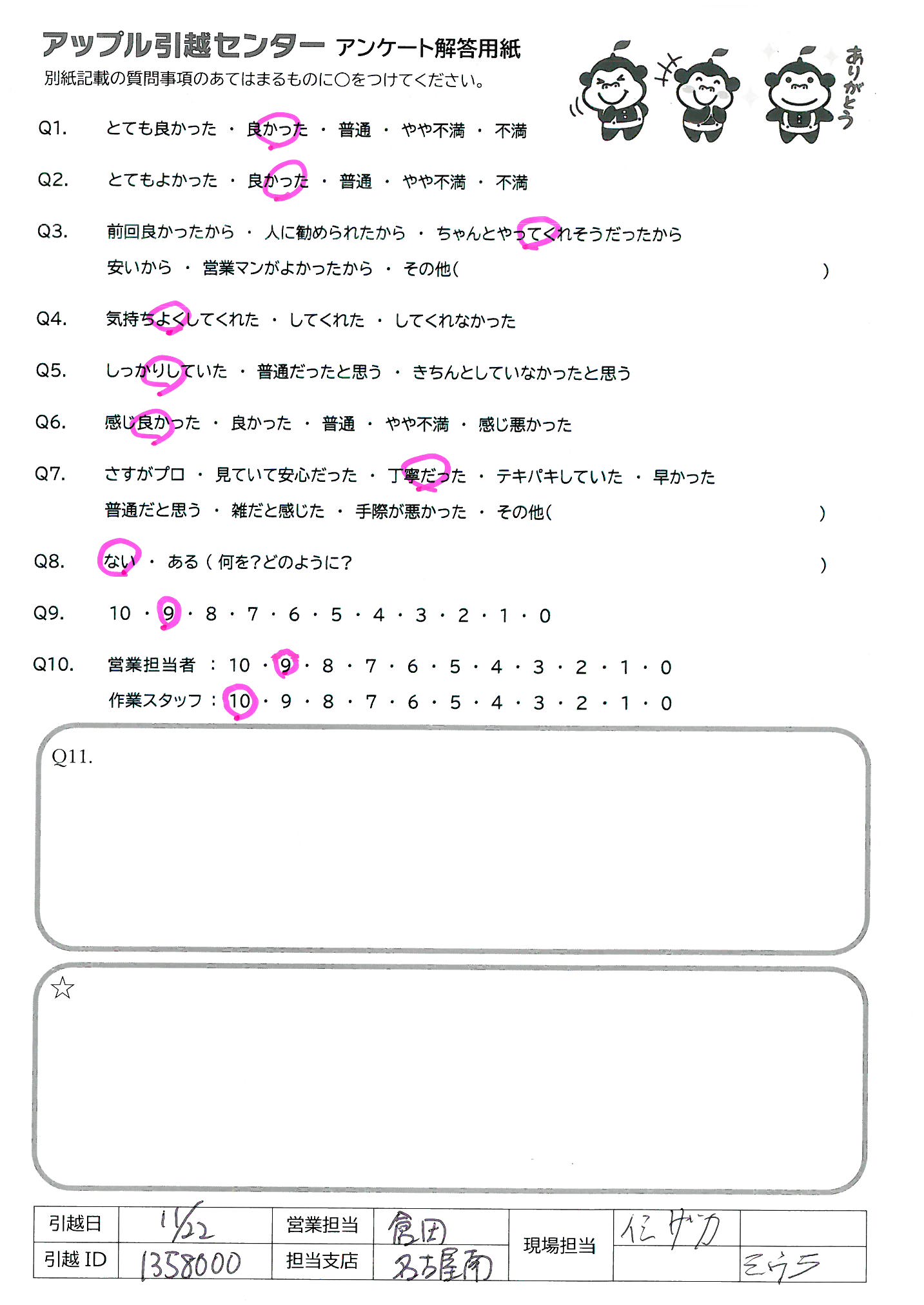 アップル引越センターでは、面映いお褒めの言葉も、胸に突き刺さるお叱りのコメントも、