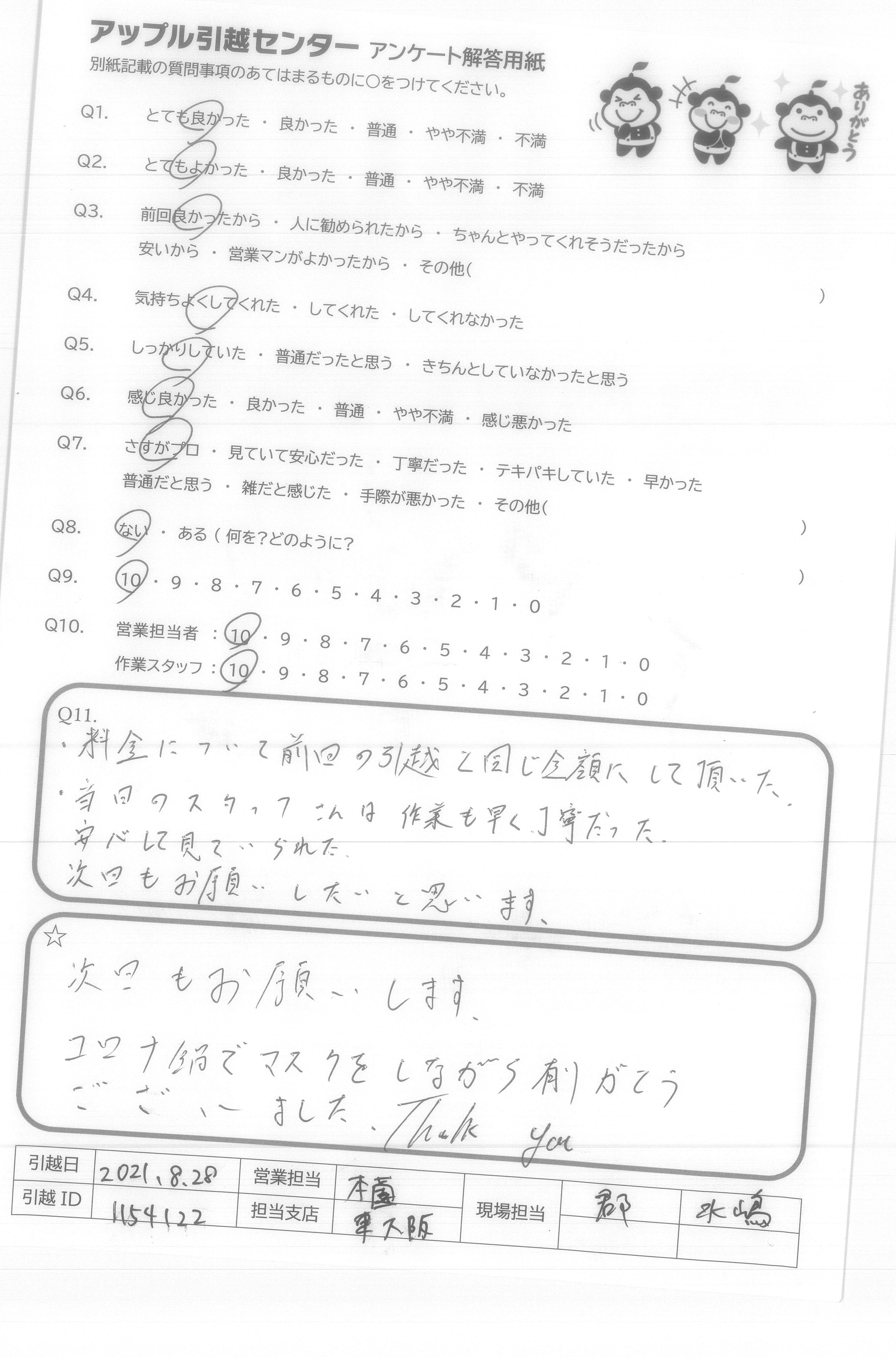 引越し日:2021年08月28日 エリア:大阪府吹田市