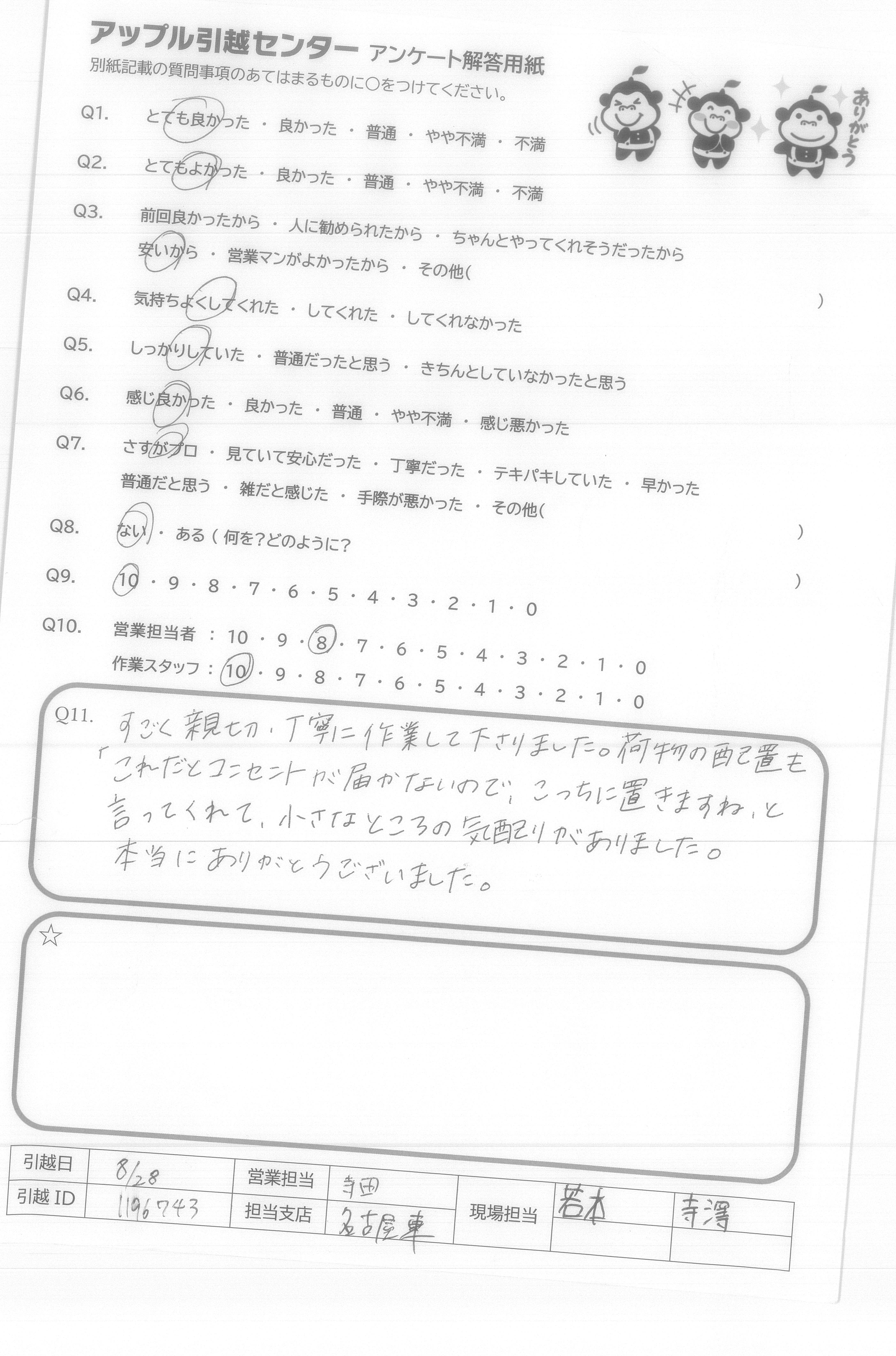 引越し日:2021年08月28日 エリア:愛知県名古屋市守山区