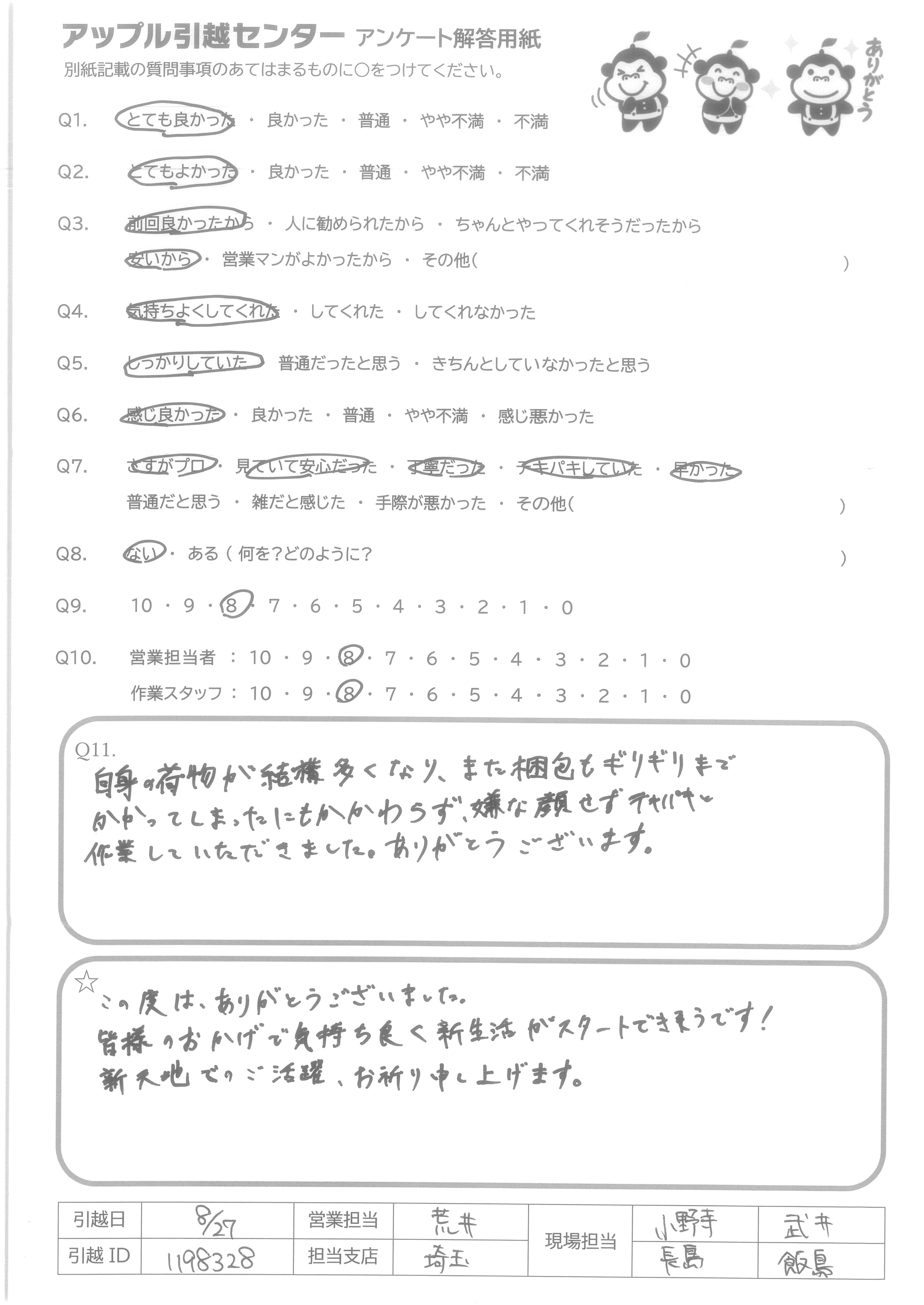 引越し日:2021年08月27日 エリア:埼玉県川越市