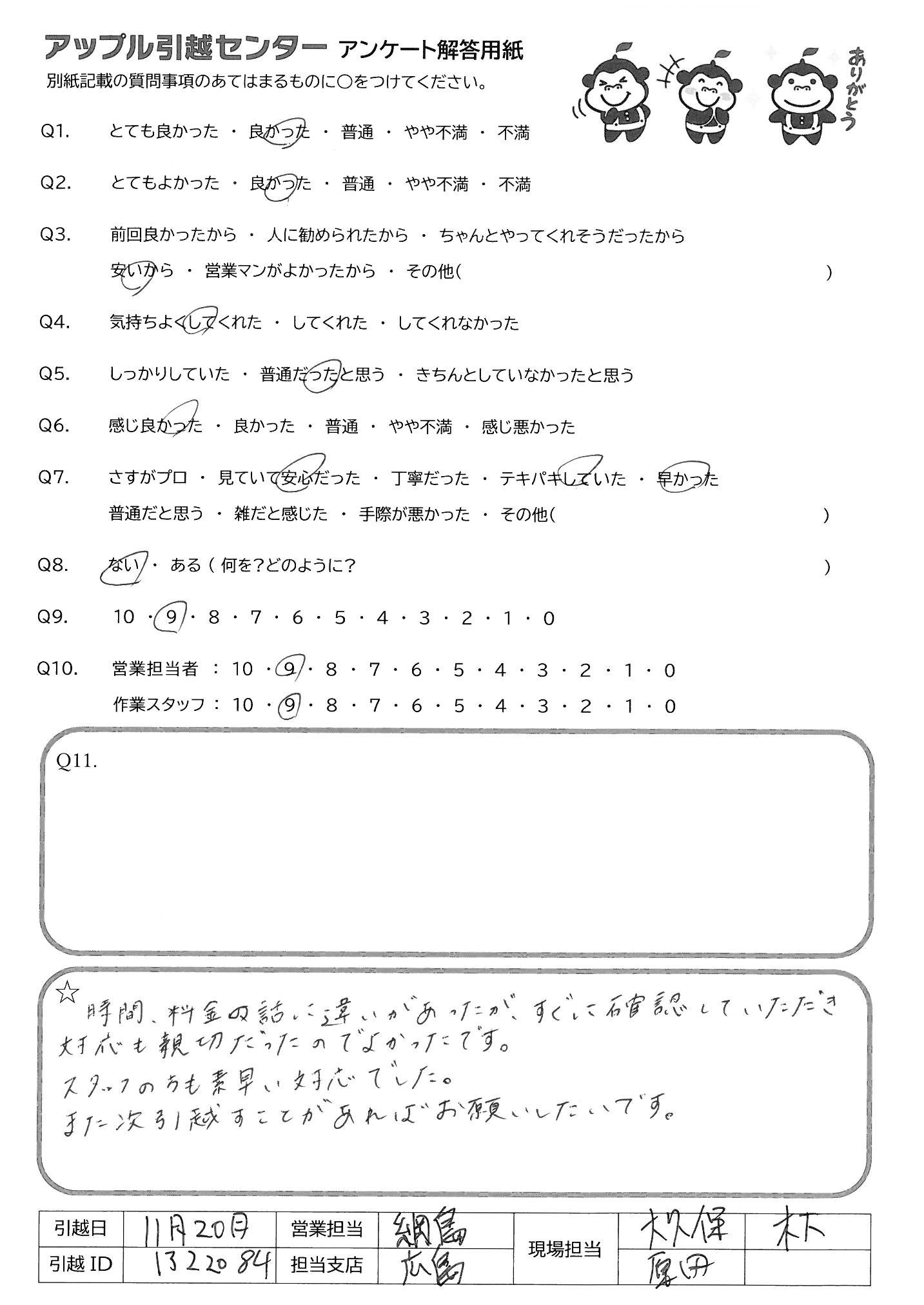 引越し日:2021年11月20日 エリア:広島県広島市西区