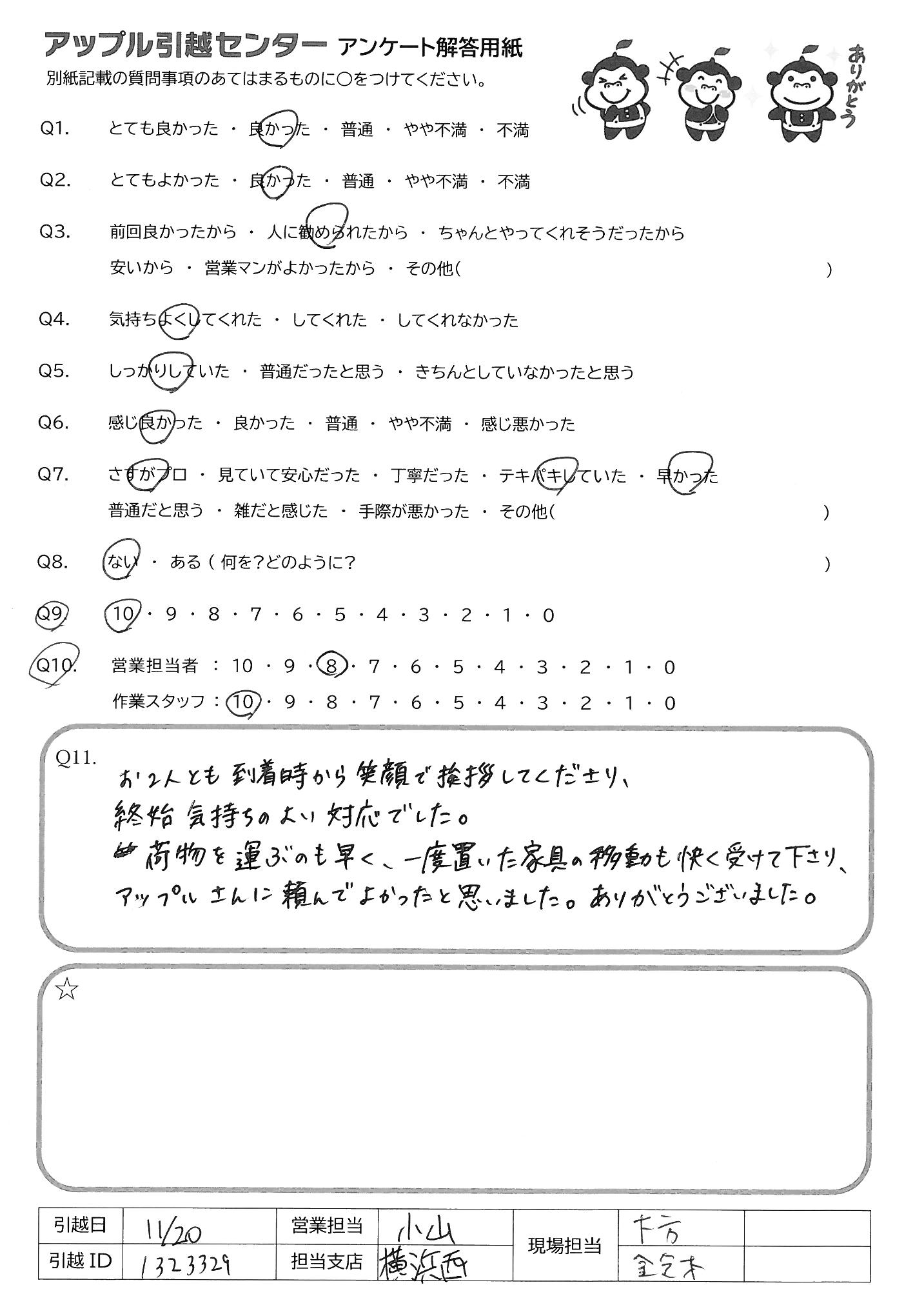 引越し日:2021年11月20日 エリア:神奈川県横浜市西区