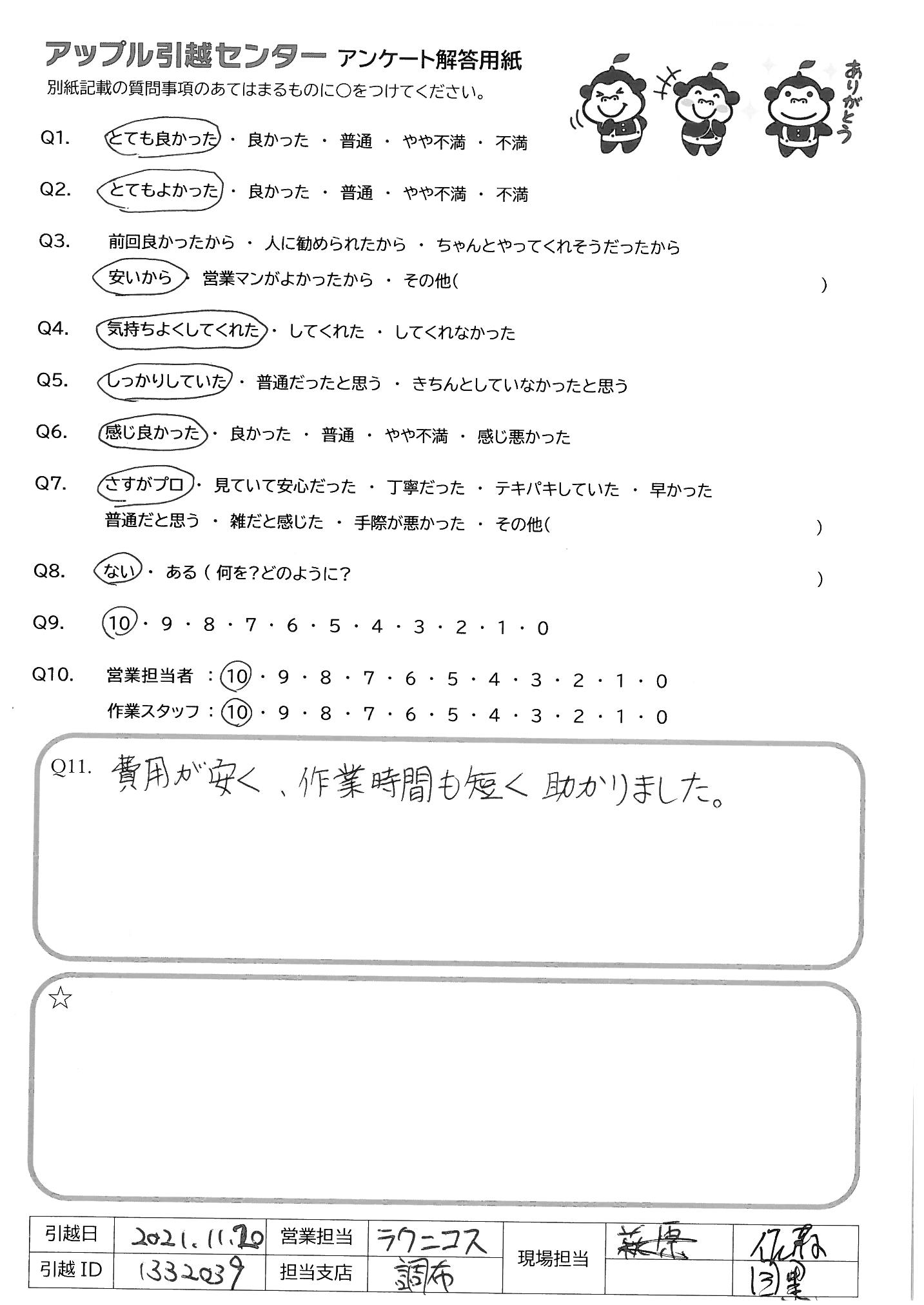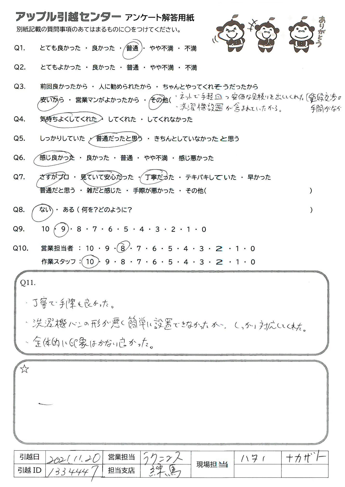 引越し日:2021年11月20日 エリア:東京都練馬区
