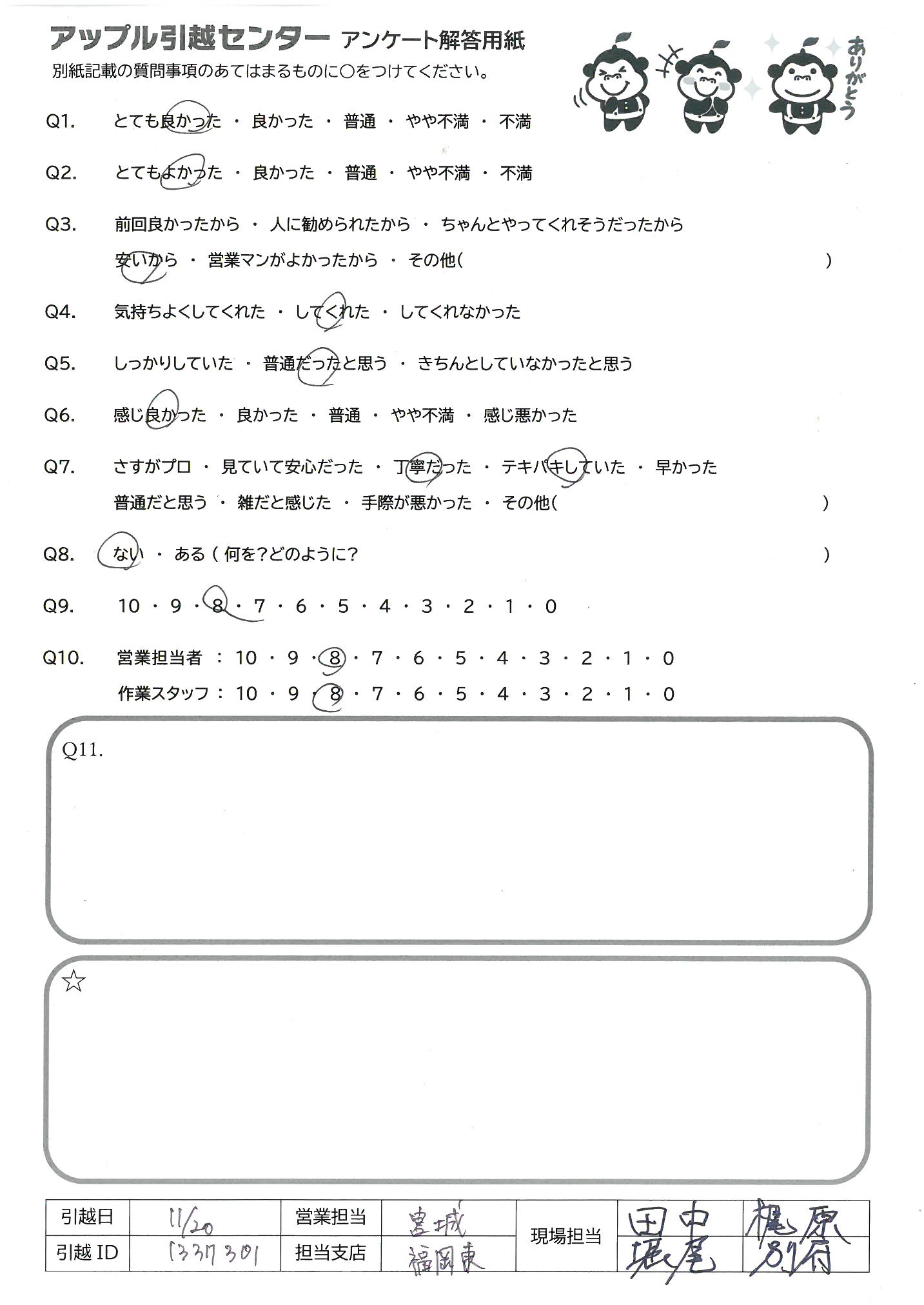引越し日:2021年11月20日 エリア:福岡県福岡市中央区