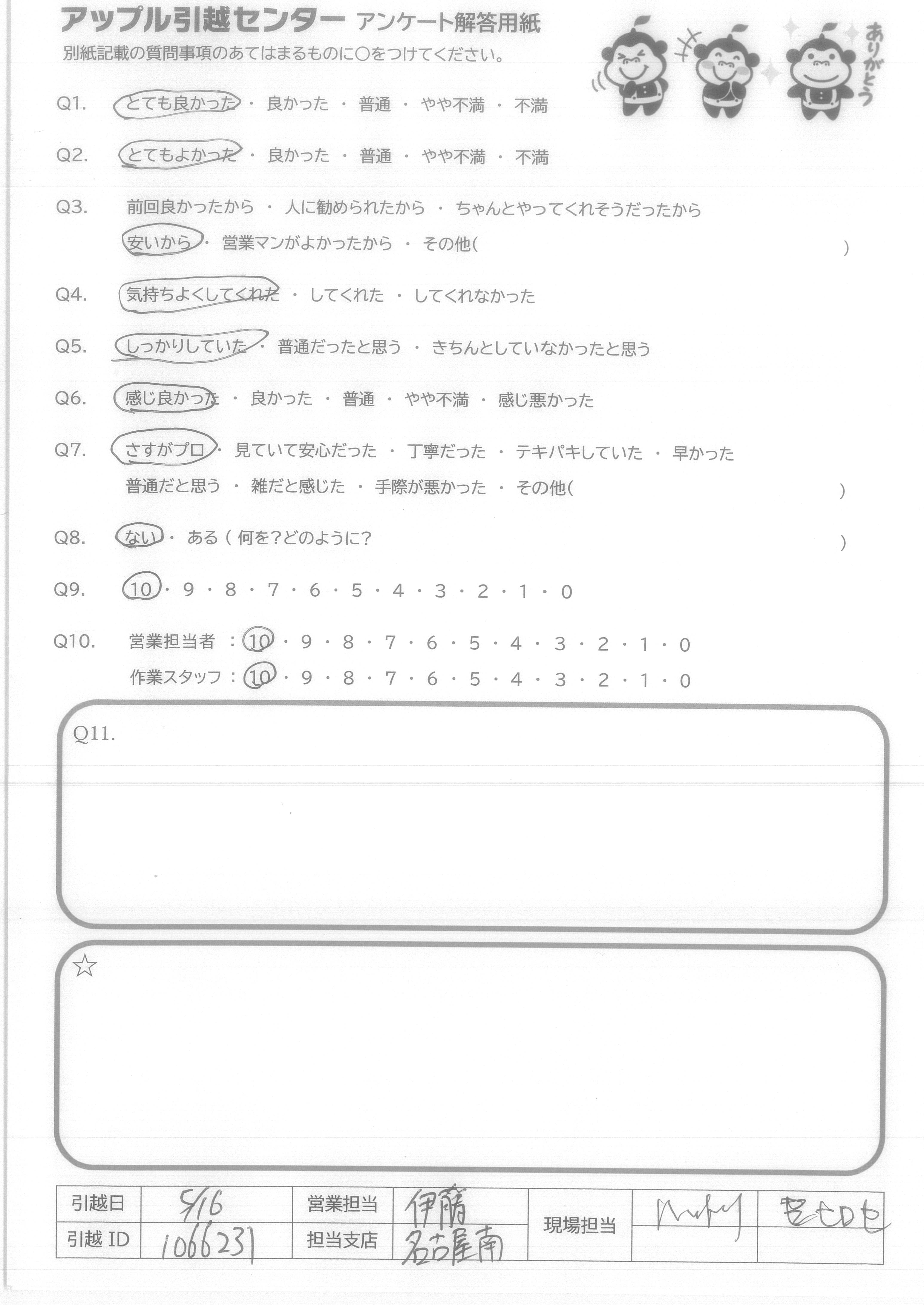引越し日:2021年05月16日 エリア:愛知県名古屋市中村区