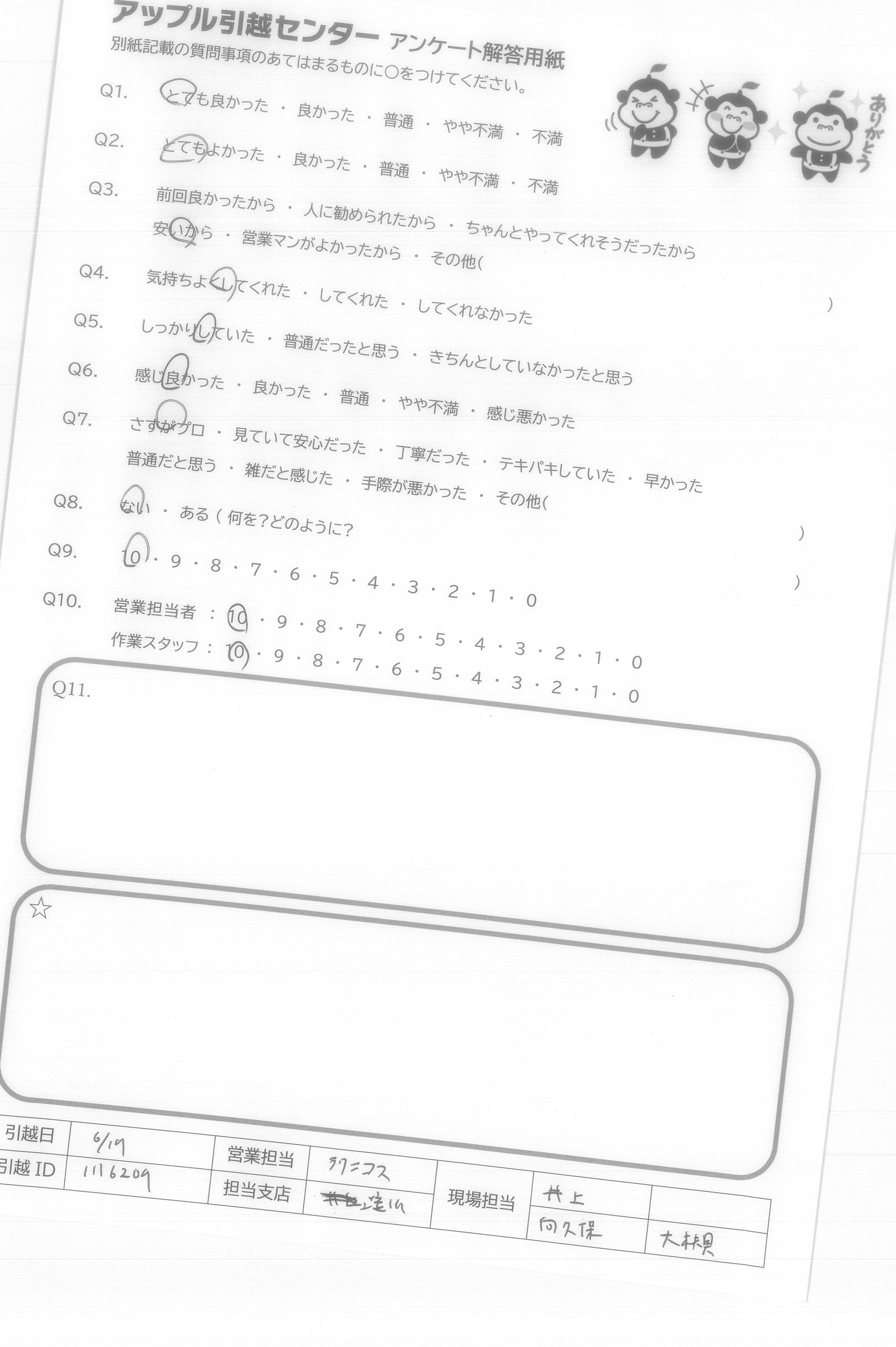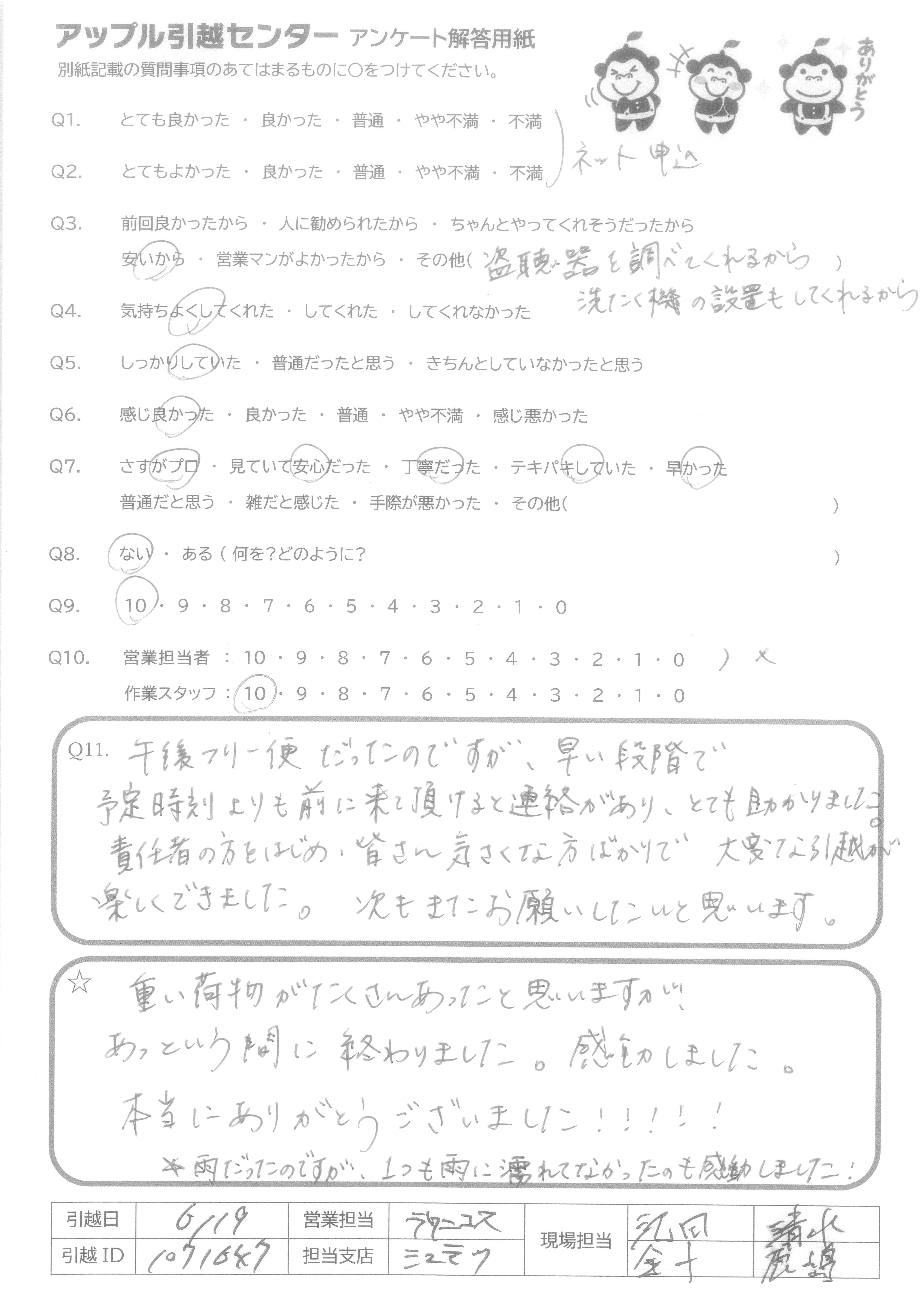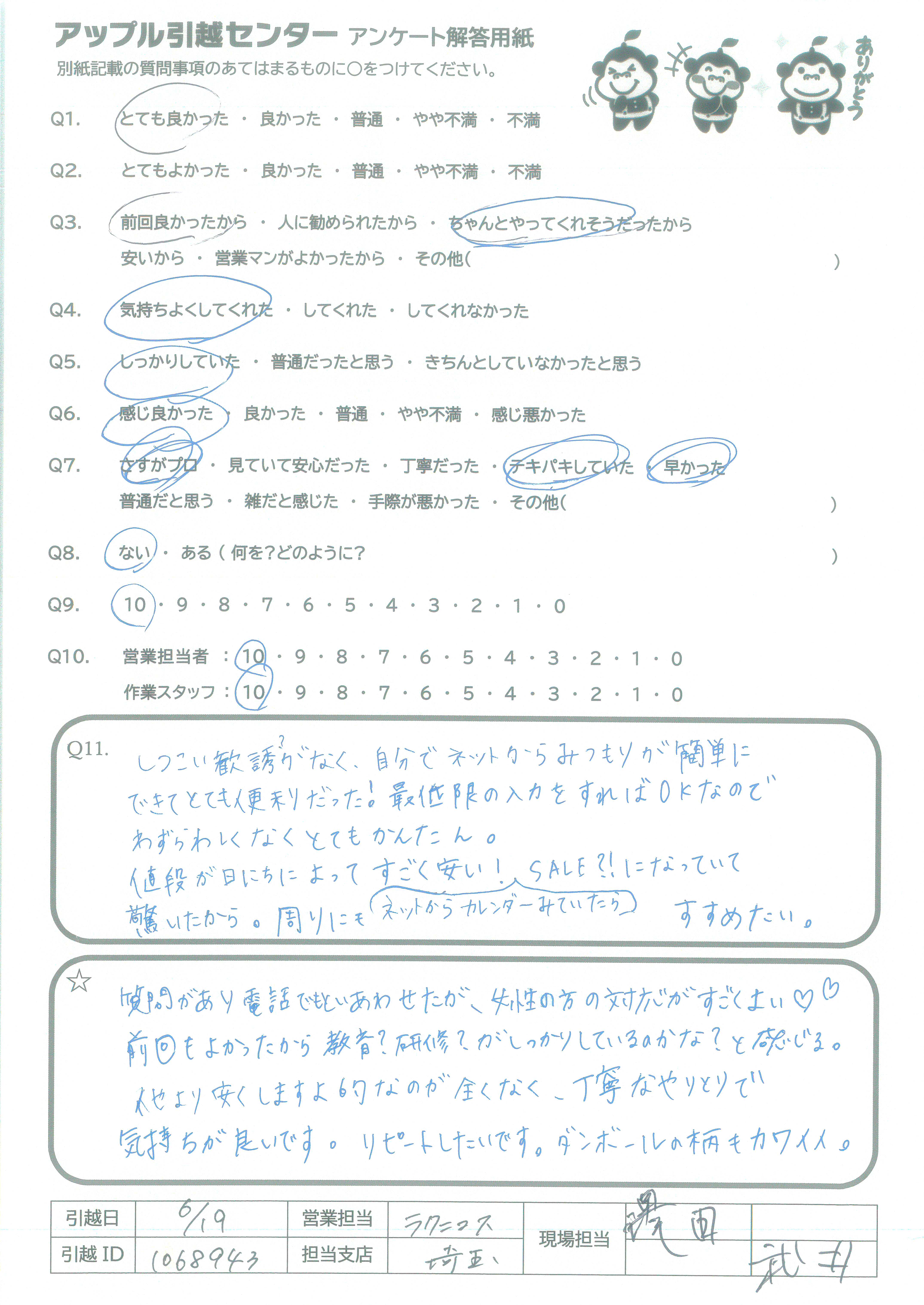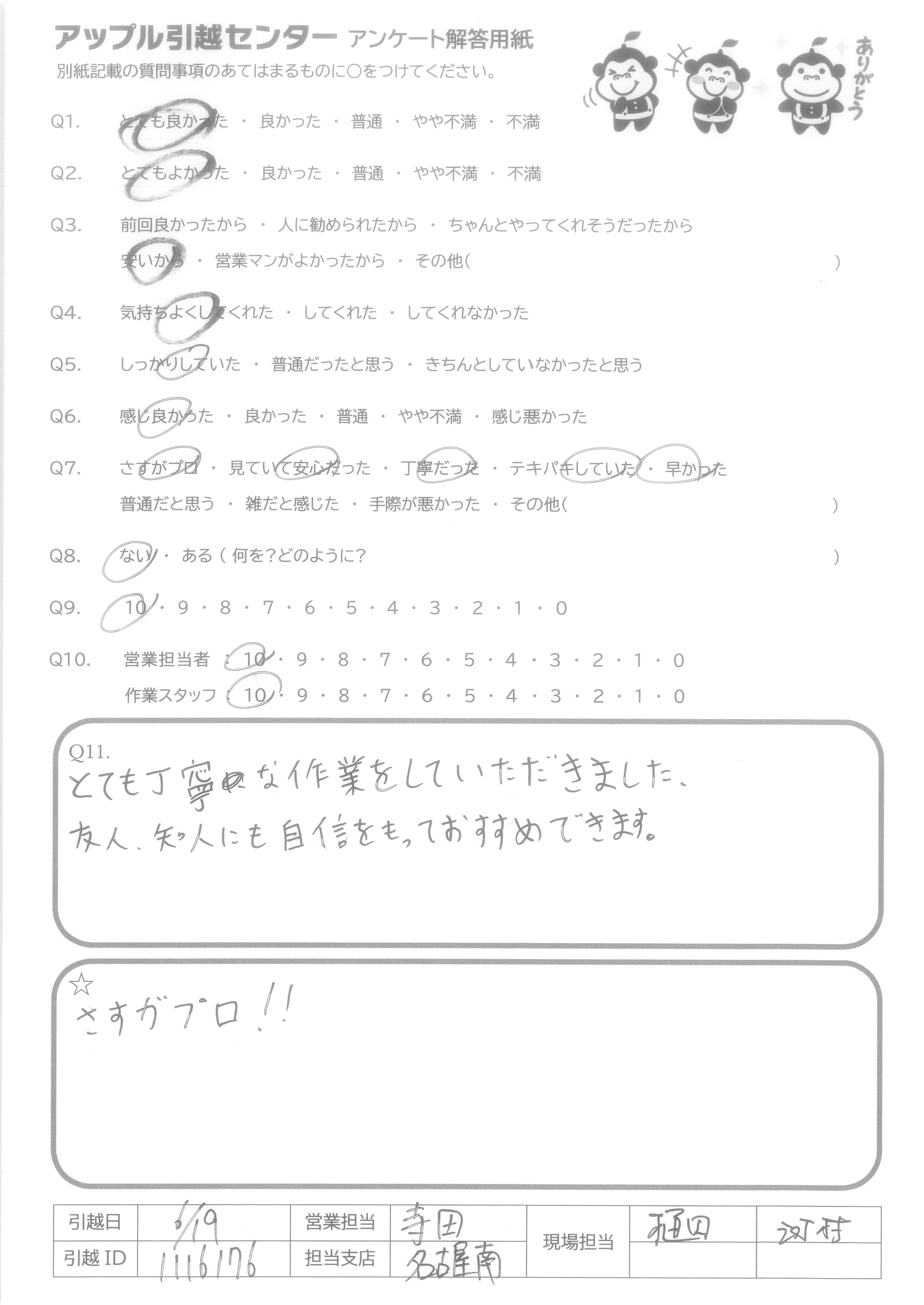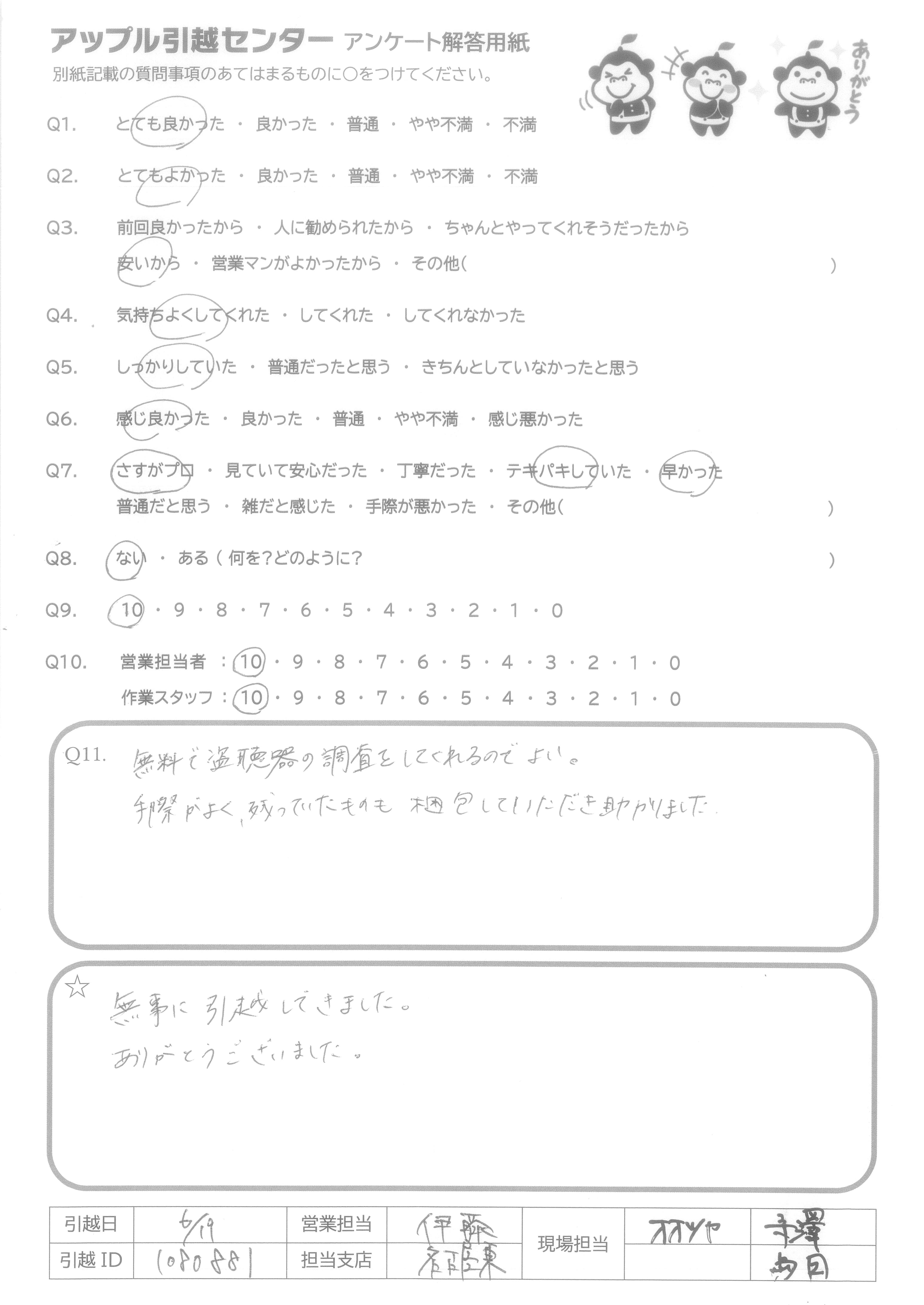 A.Q7の回答のとおり とてもしっかりしており、引越を任せてよかった