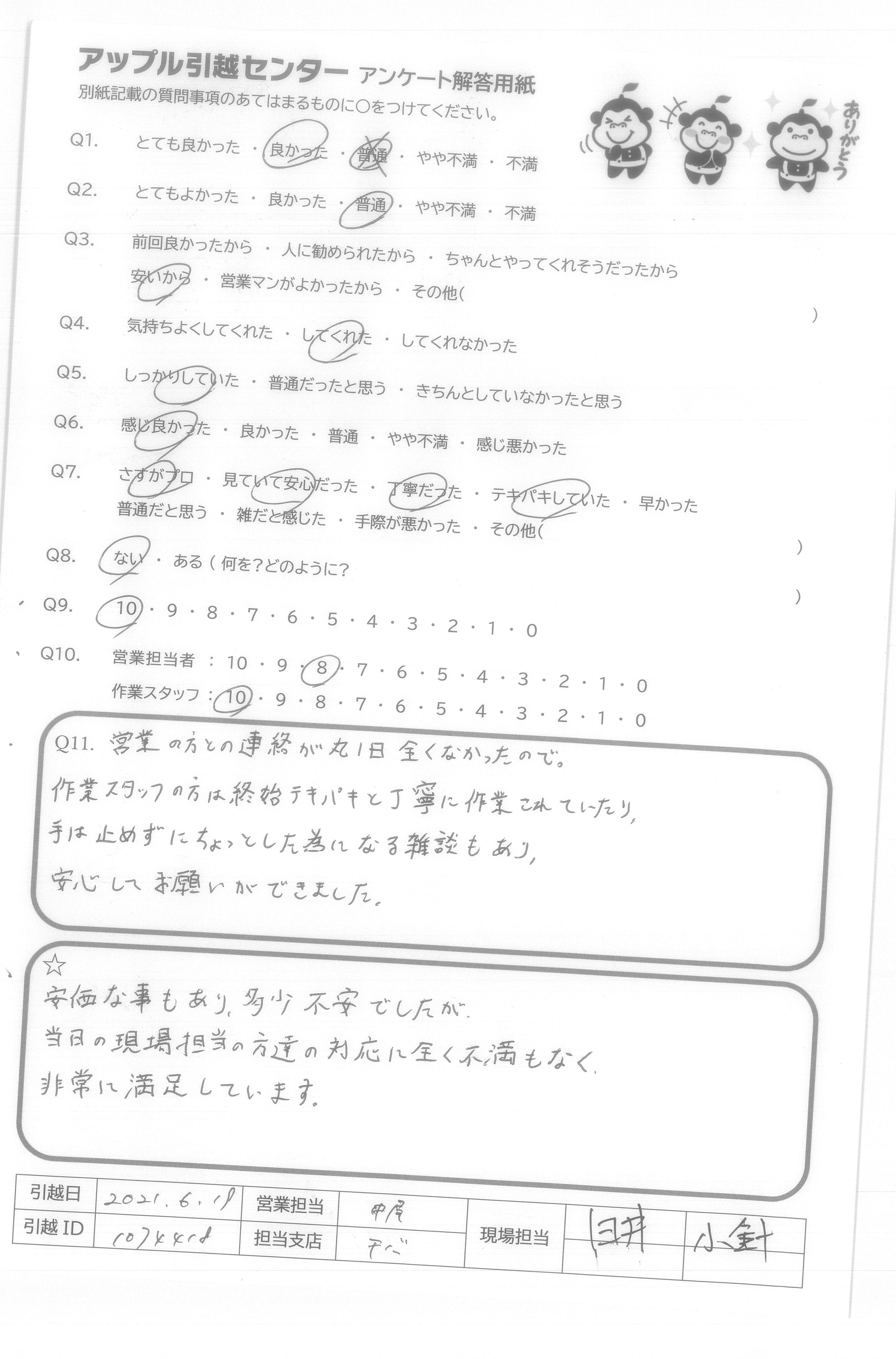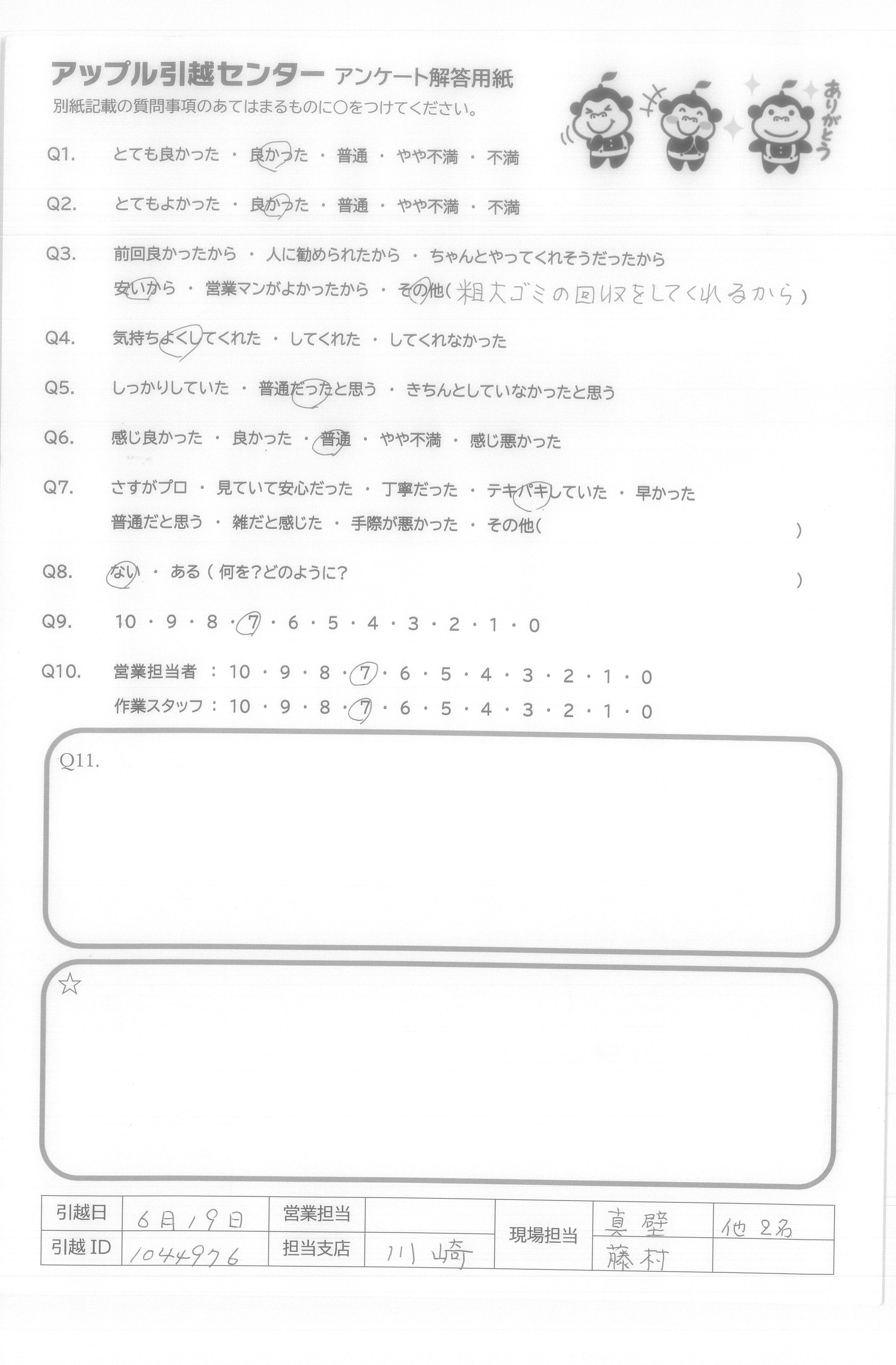 引越し日:2021年06月19日 エリア:神奈川県川崎市宮前区
