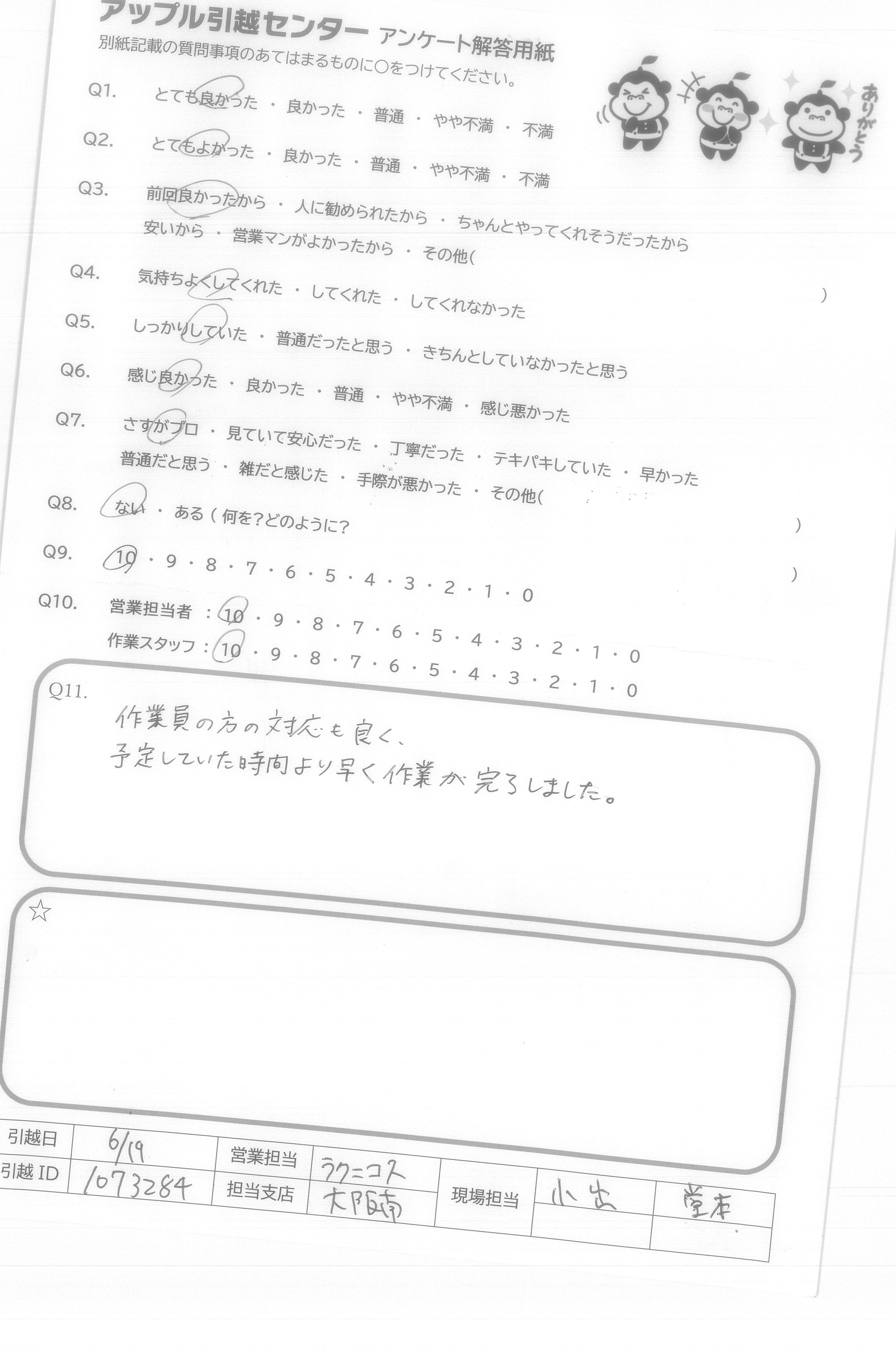 引越し日:2021年06月19日 エリア:大阪府大阪市北区
