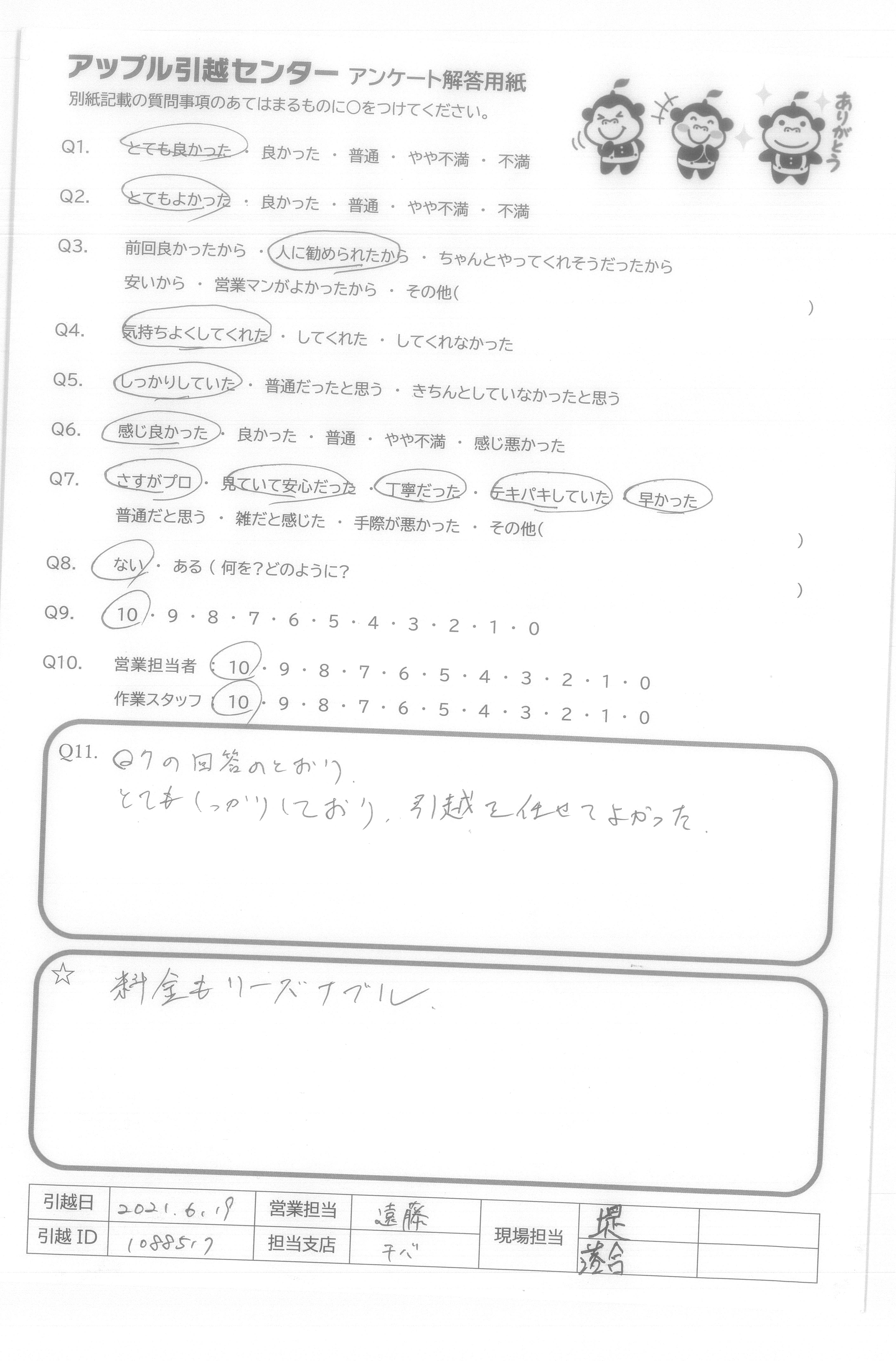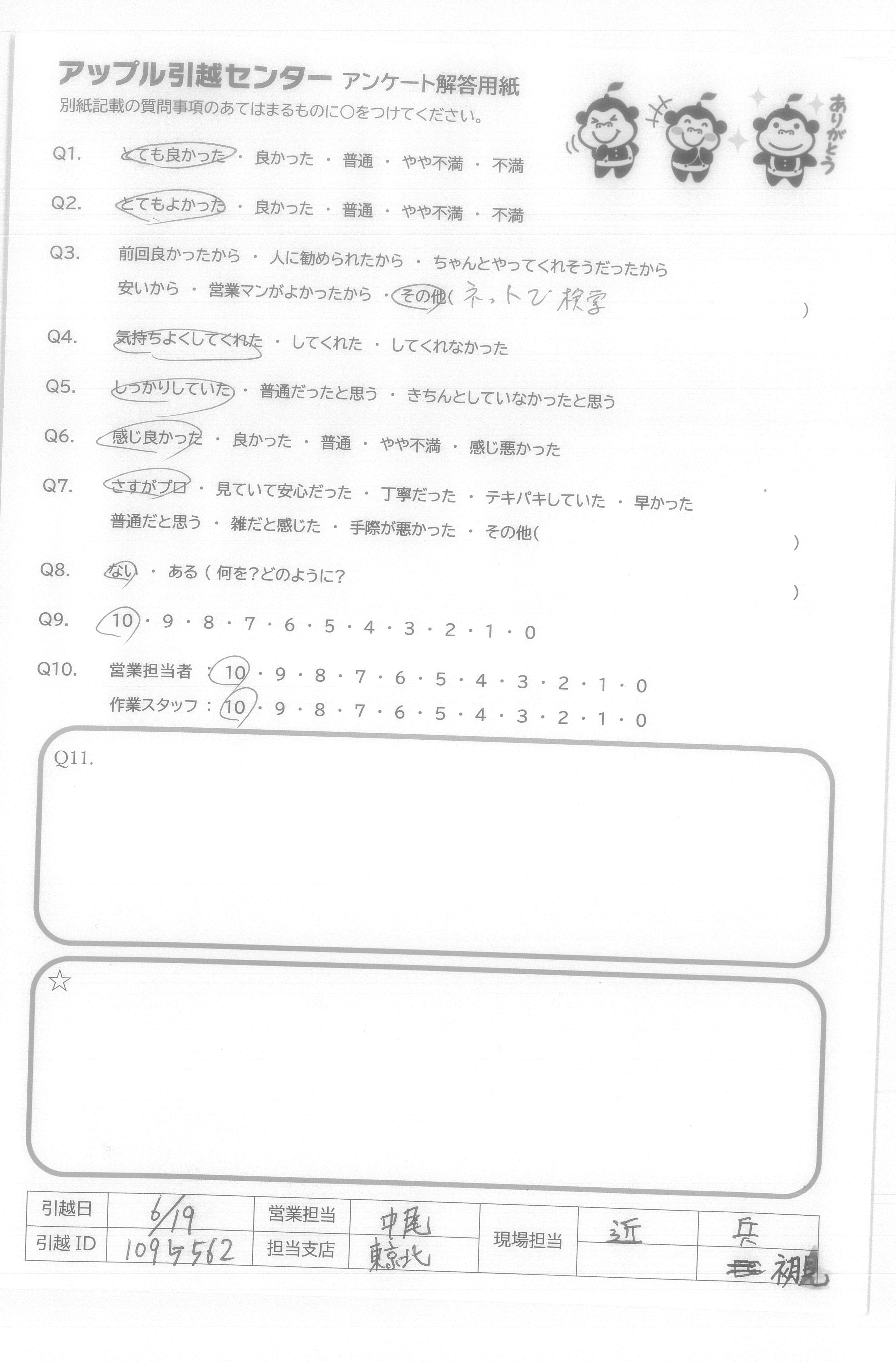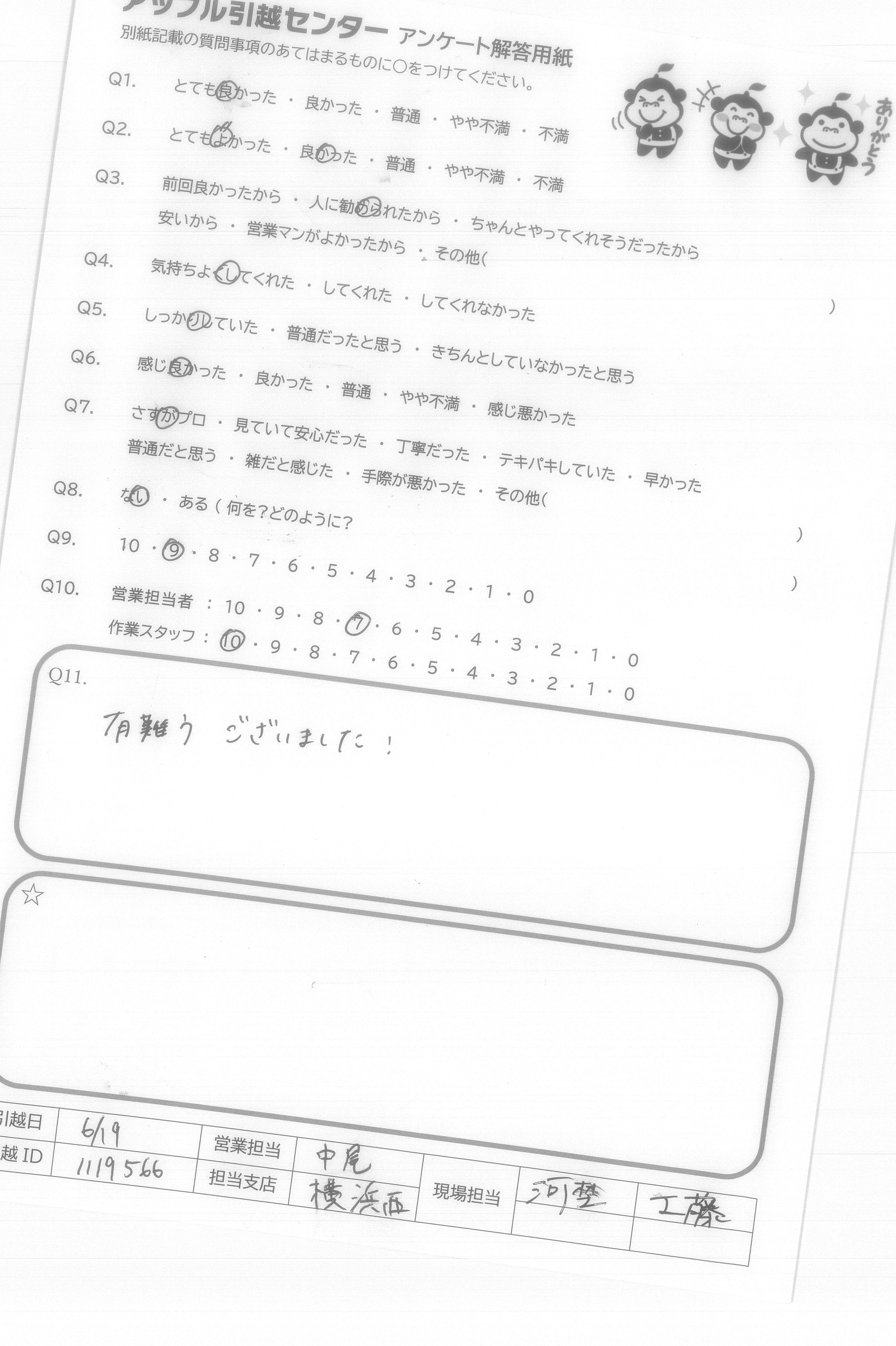 引越し日:2021年06月19日 エリア:神奈川県横浜市港北区