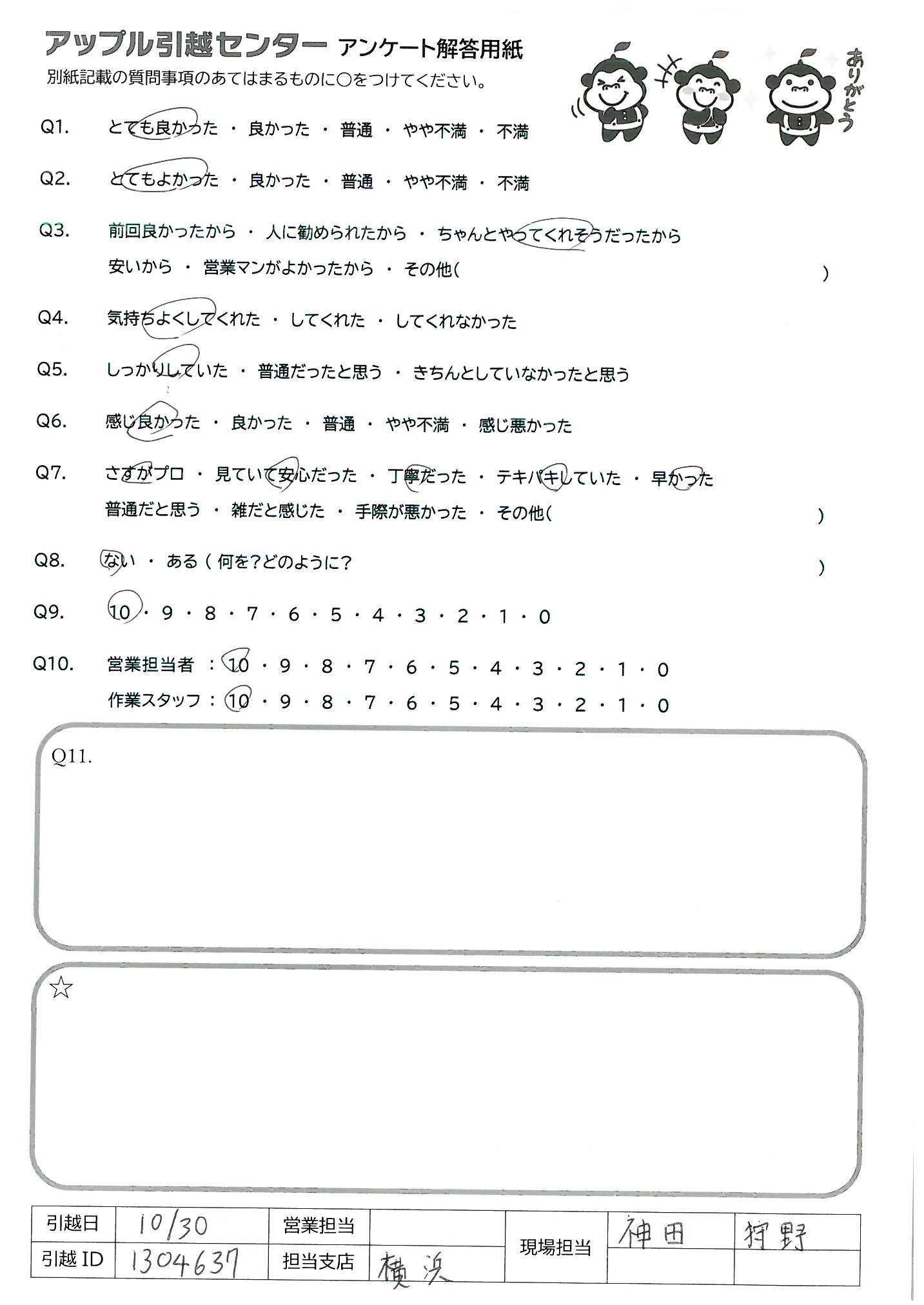引越し日:2021年10月30日 エリア:神奈川県横浜市港北区