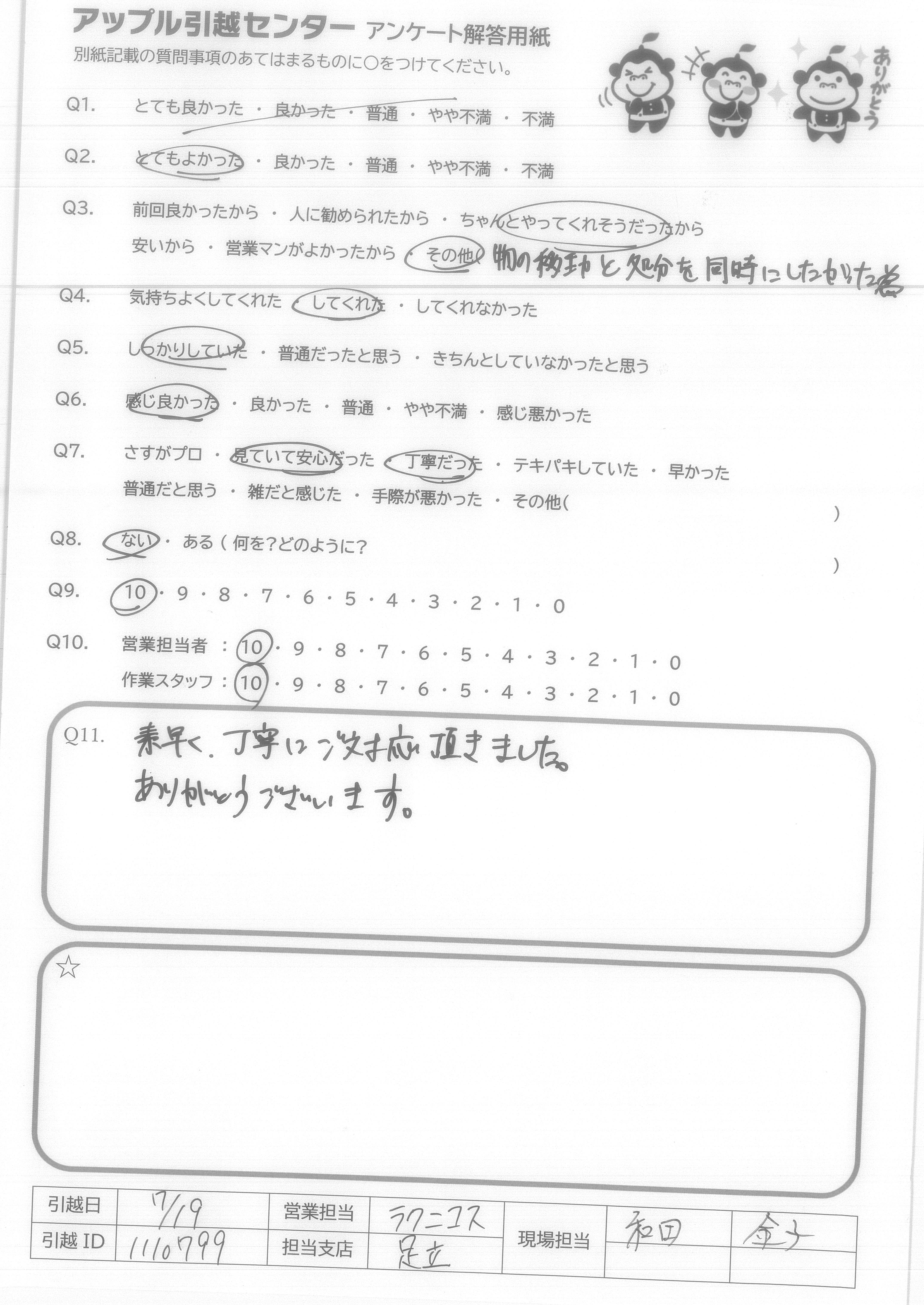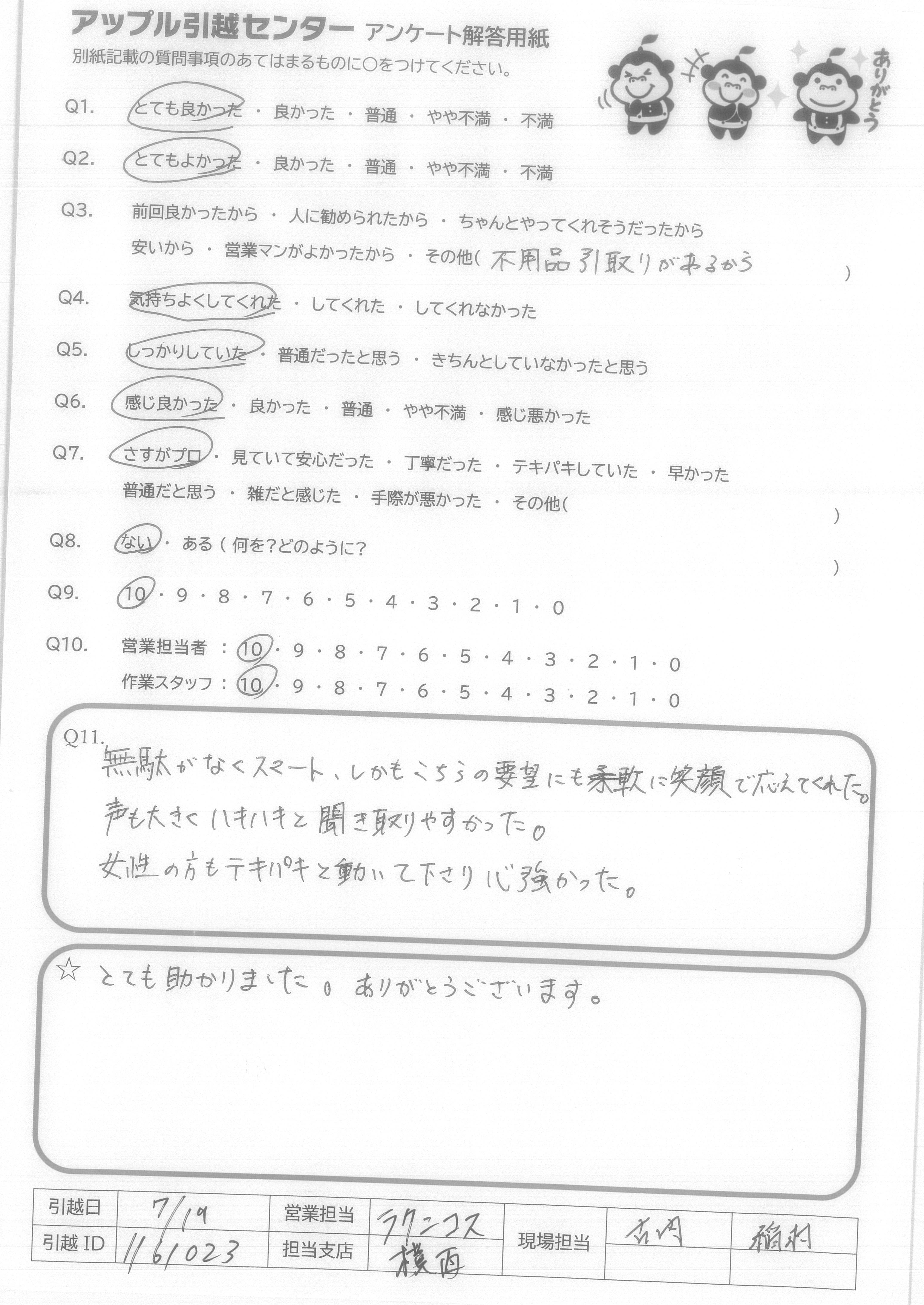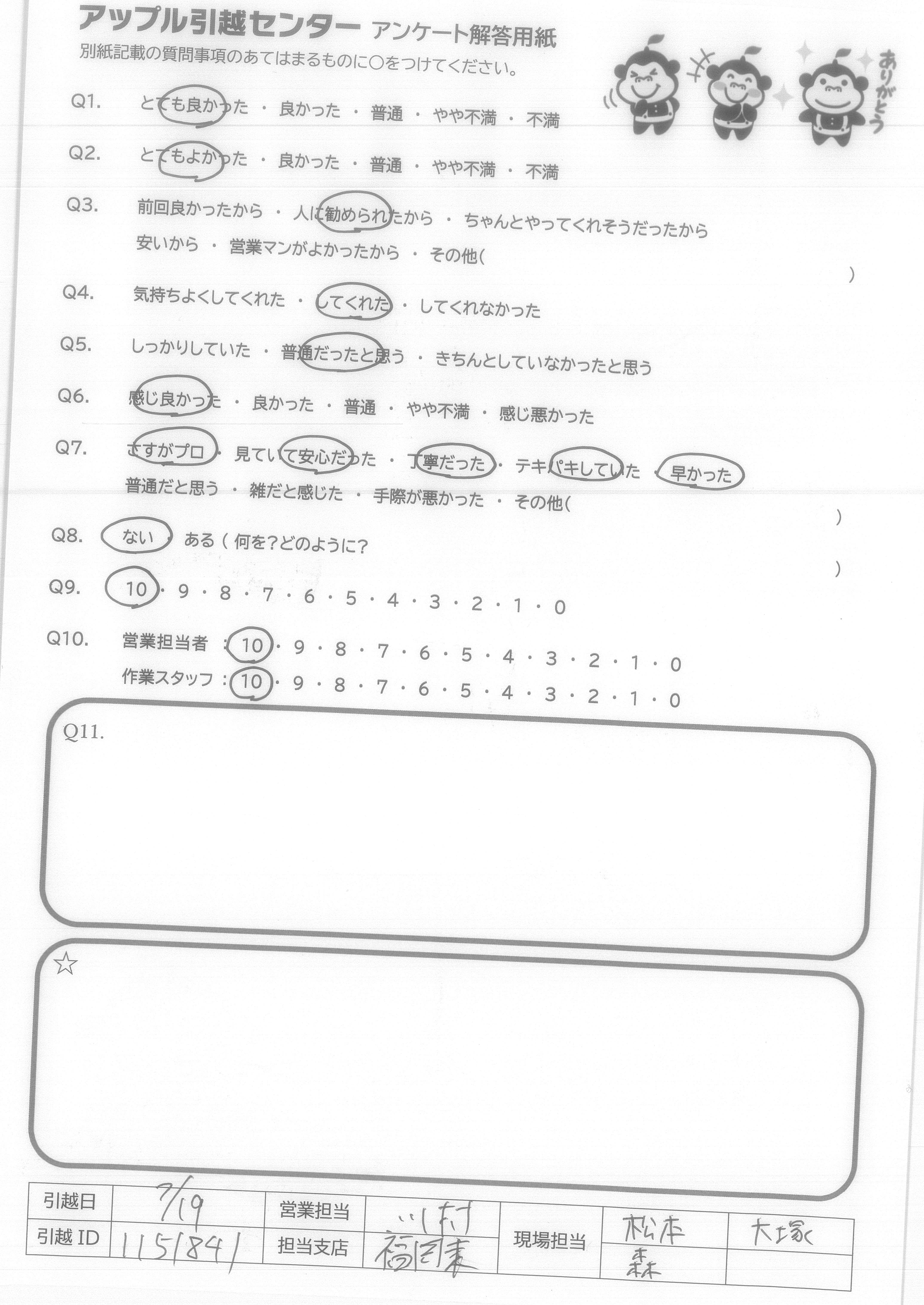 A.ありがとうございました。また引越すことがあれば利用したいと思います。