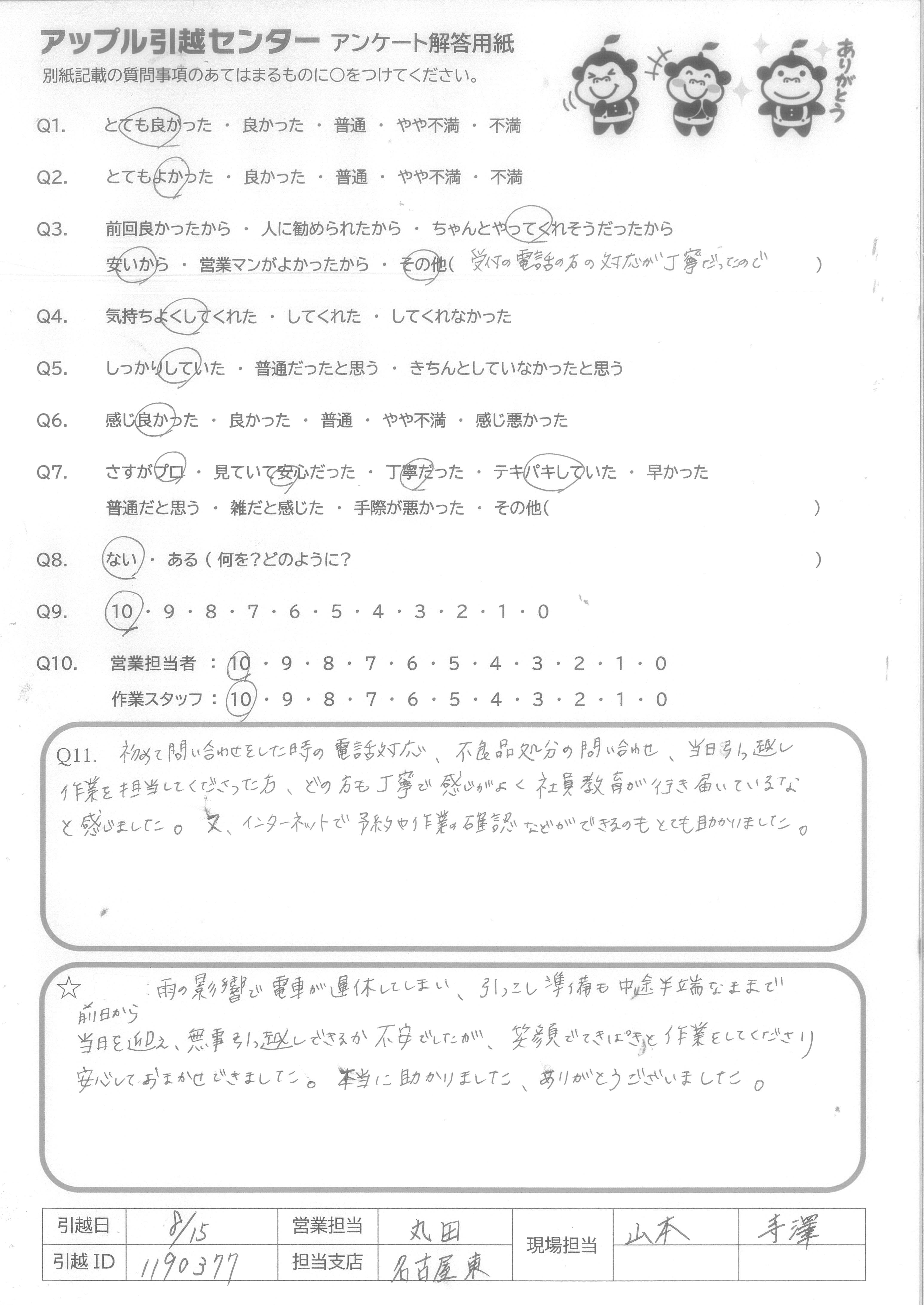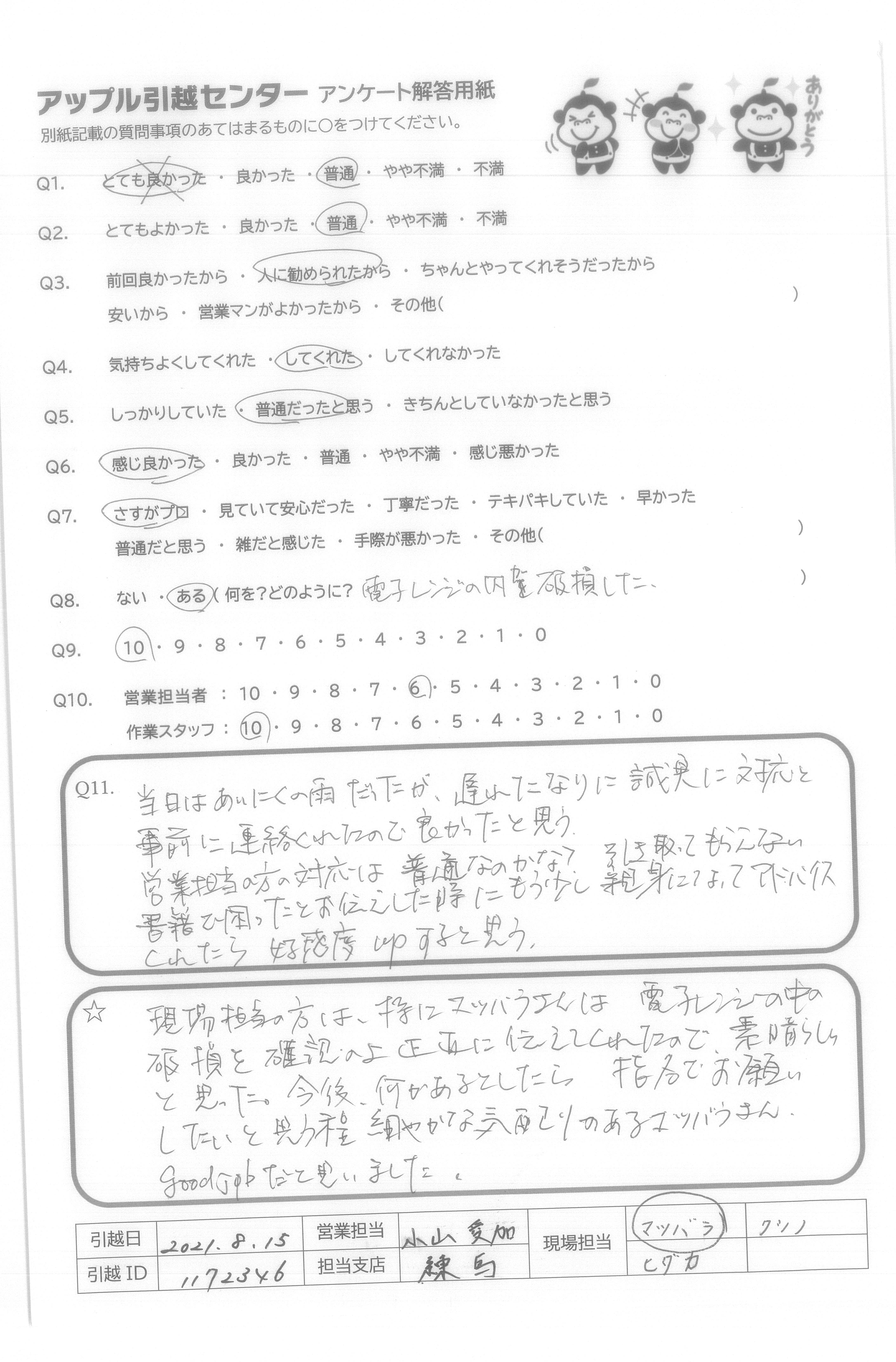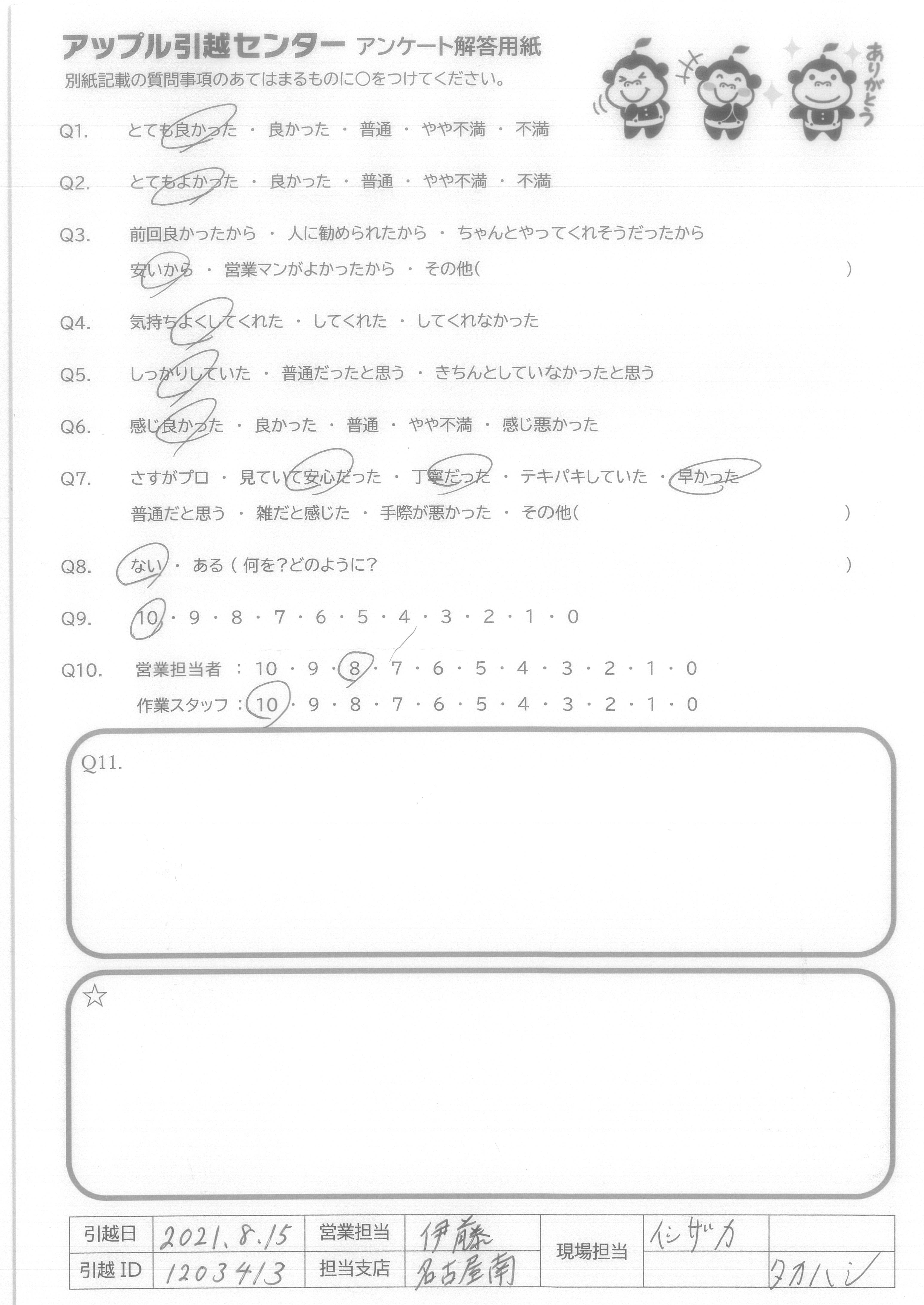 引越し日:2021年08月15日 エリア:愛知県名古屋市西区