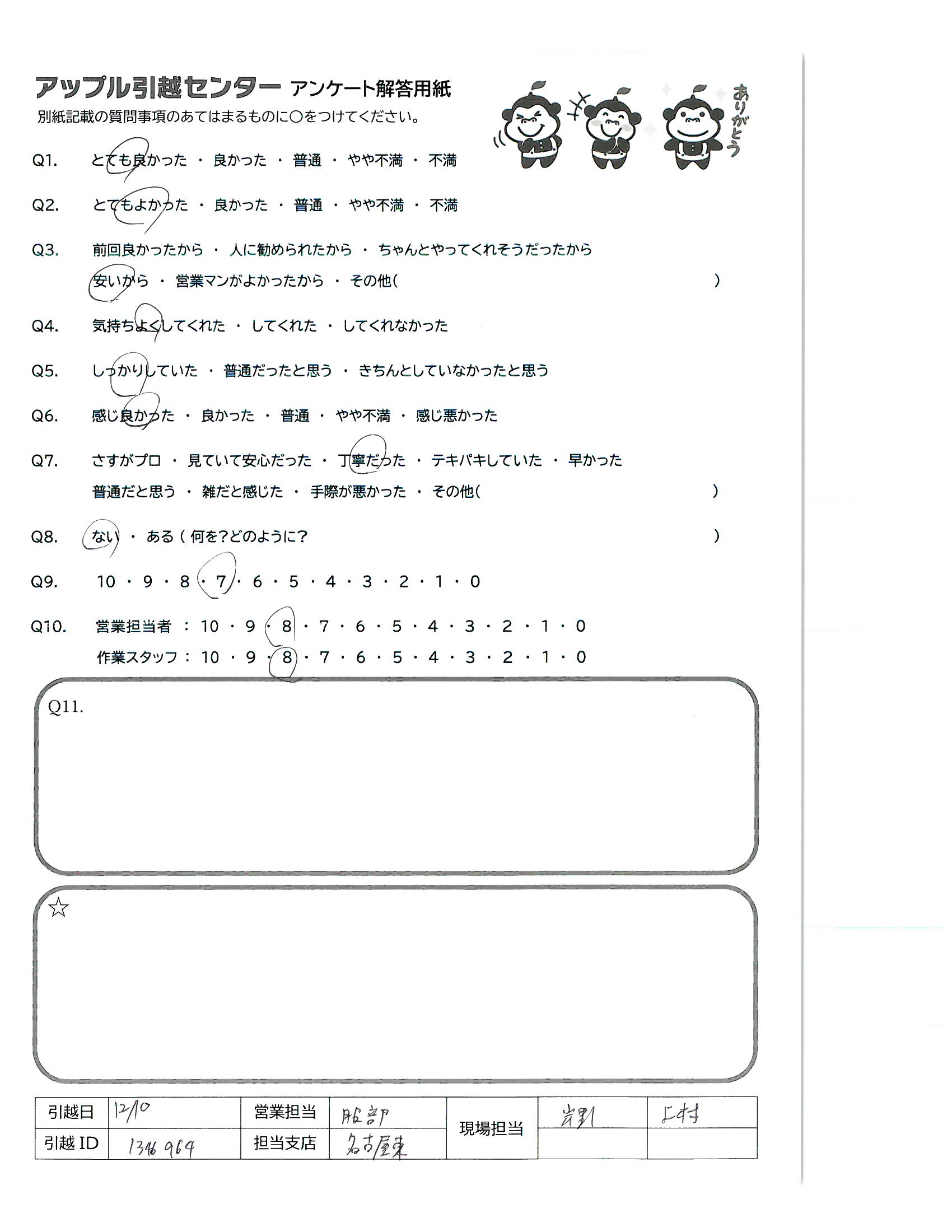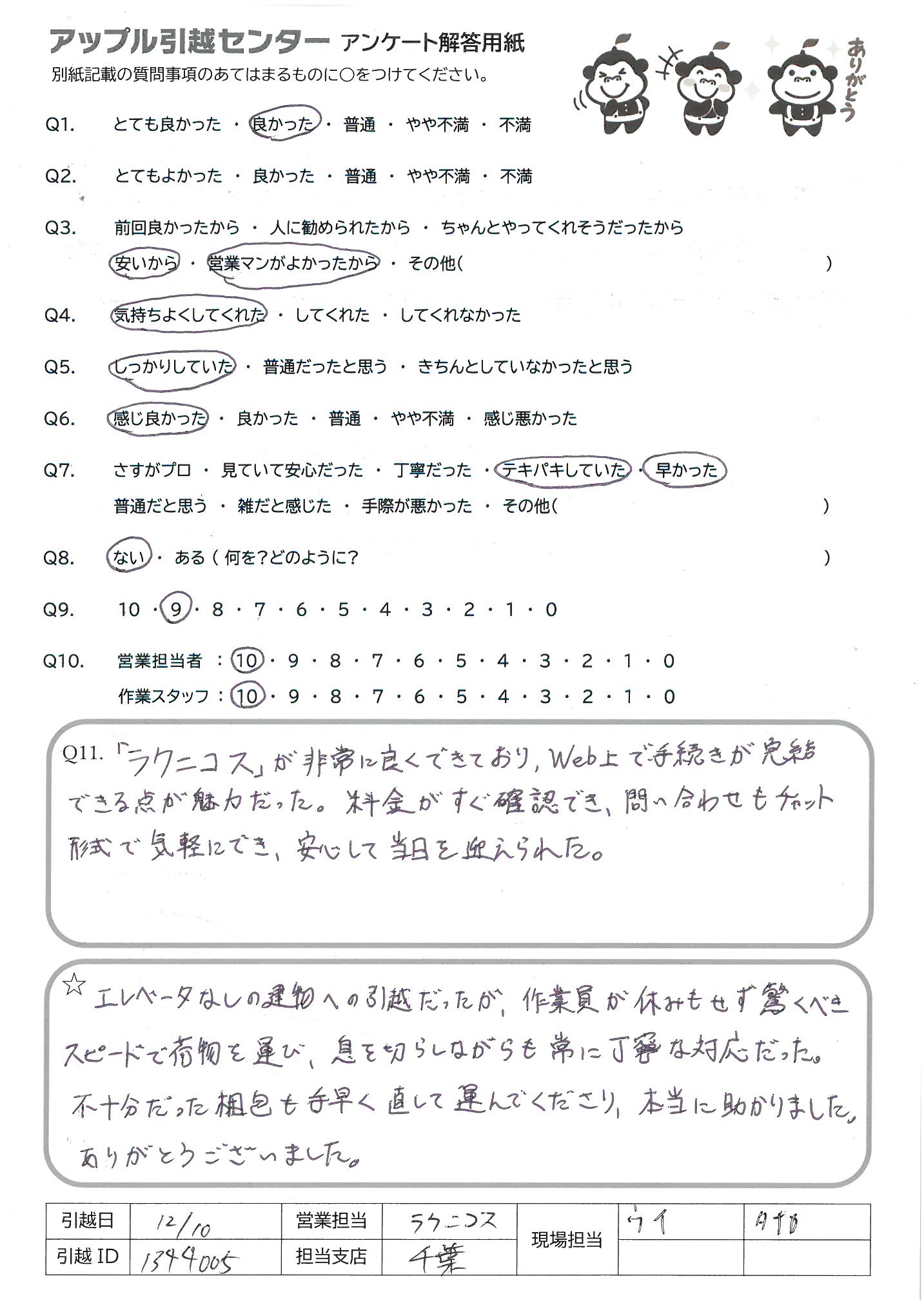 A.テキパキと運び出しをして下さったので助かりました。