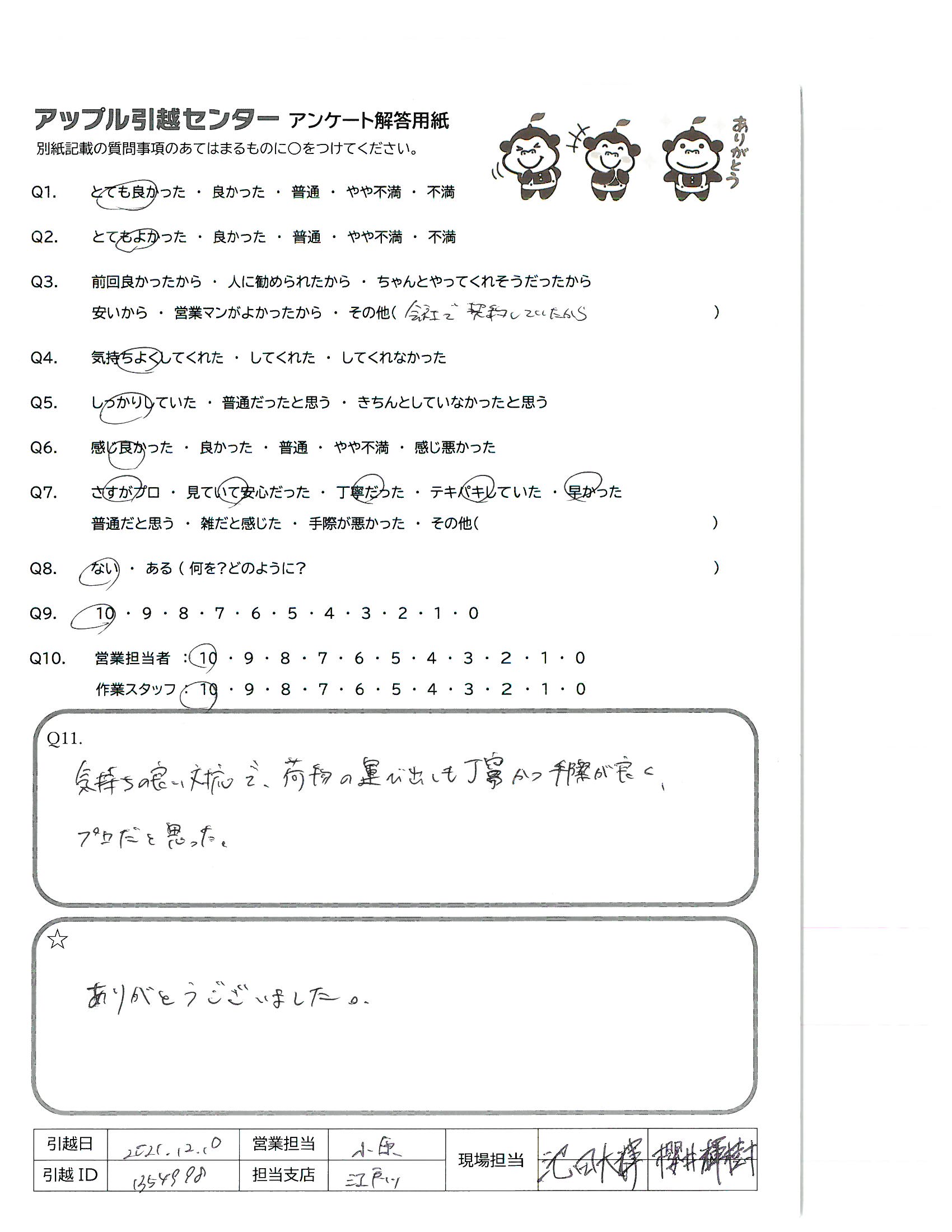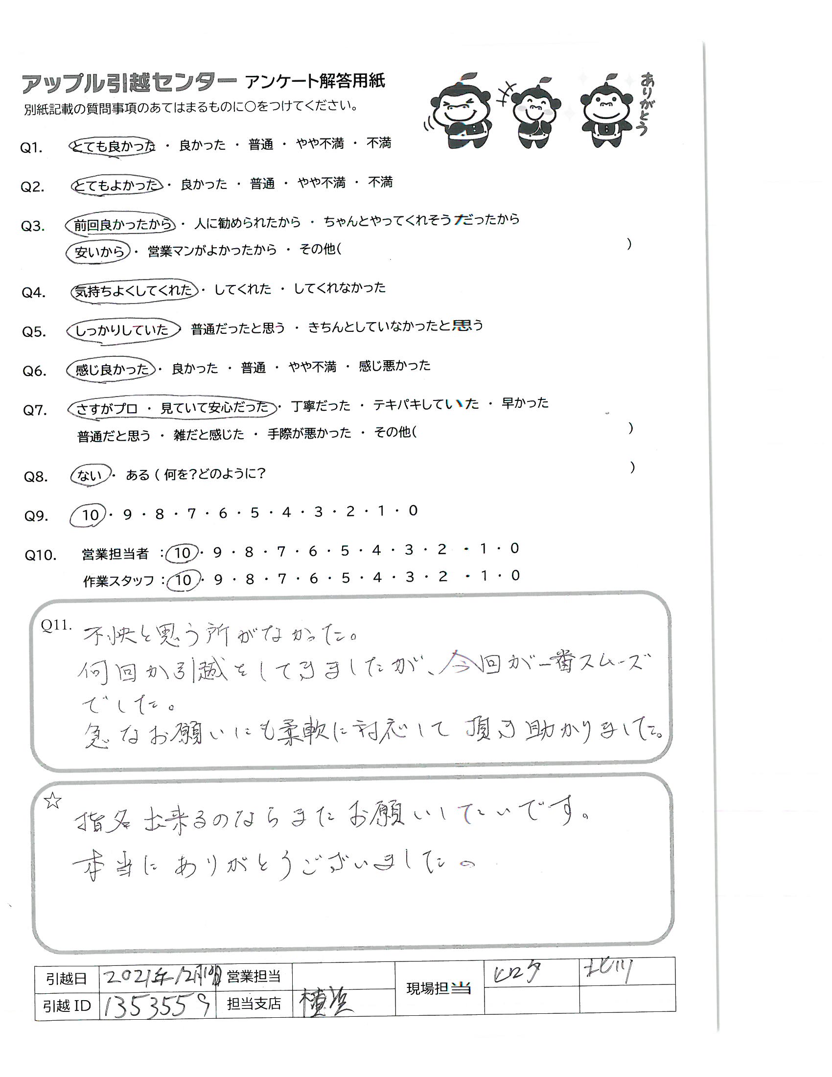 A.次のお引越しの際もまた、おねがい致します!!!