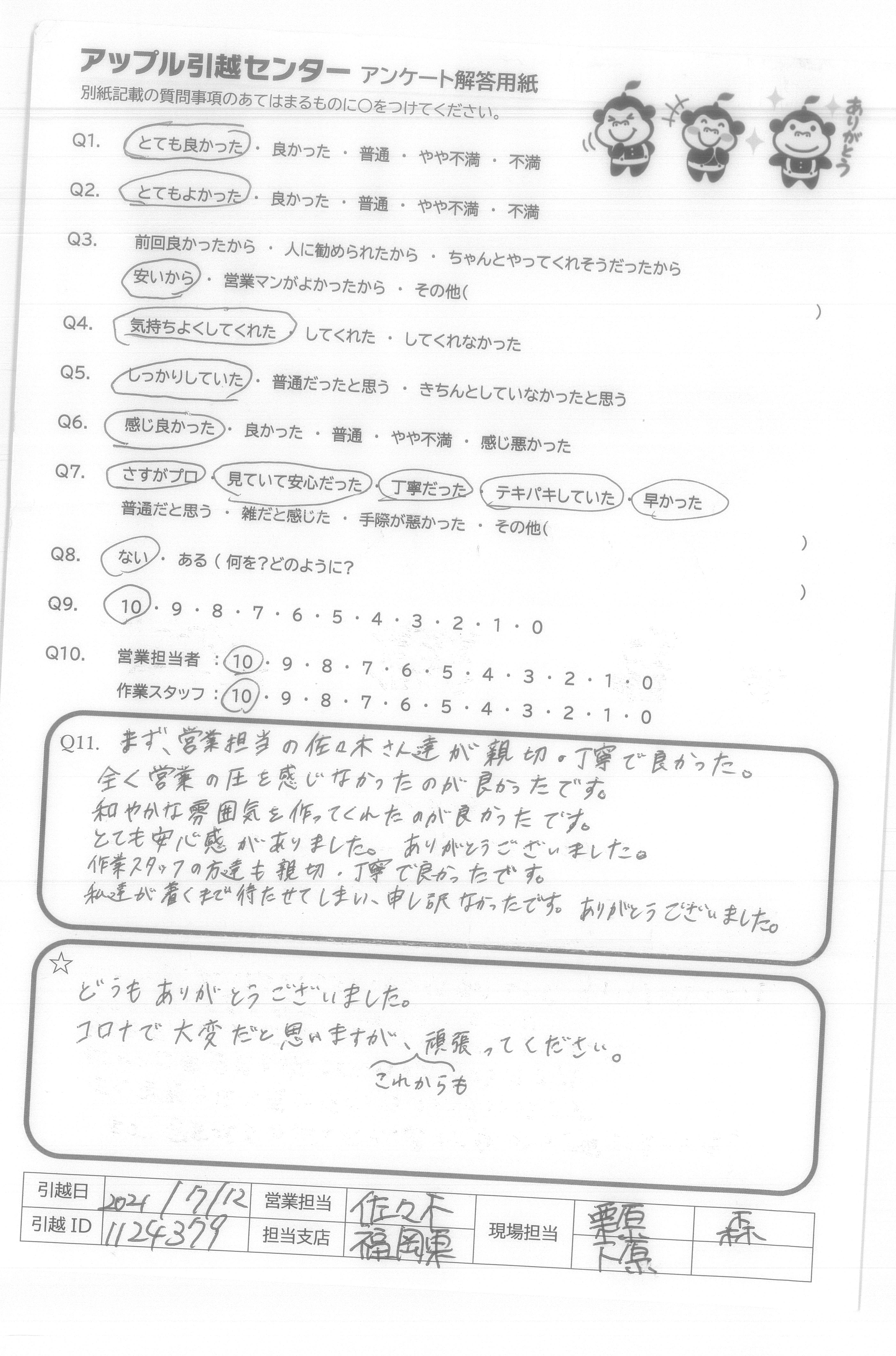 A.引っ越しに対する見方が変わるほど素晴らしいサービスでした。 本当にありがとうございました。