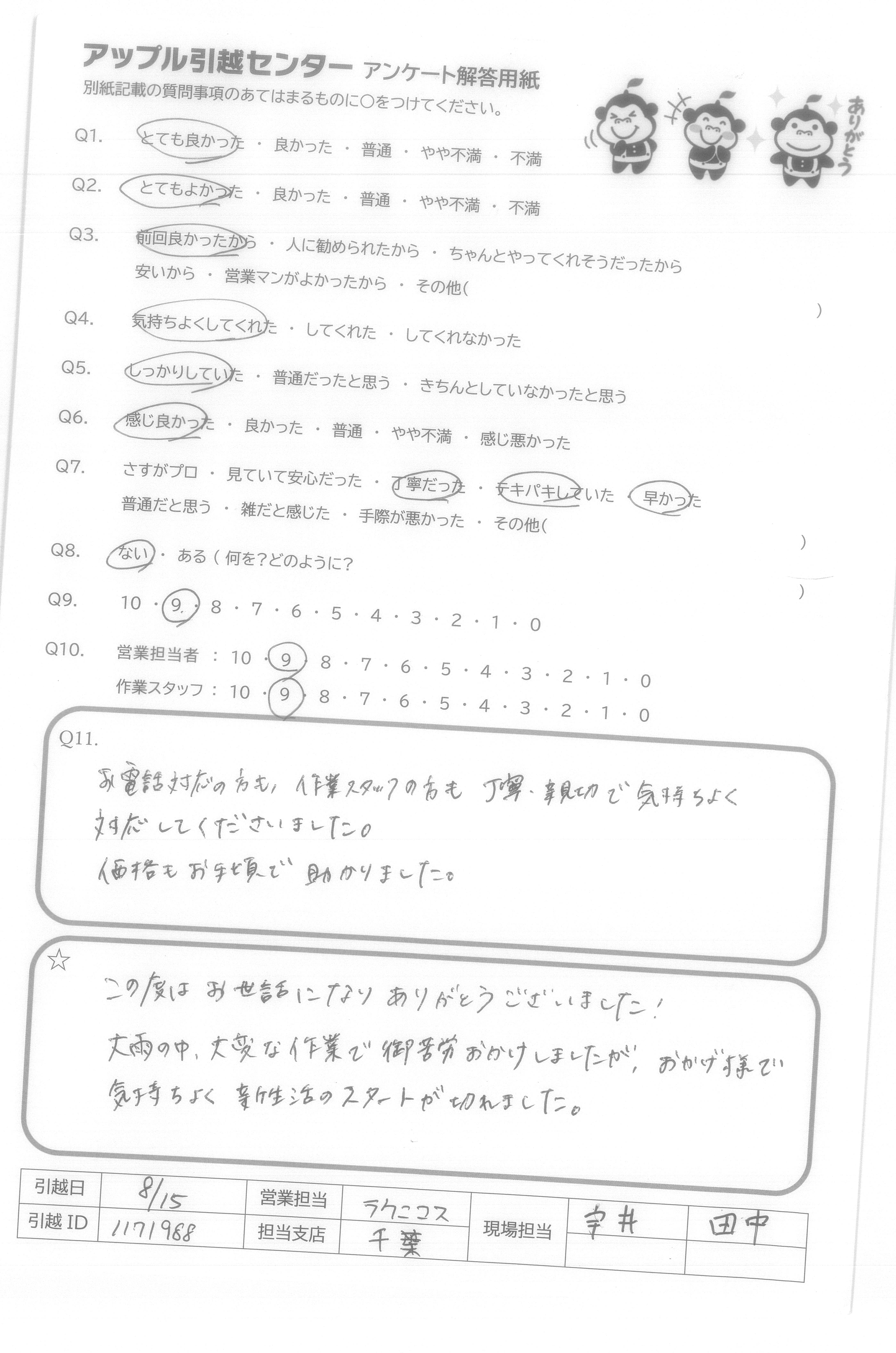 引越し日:2021年08月15日 エリア:千葉県習志野市