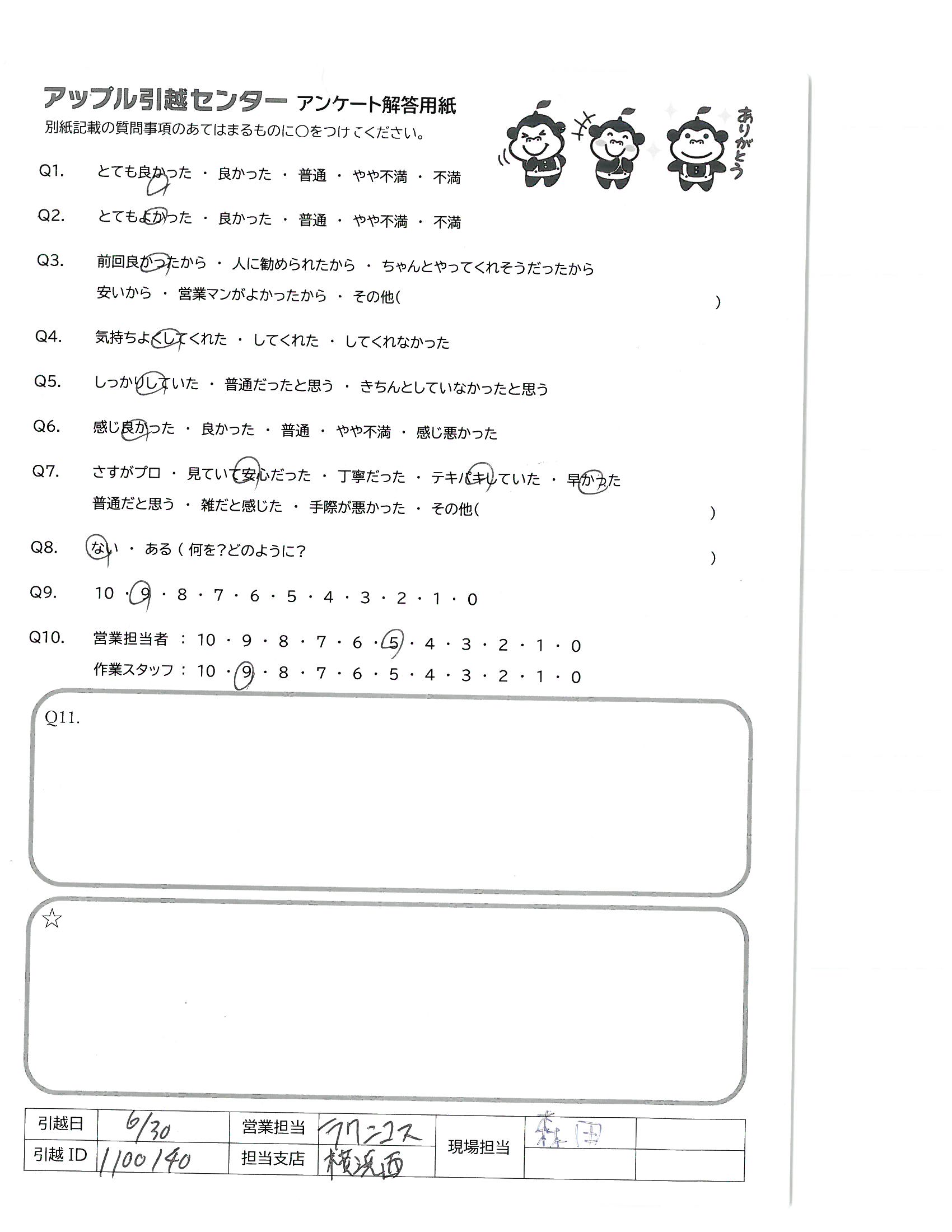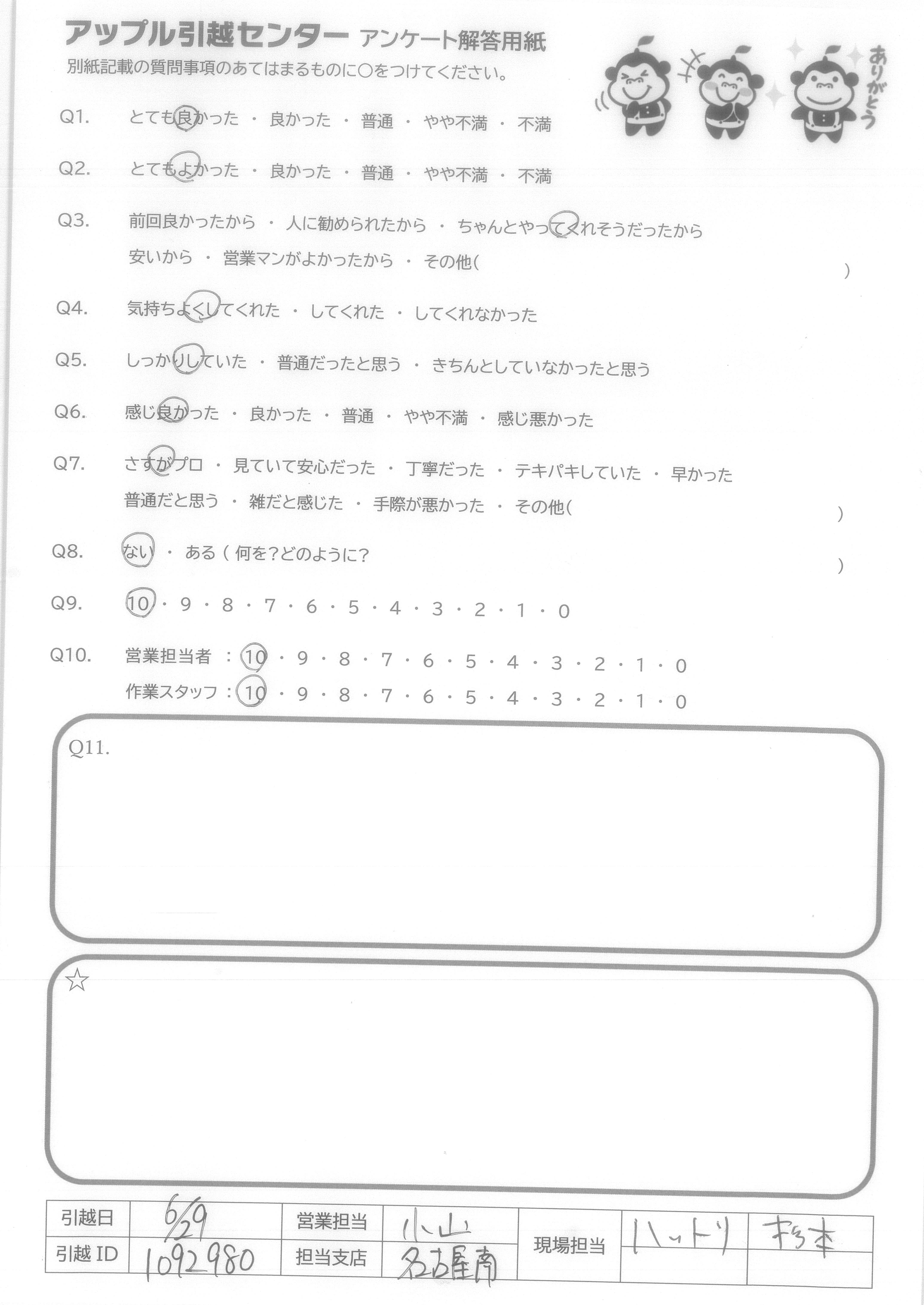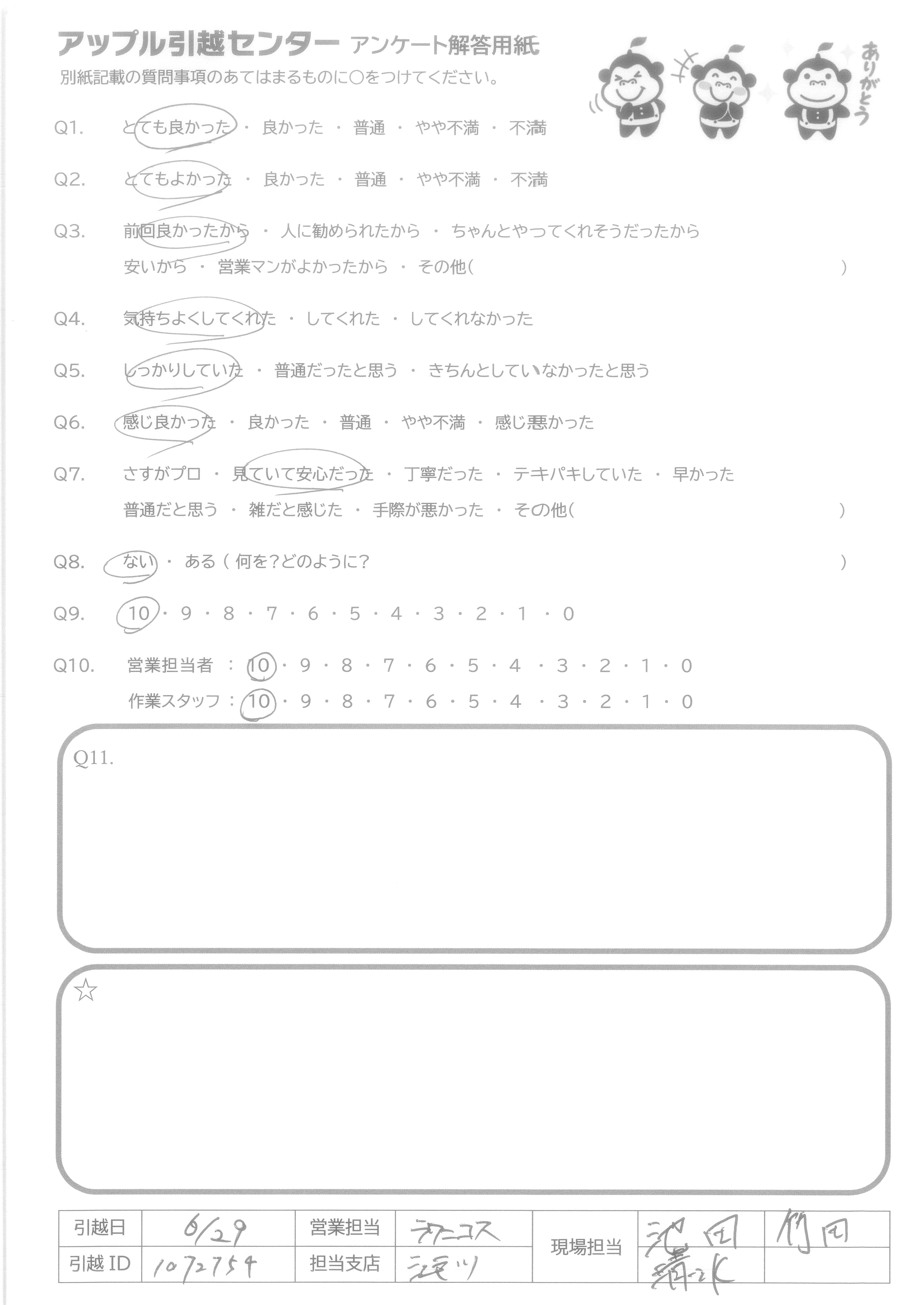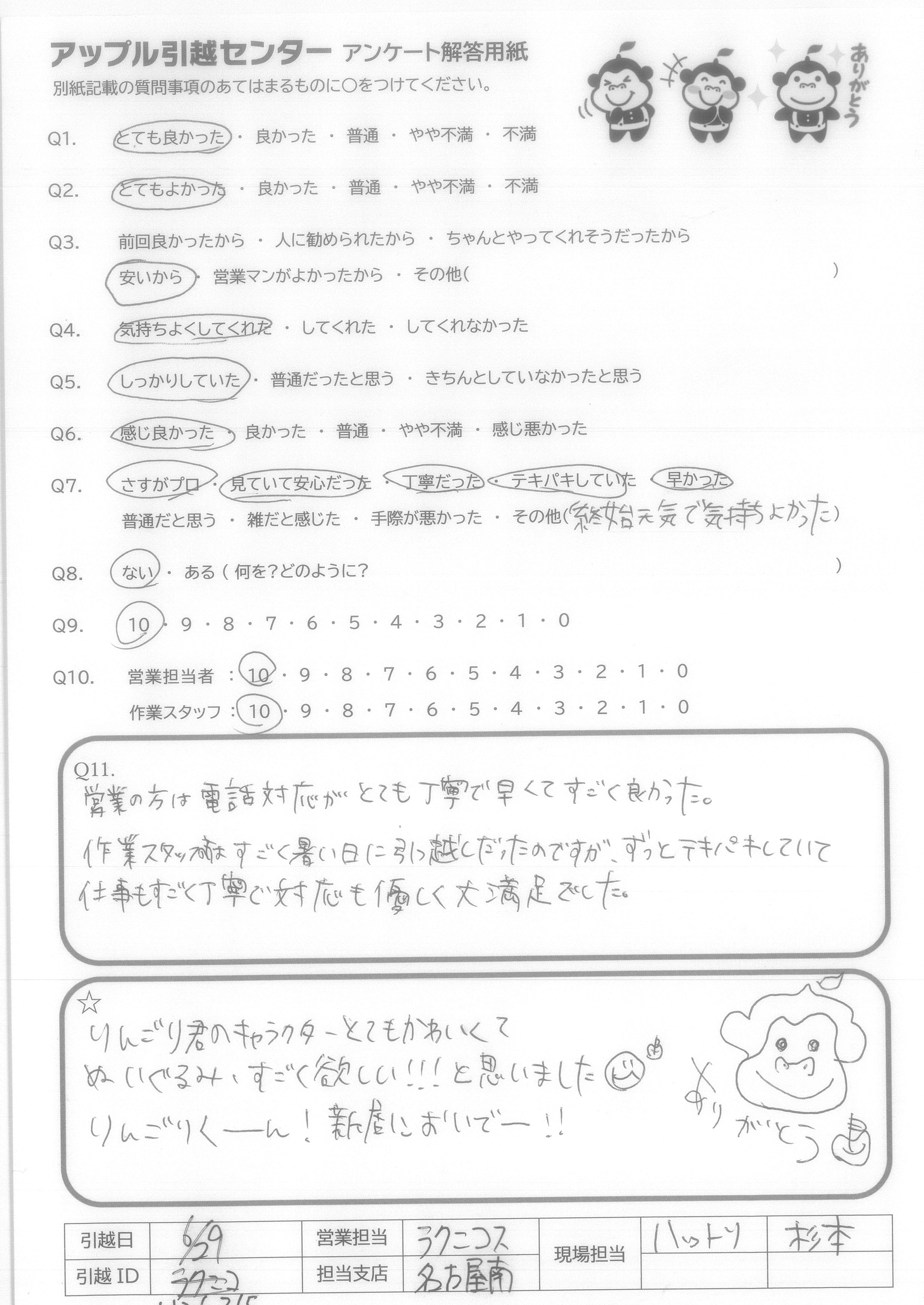 A.次いつ引越すかわからないが、次もアップルさんにお願いすると思います。 お忙しい中、ありがとうございました。