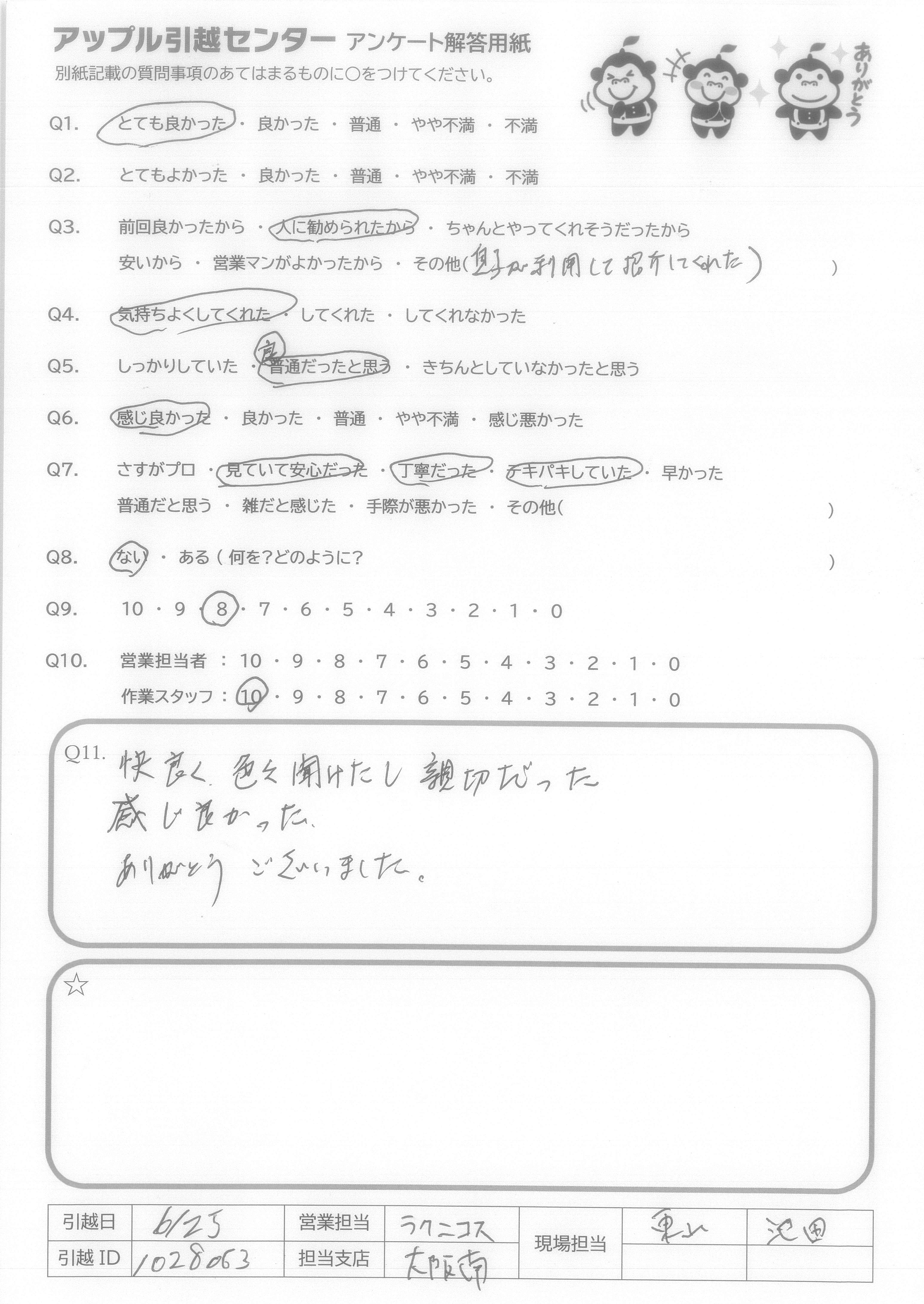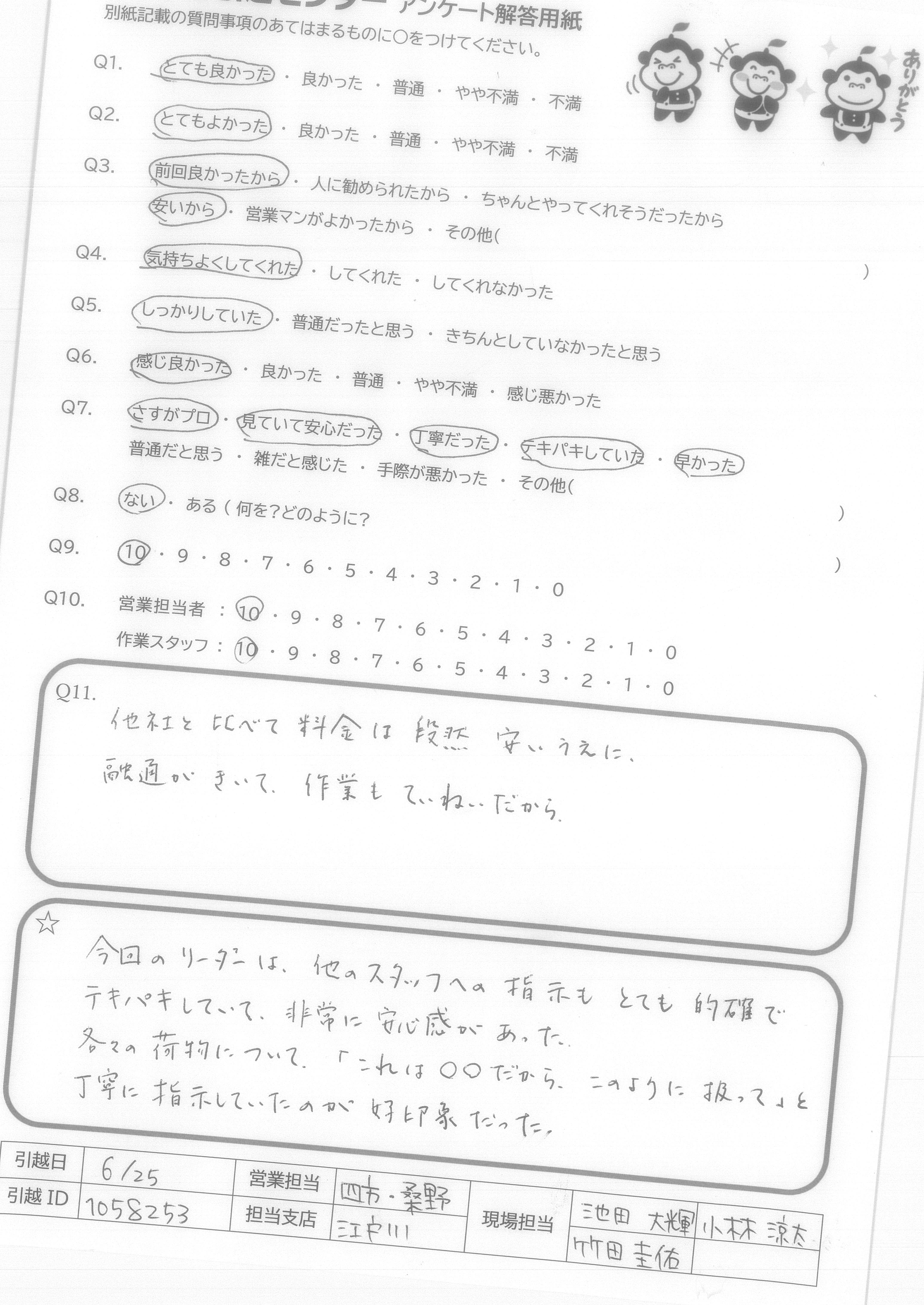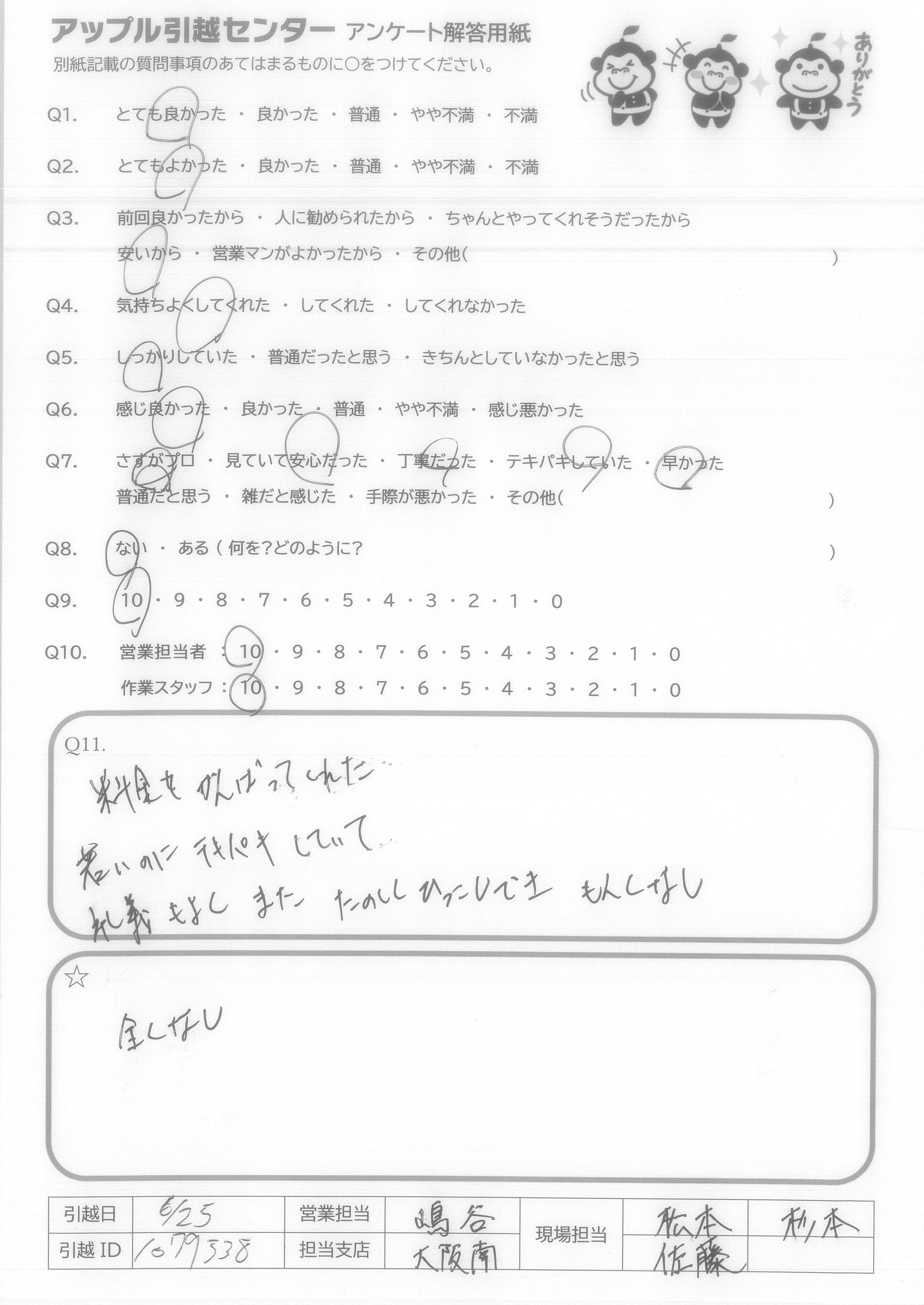 A.料金を頑張ってくれた 若いのにテキパキしていて 礼義もよくまたたのしくひっこしできもんくなし