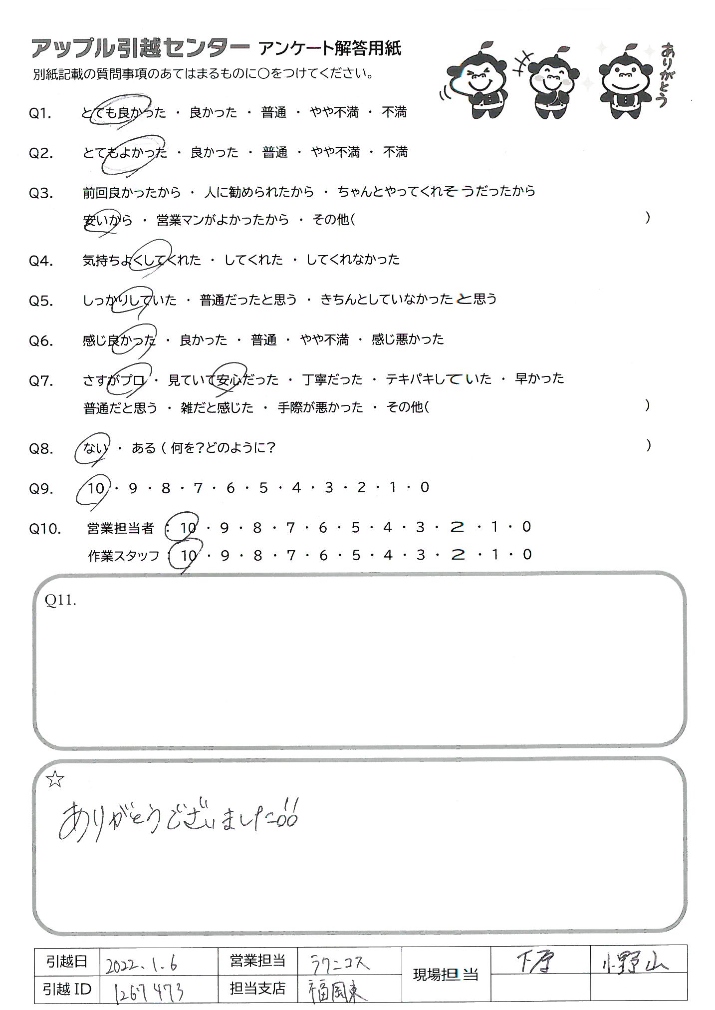 引越し日:2022年01月07日 エリア:福岡県福岡市中央区