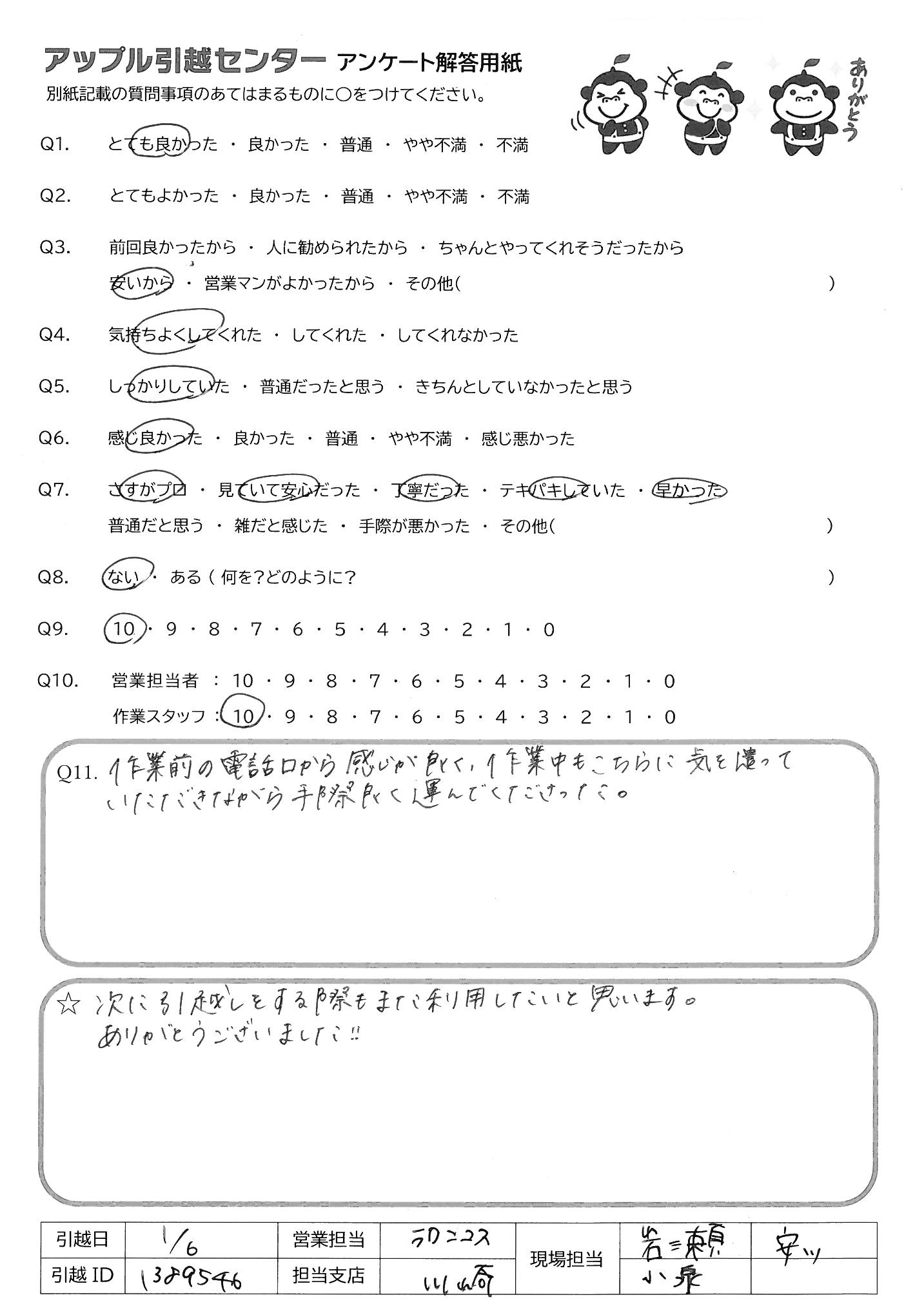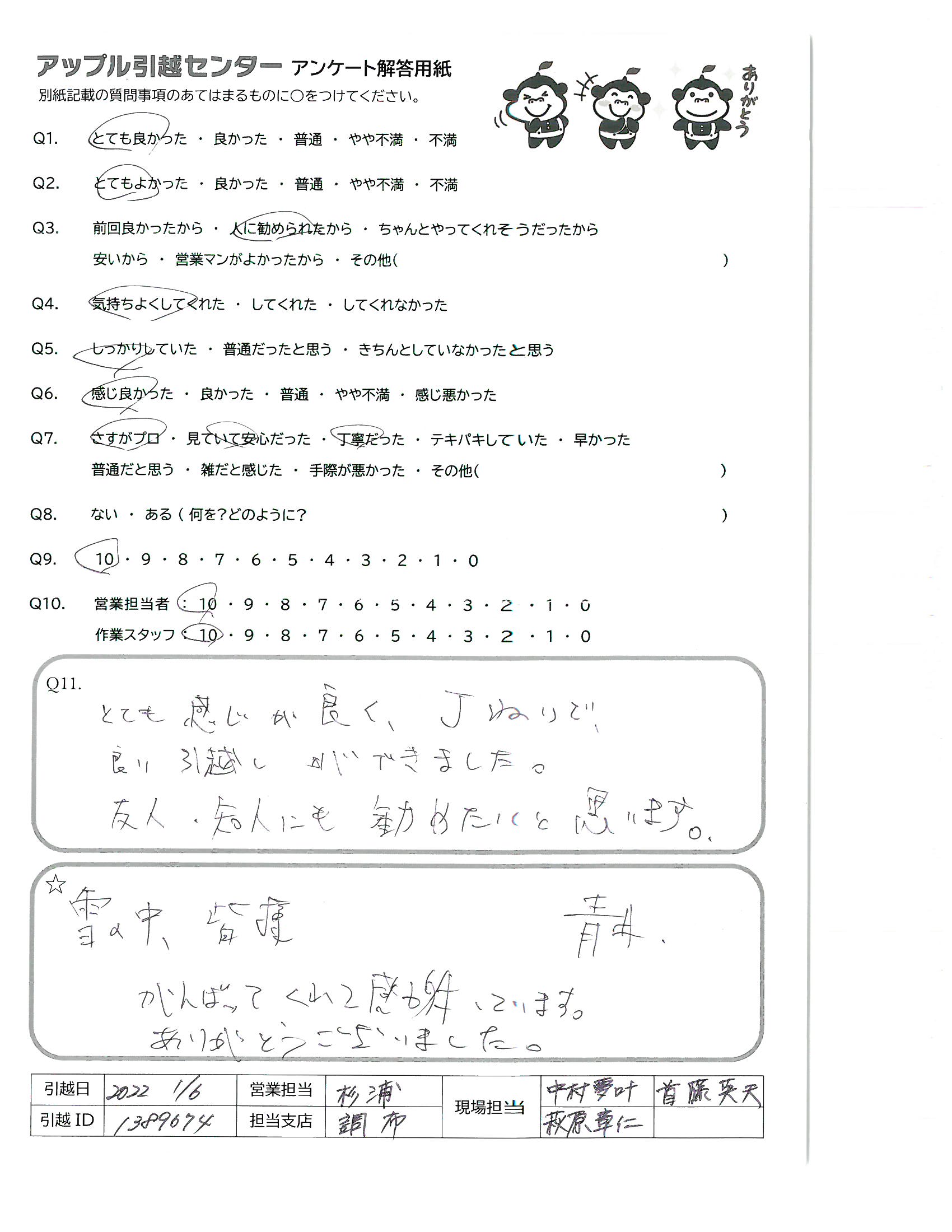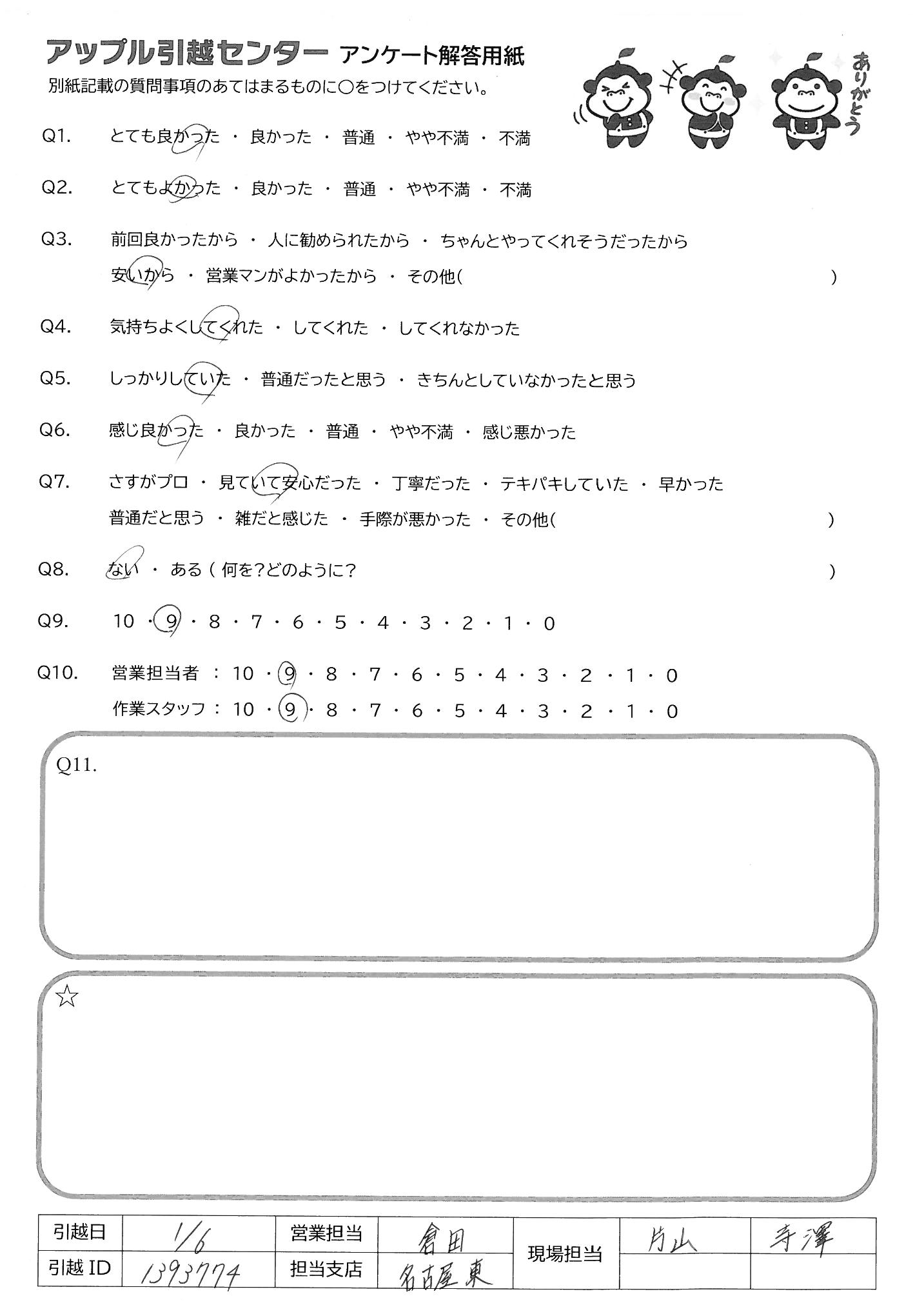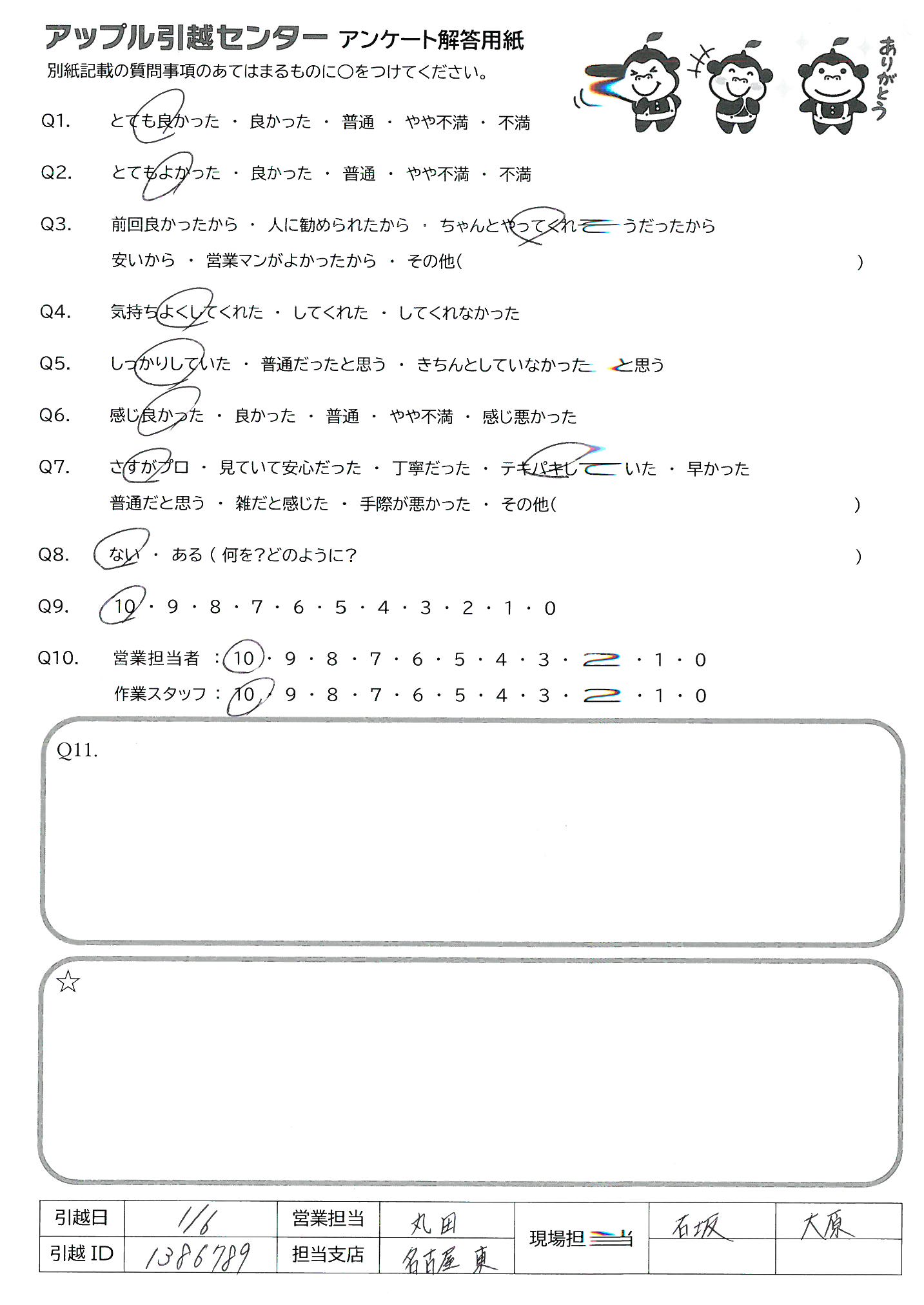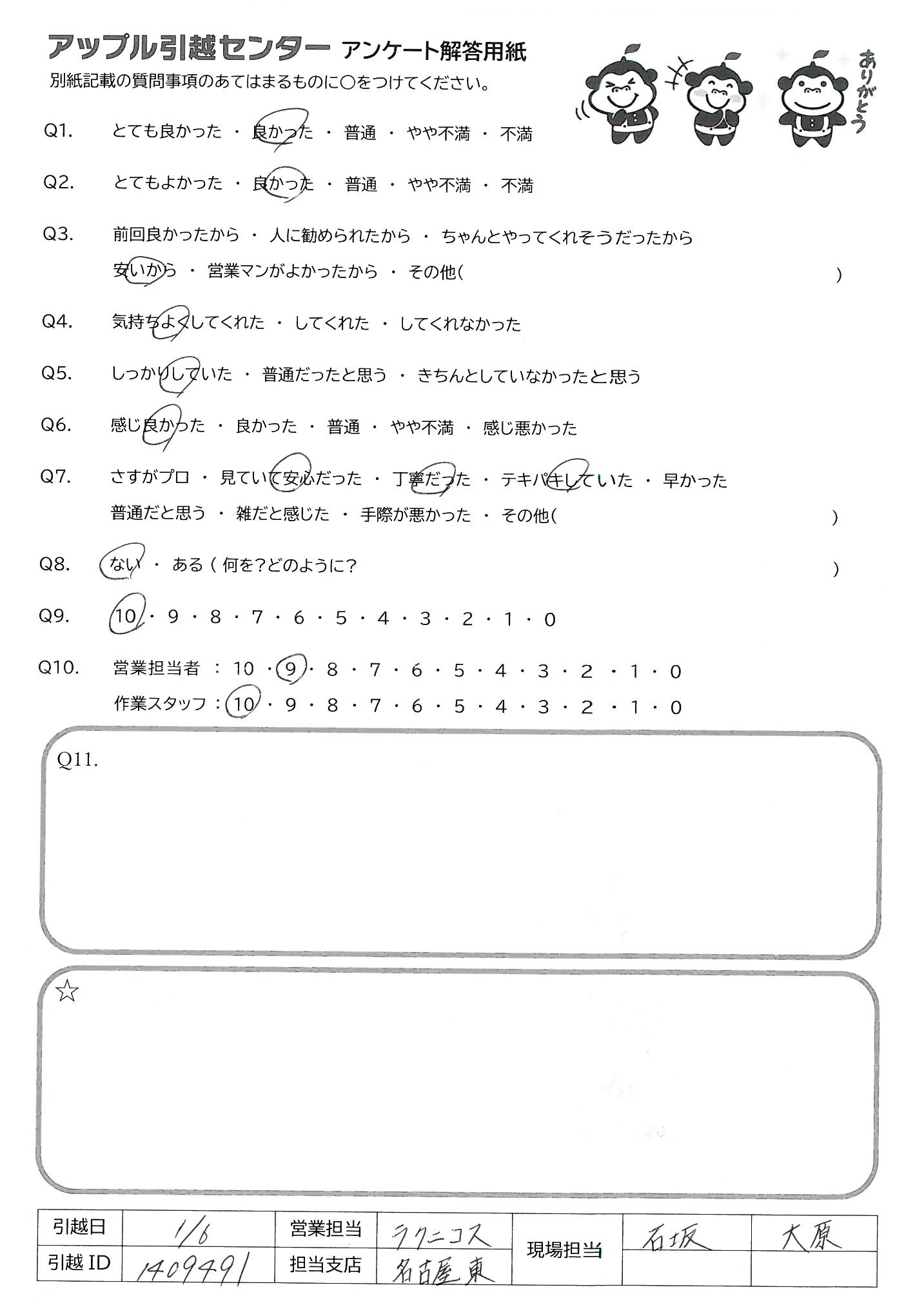 A.おかげさまでスムーズに移れることができました。本当にありがとうございます 次の転居も迷わずお願いします!
