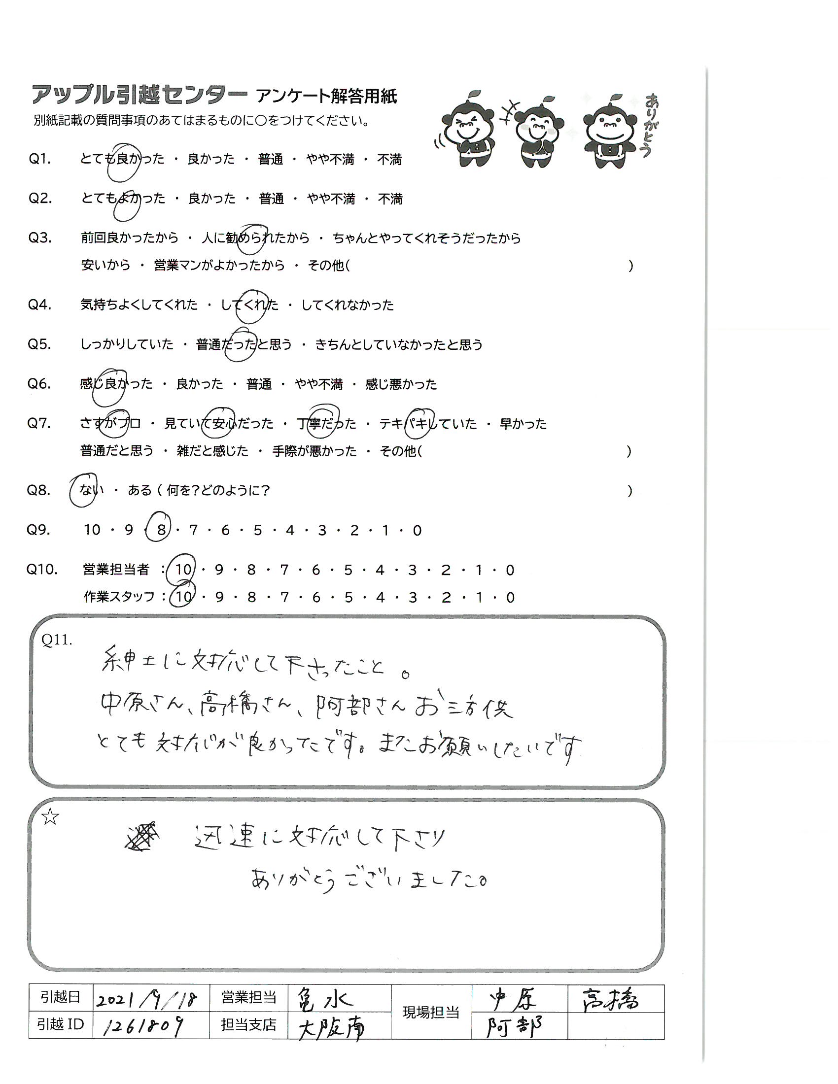 引越し日:2021年09月18日 エリア:大阪府茨木市